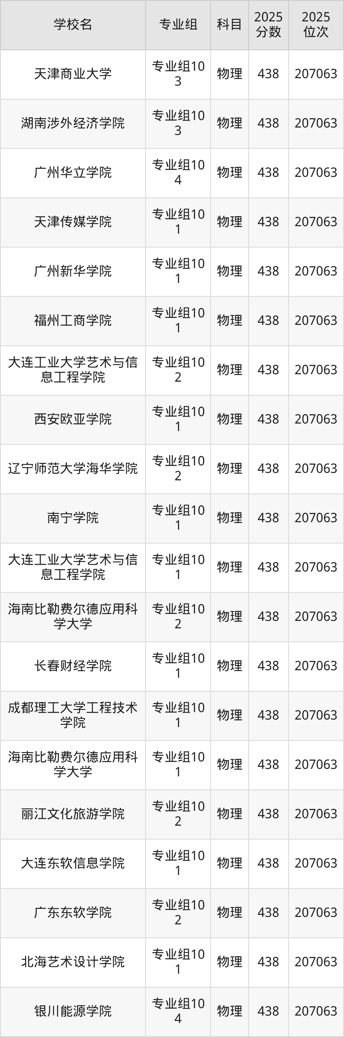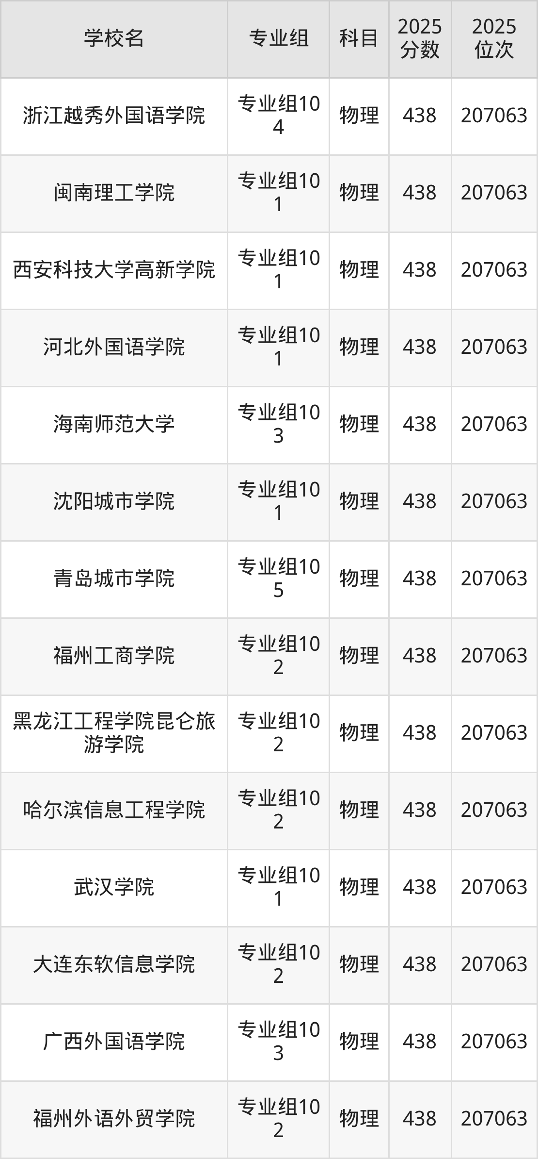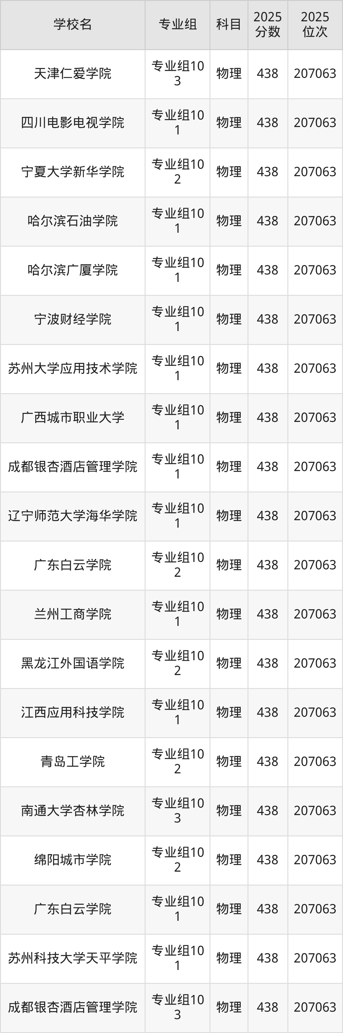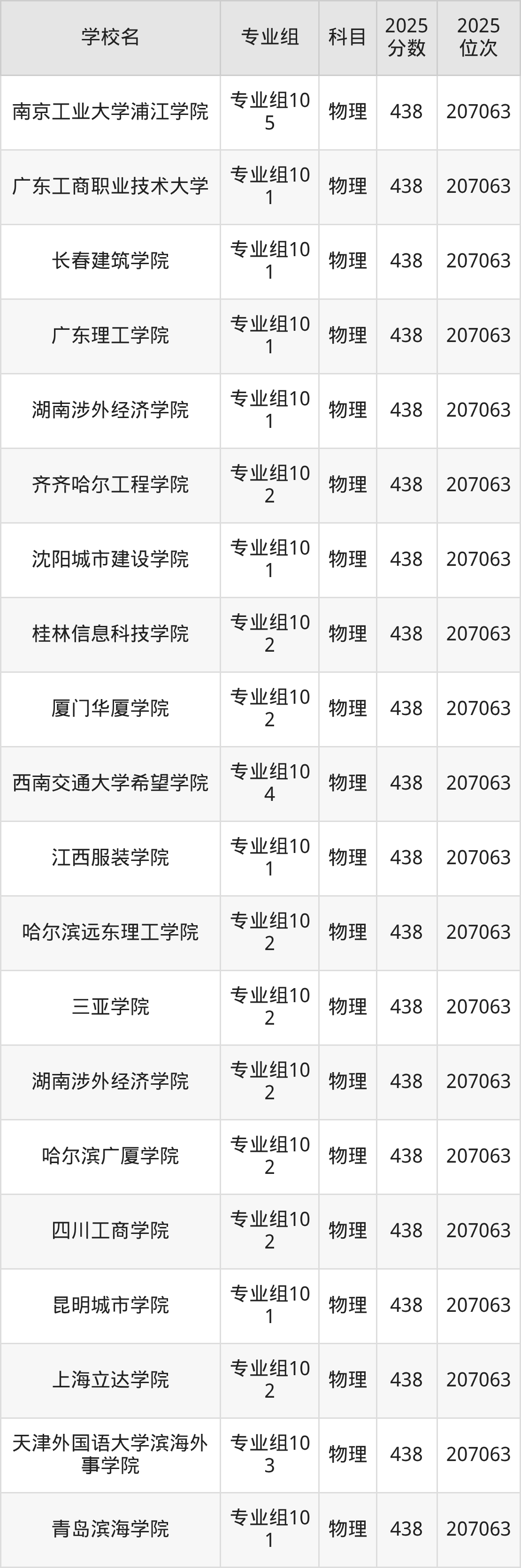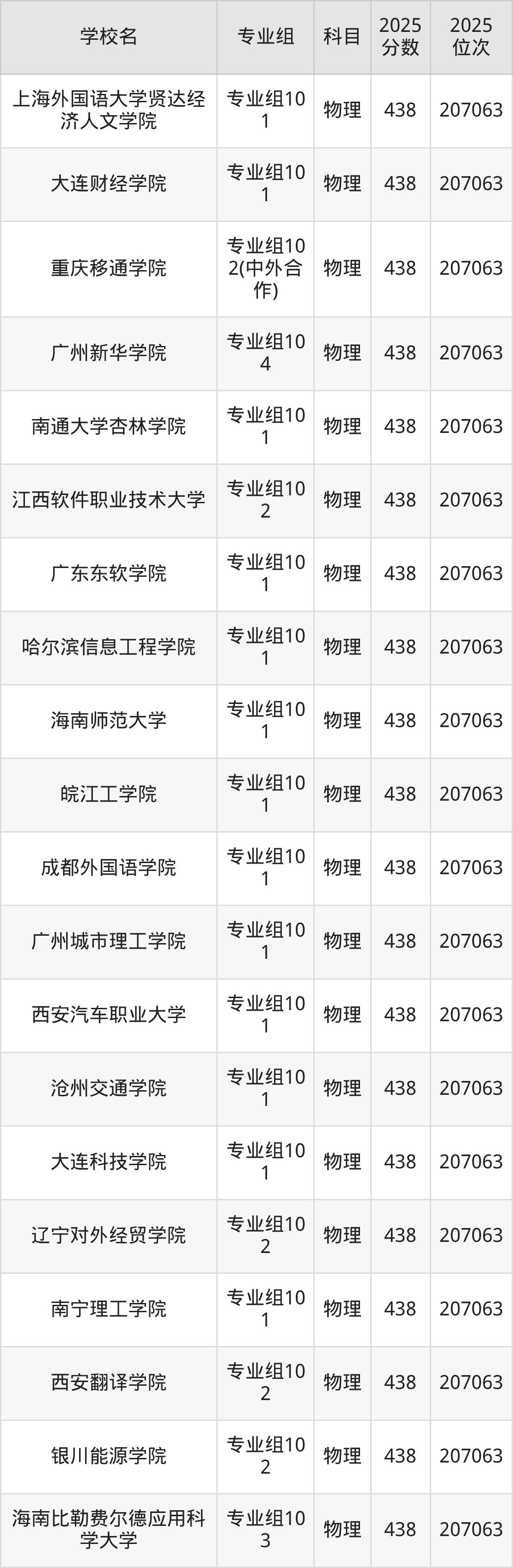 四川物理类439分对应的位次排名是206006名,因此建议2026年位次排在这附近的考生考虑这些大学。