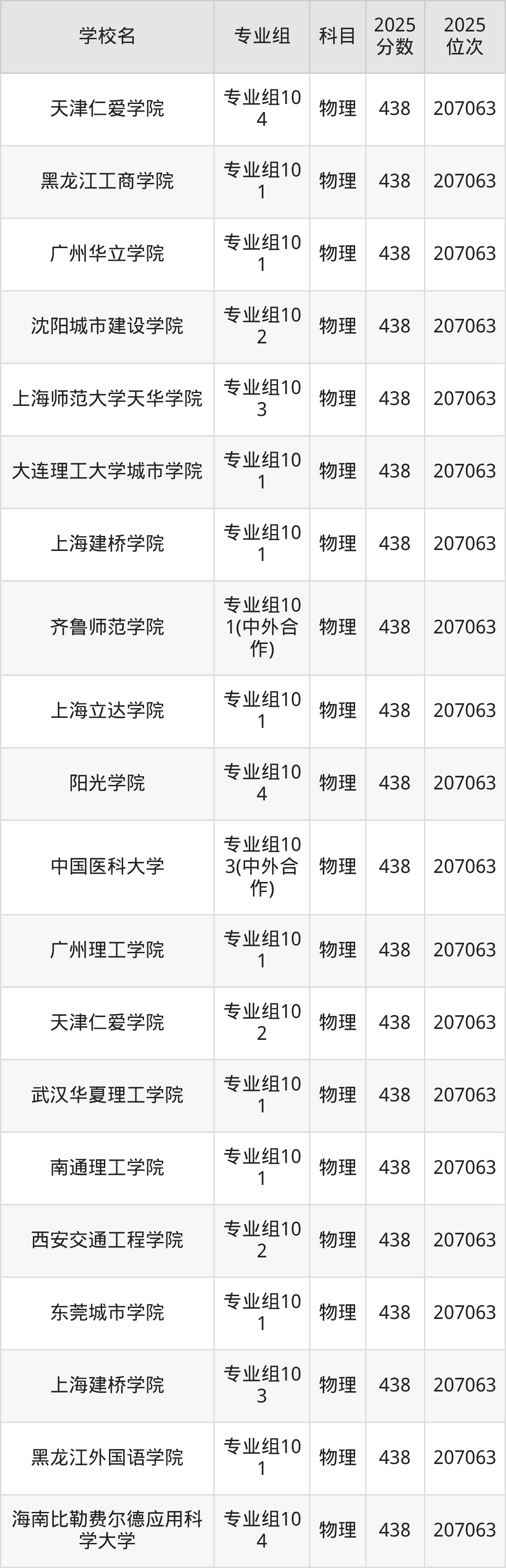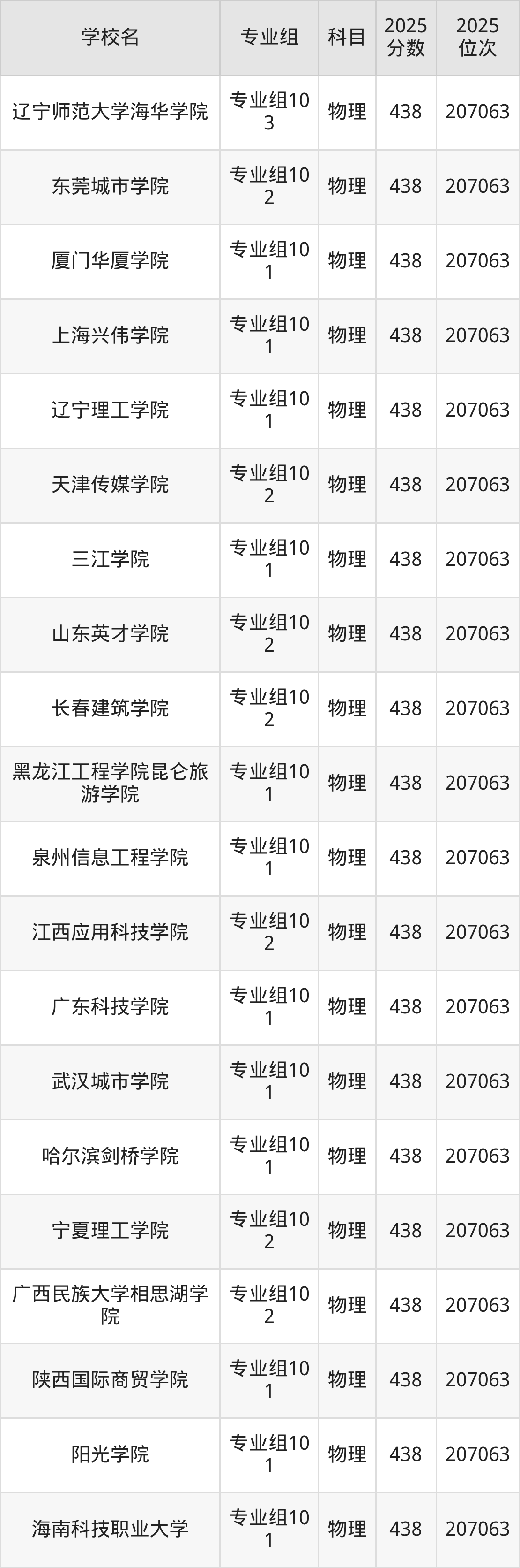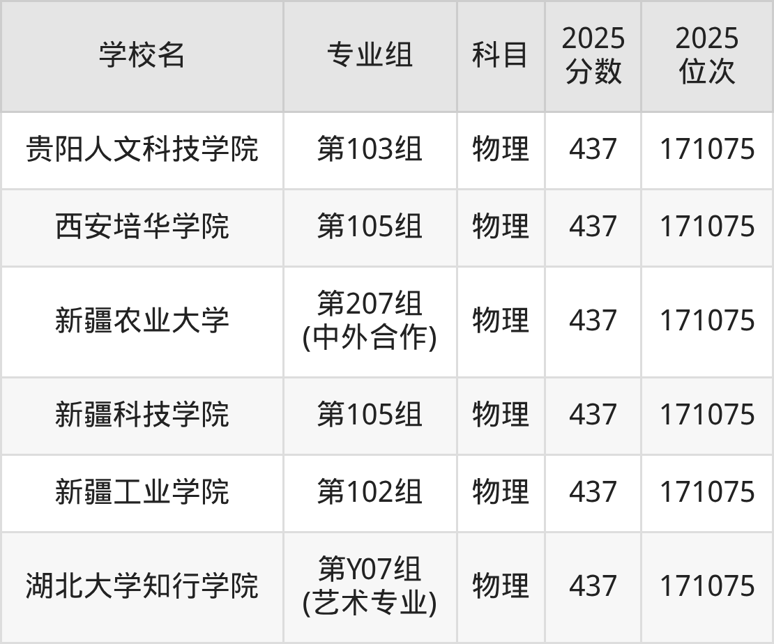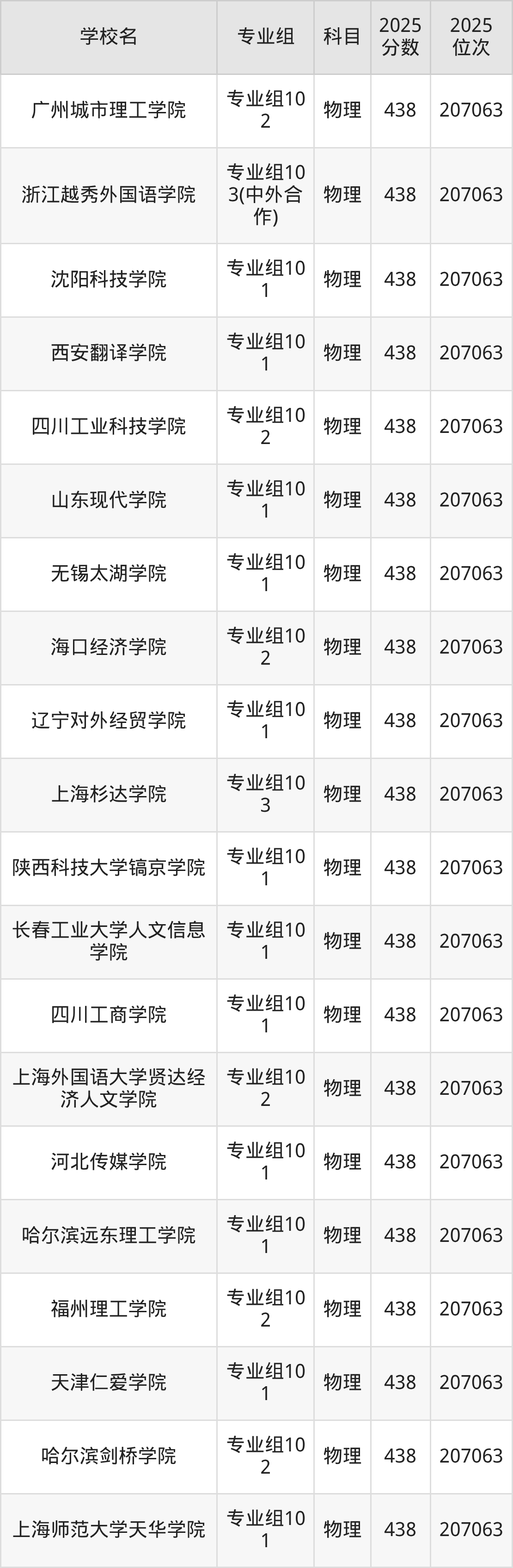 四川物理类439分对应的位次排名是206006名,因此建议2026年位次排在这附近的考生考虑这些大学。