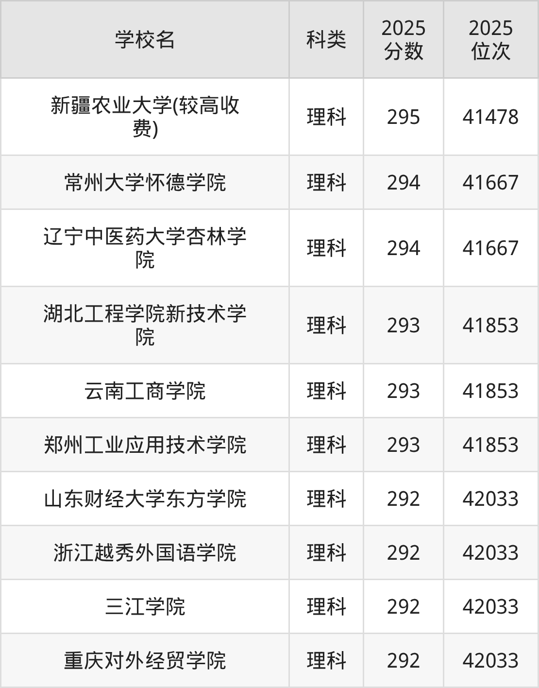 2025年在新疆高考录取分数线是294分的大学一共有2所,分别是常州大学怀德学院、辽宁中医药大学杏林学院。