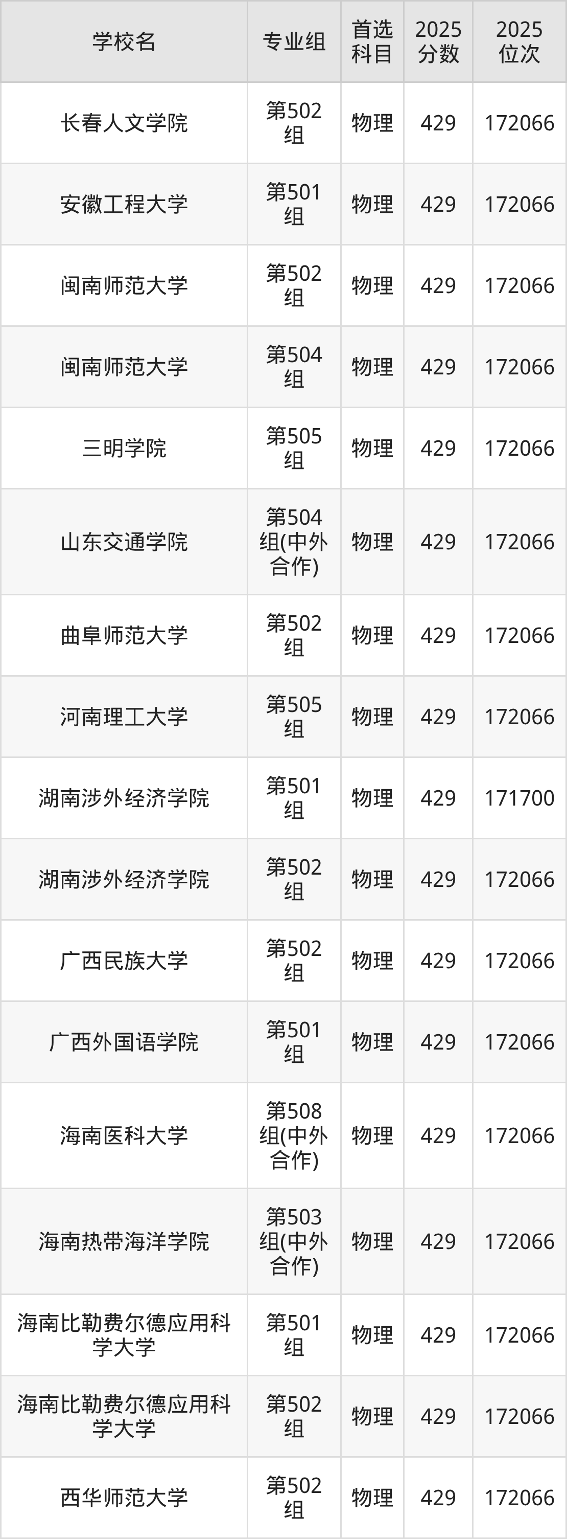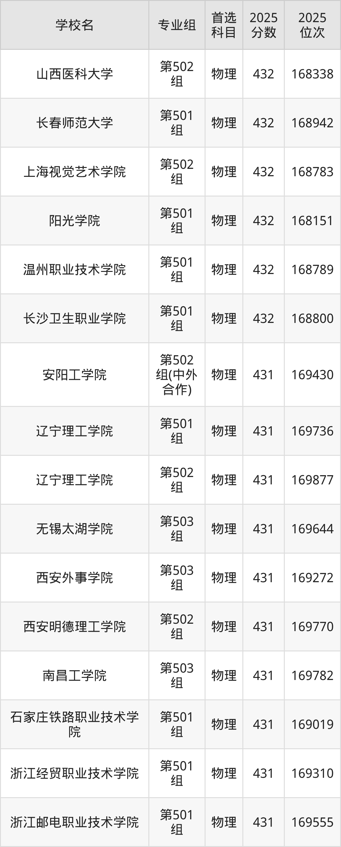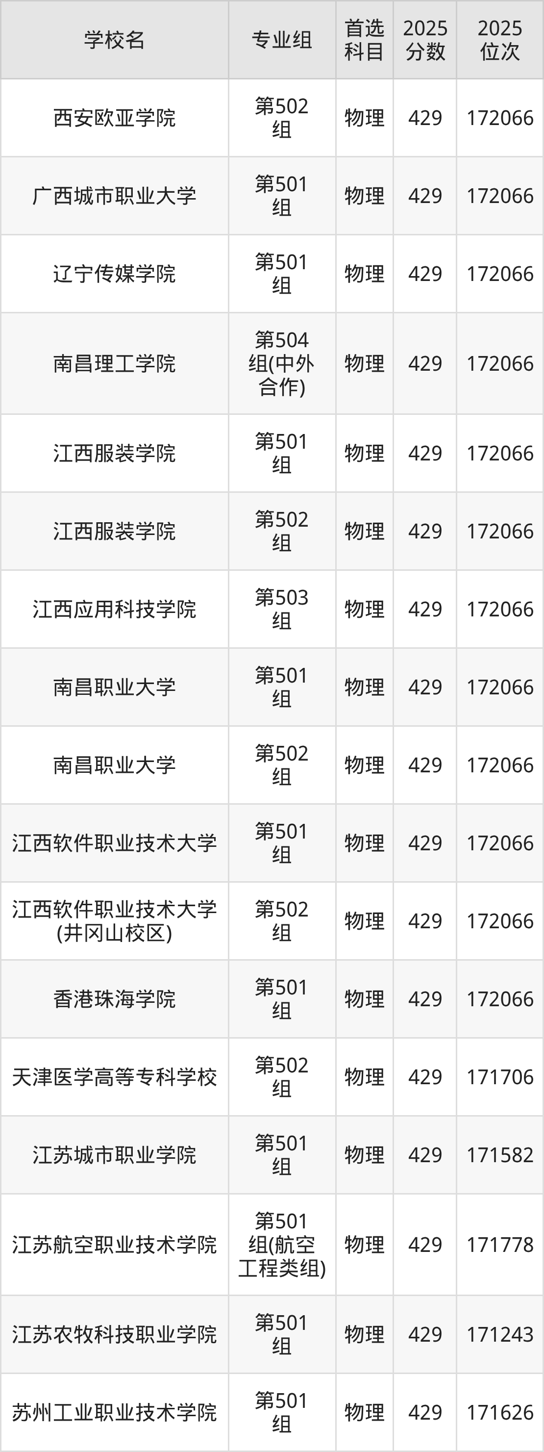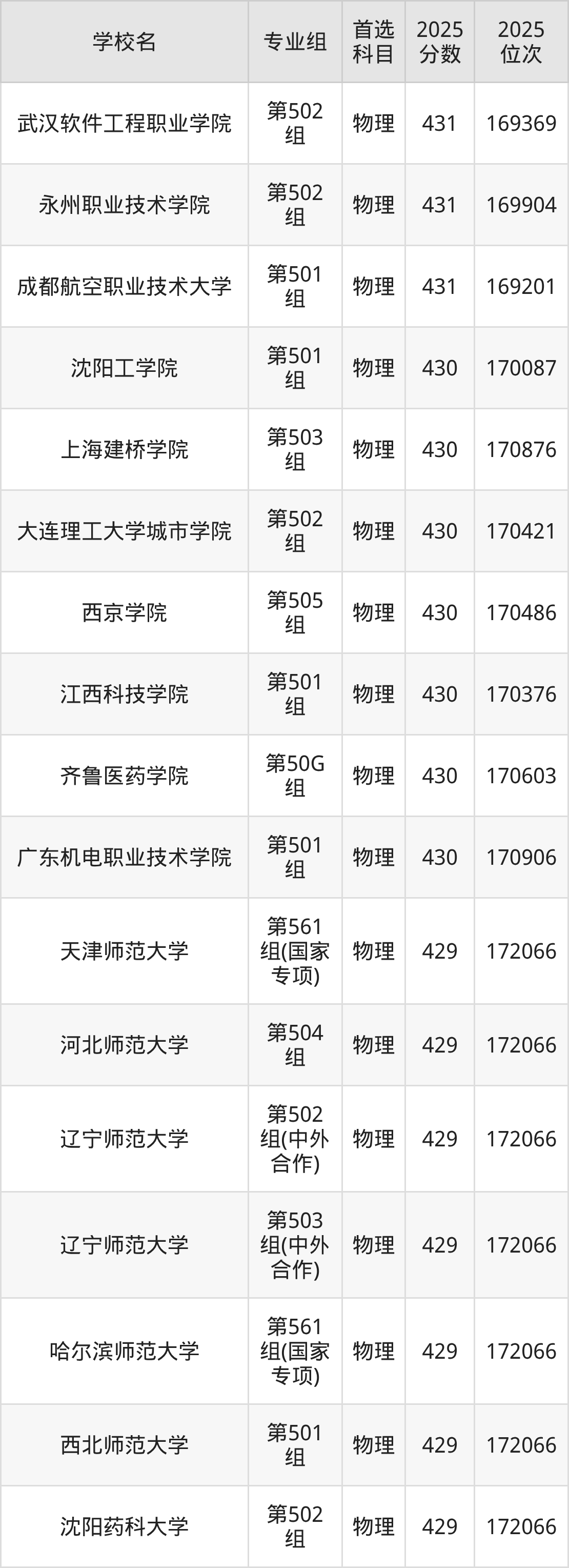 江西物理类430分对应的位次排名是170087名-170906名,因此建议2026年位次排在这附近的考生考虑这些大学。