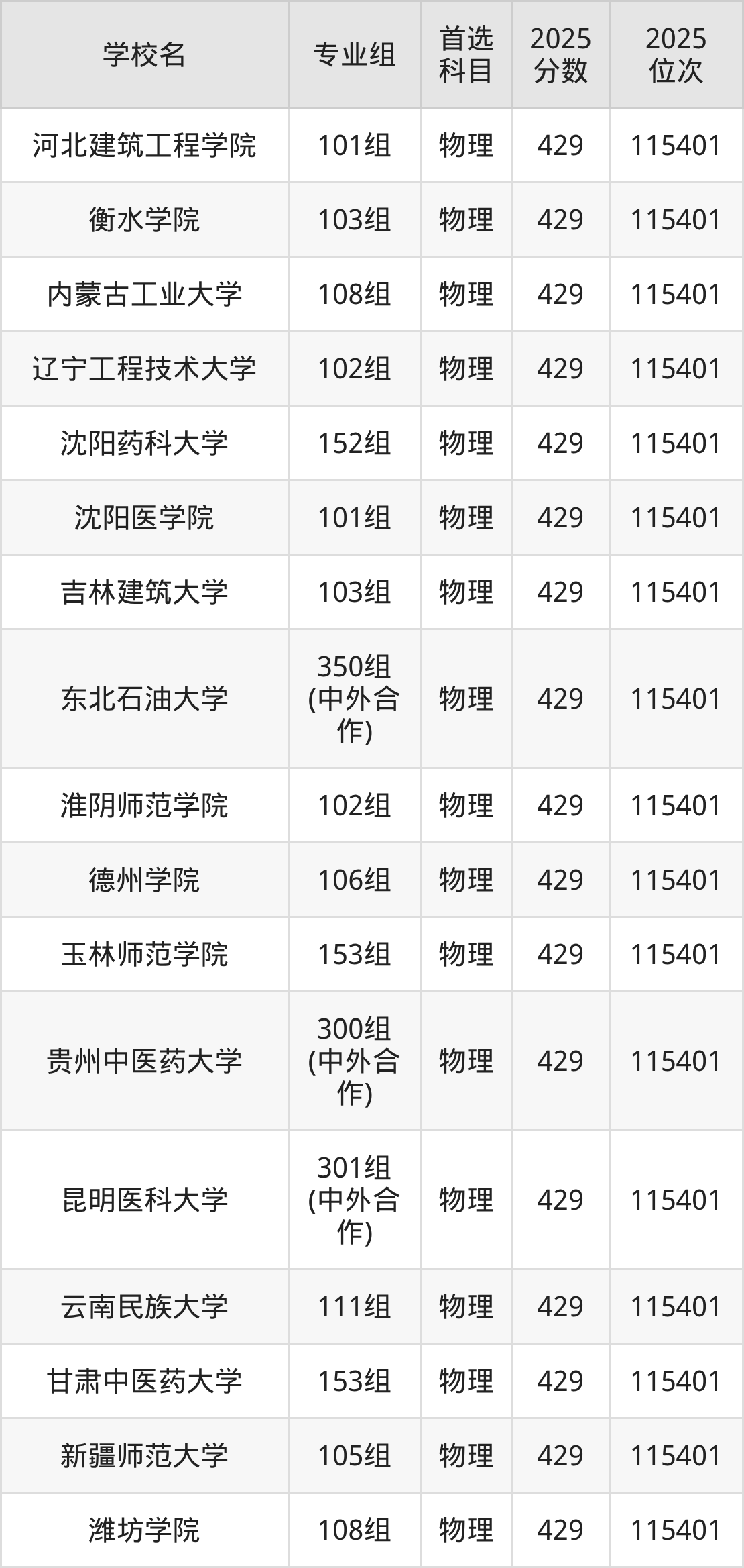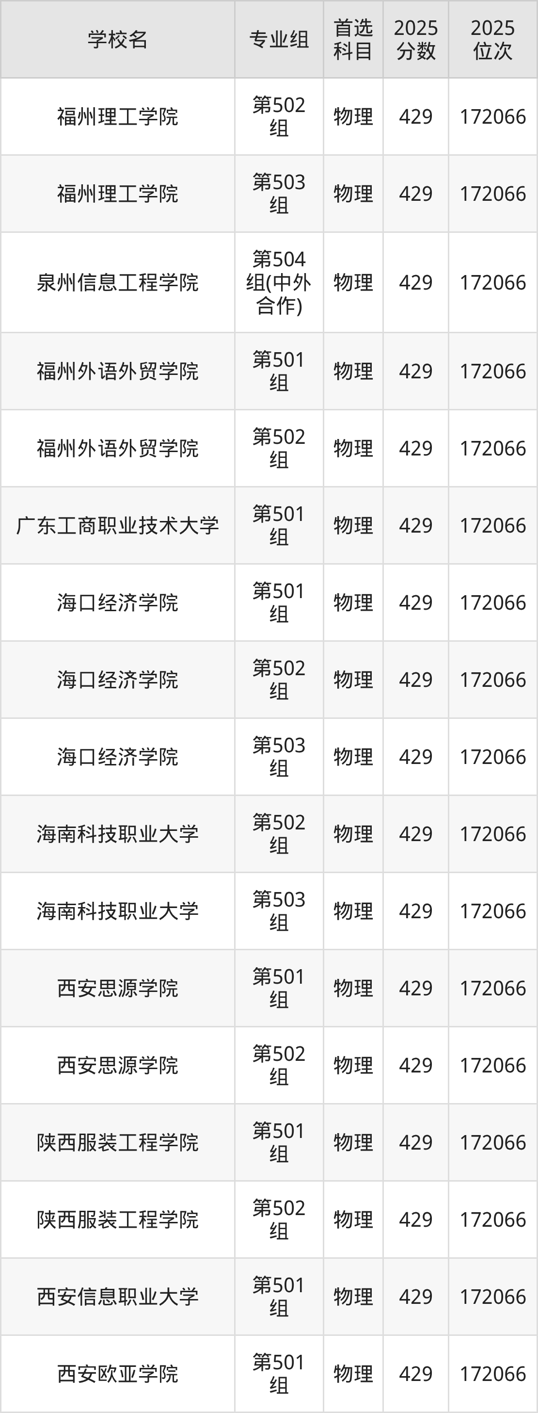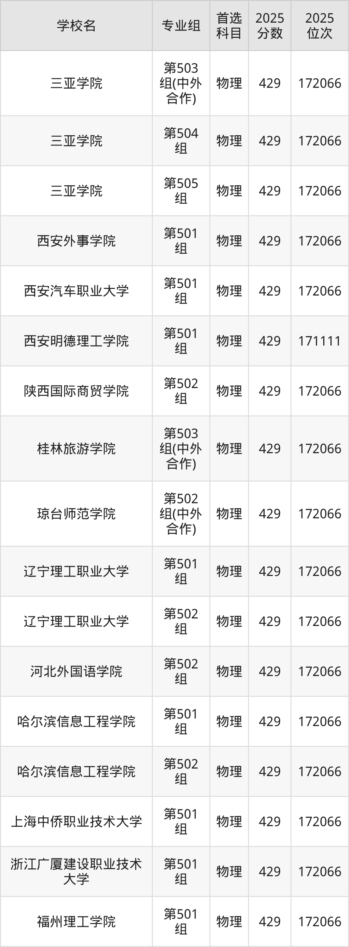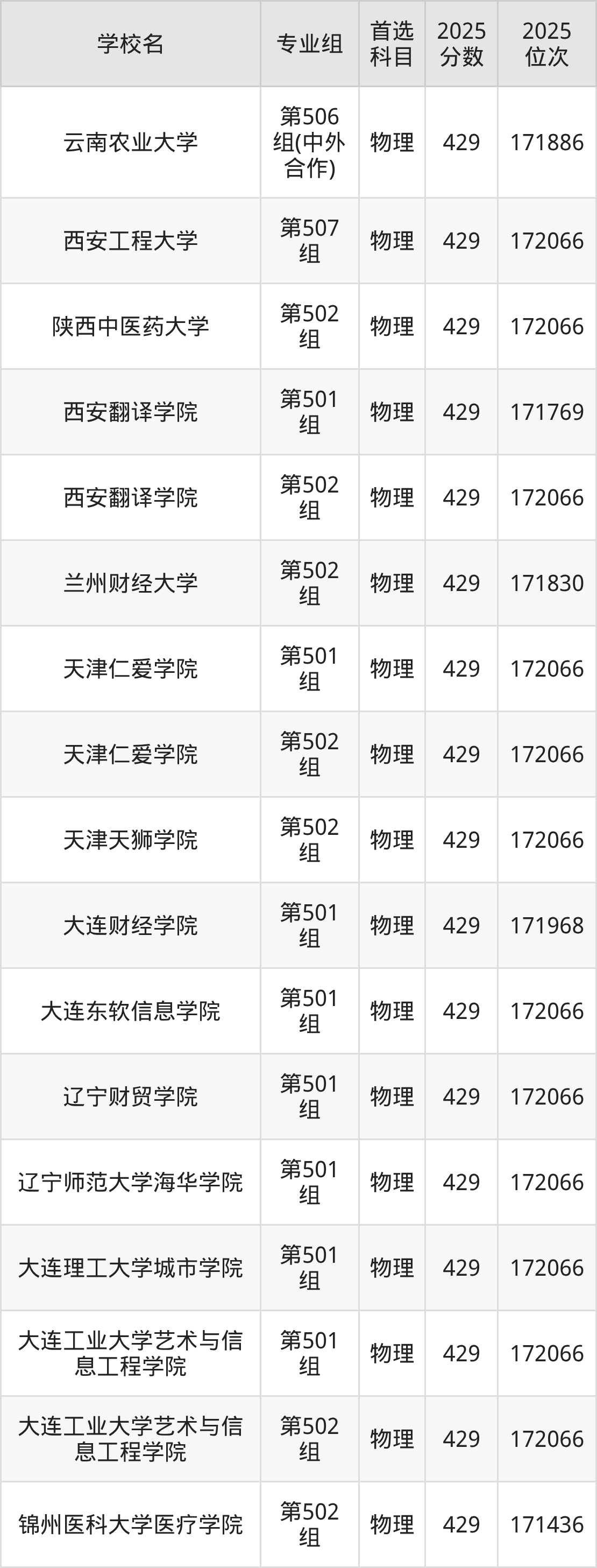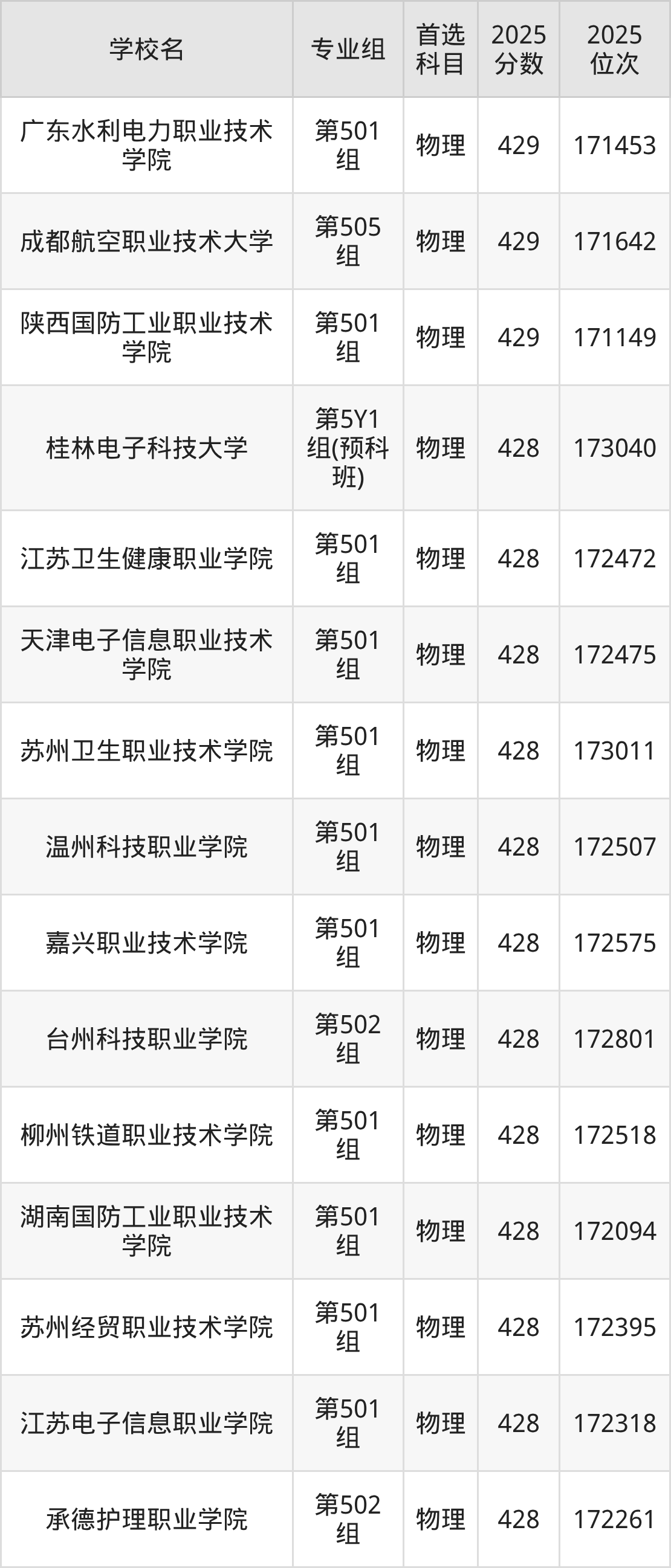 江西物理类430分对应的位次排名是170087名-170906名,因此建议2026年位次排在这附近的考生考虑这些大学。