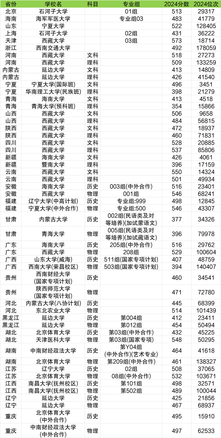 | 省份 | 科目 | 2024分数 | 2024位次 |