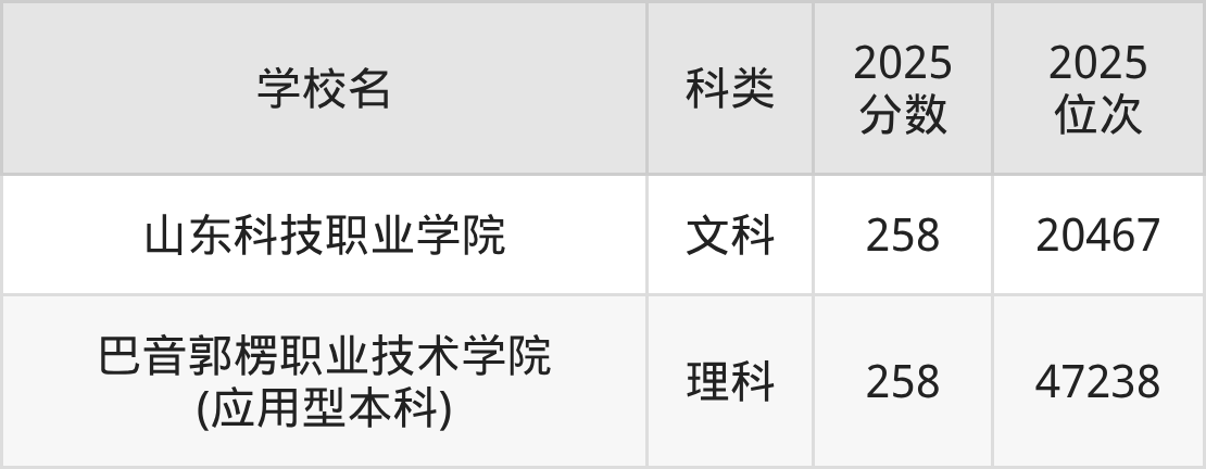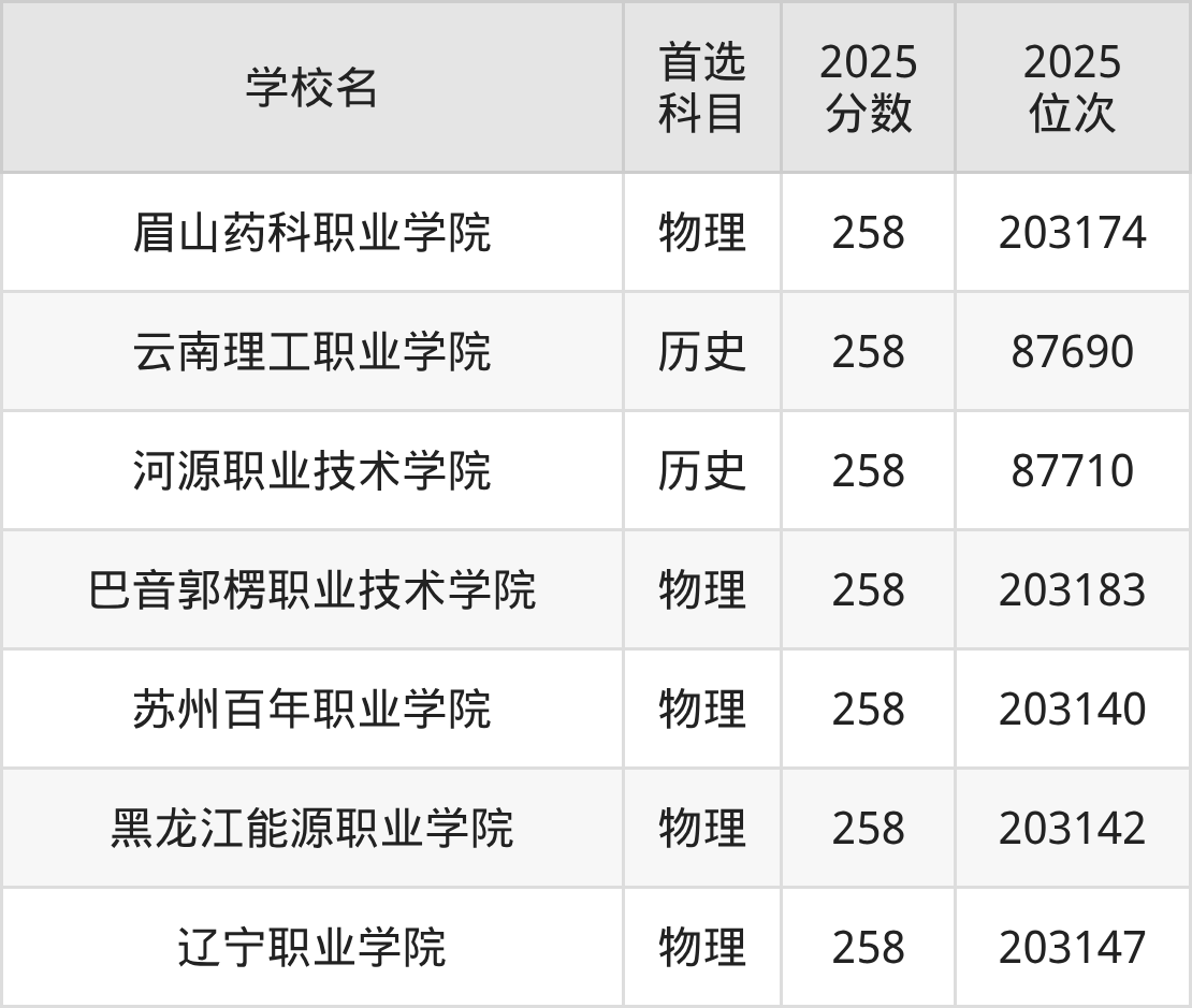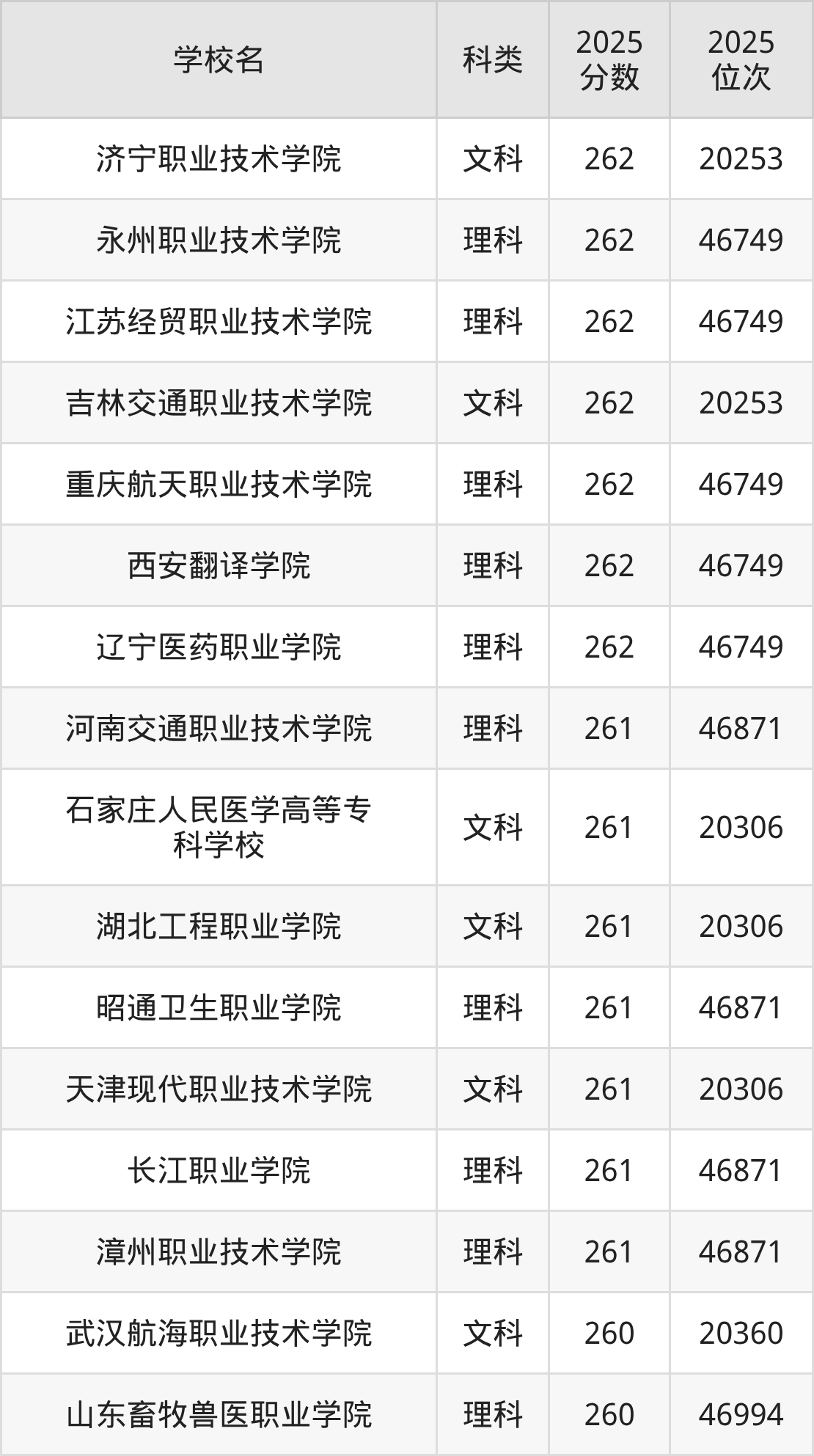 下面老师将以上文整理的其中两个省份为例,为大家具体展示260分左右能上的专科大学名单。