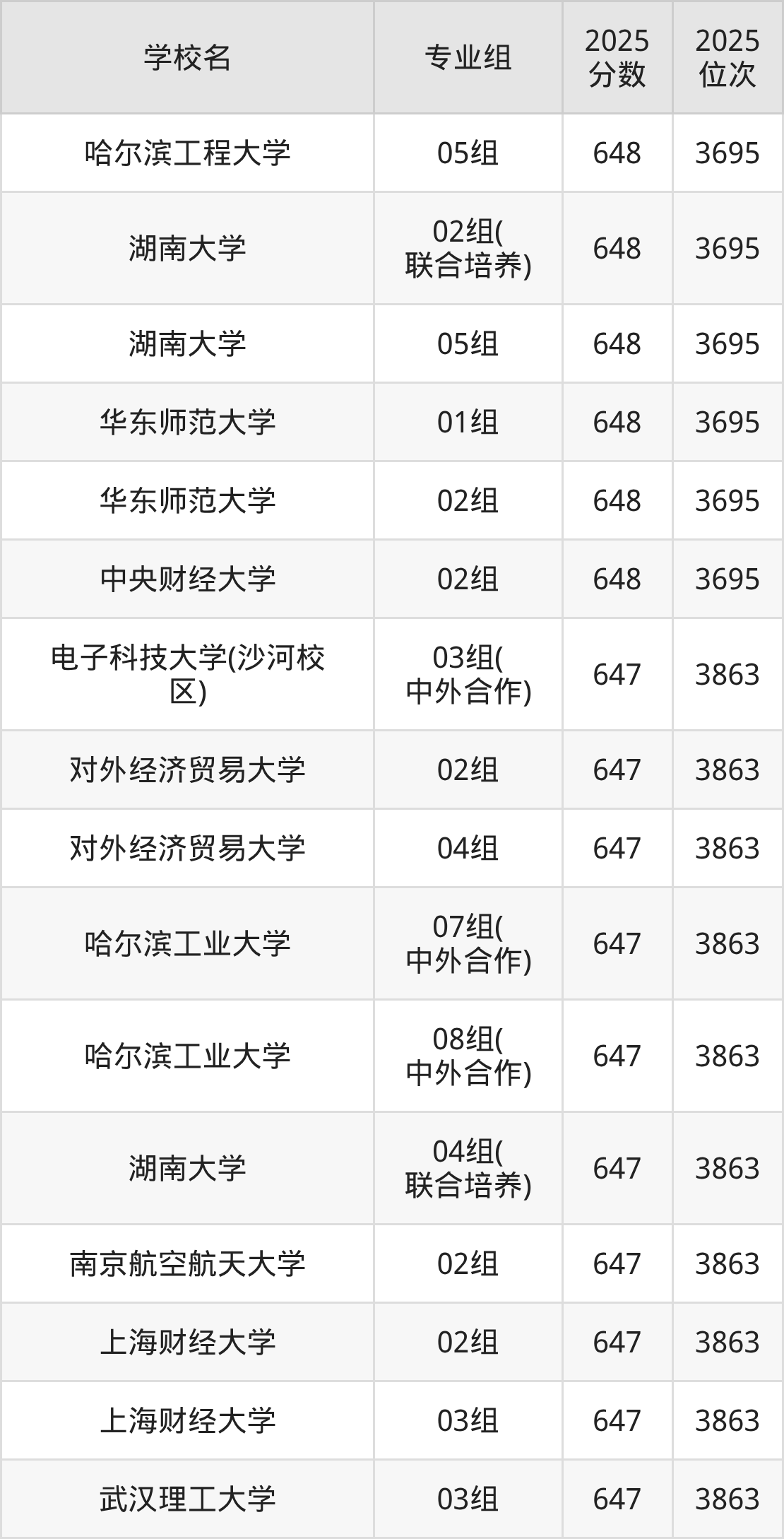 646分可以冲一冲的大学:哈尔滨工程大学648分、湖南大学648分、华东师范大学648分、中央财经大学648分等;