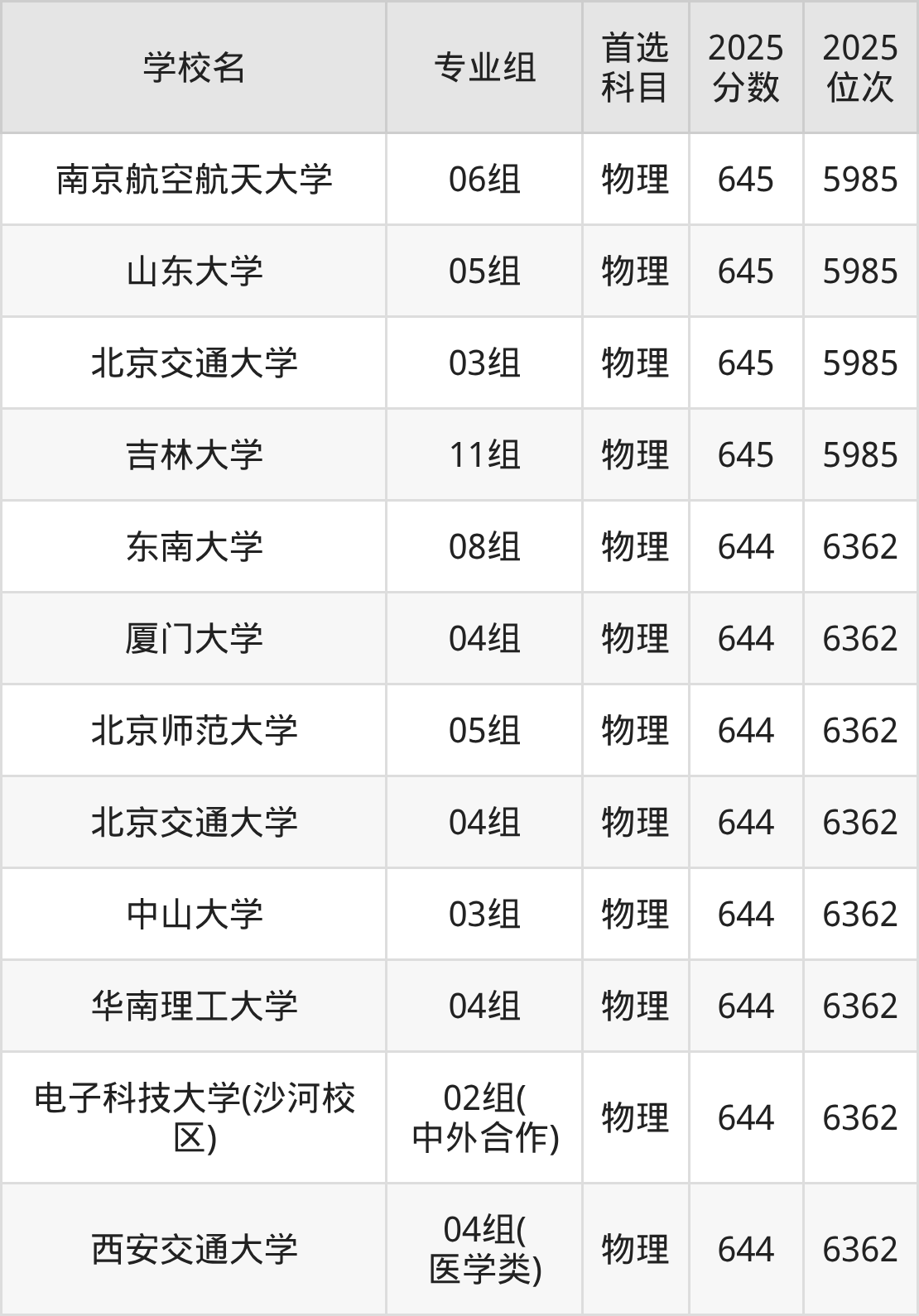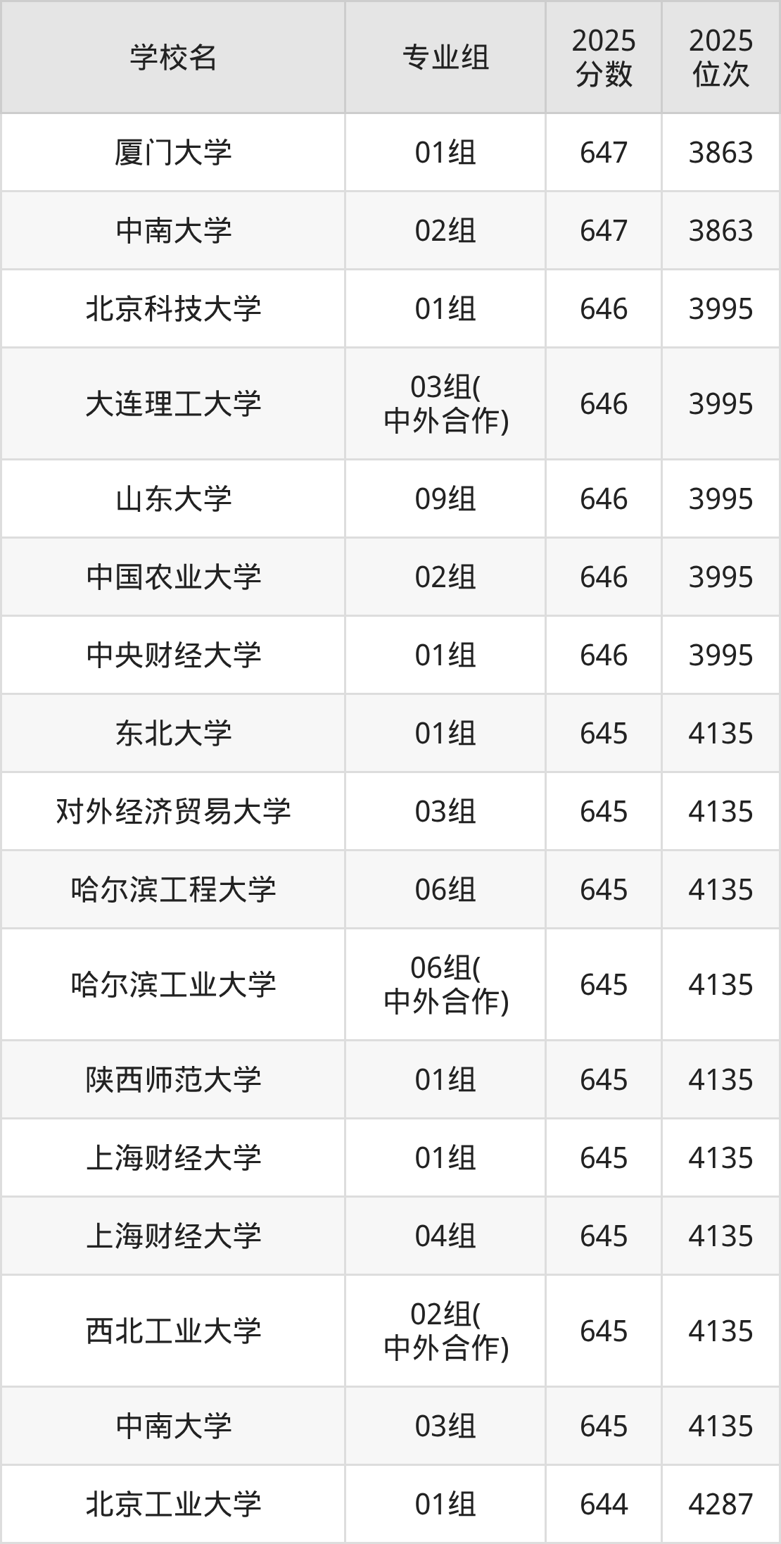 646分较稳妥的大学:南京大学645分、南京航空航天大学645分、山东大学645分、北京交通大学645分等。