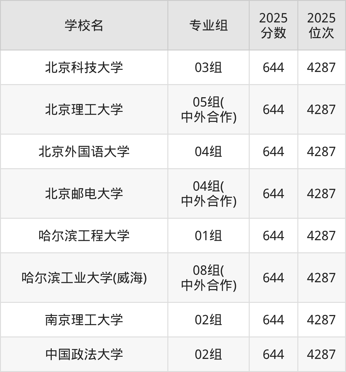 646分较稳妥的大学:东北大学645分、对外经济贸易大学645分、哈尔滨工程大学645分、哈尔滨工业大学645分等。