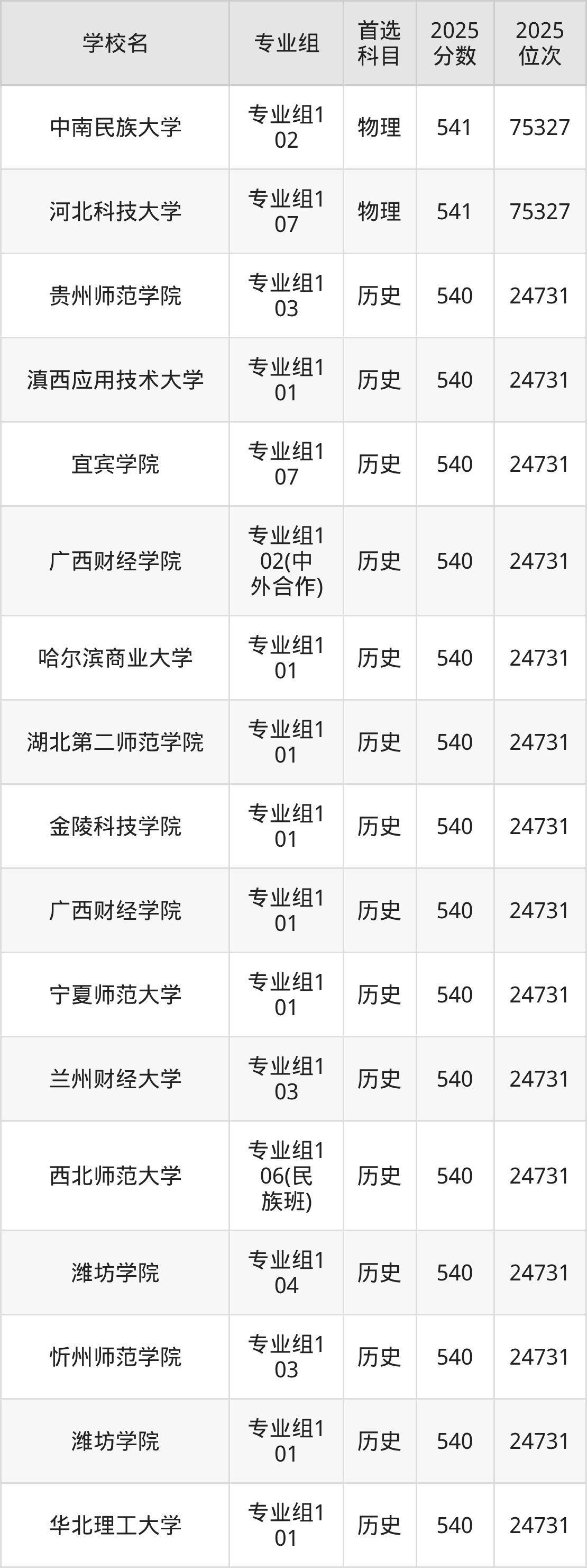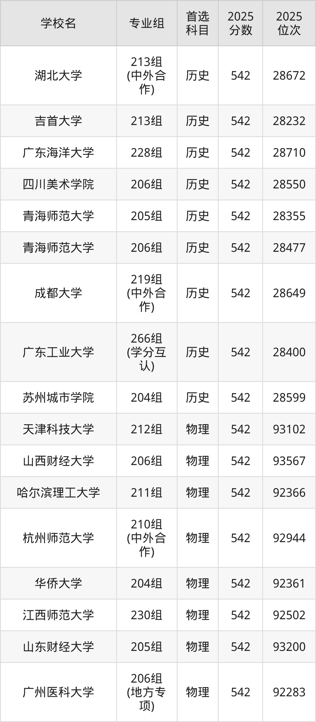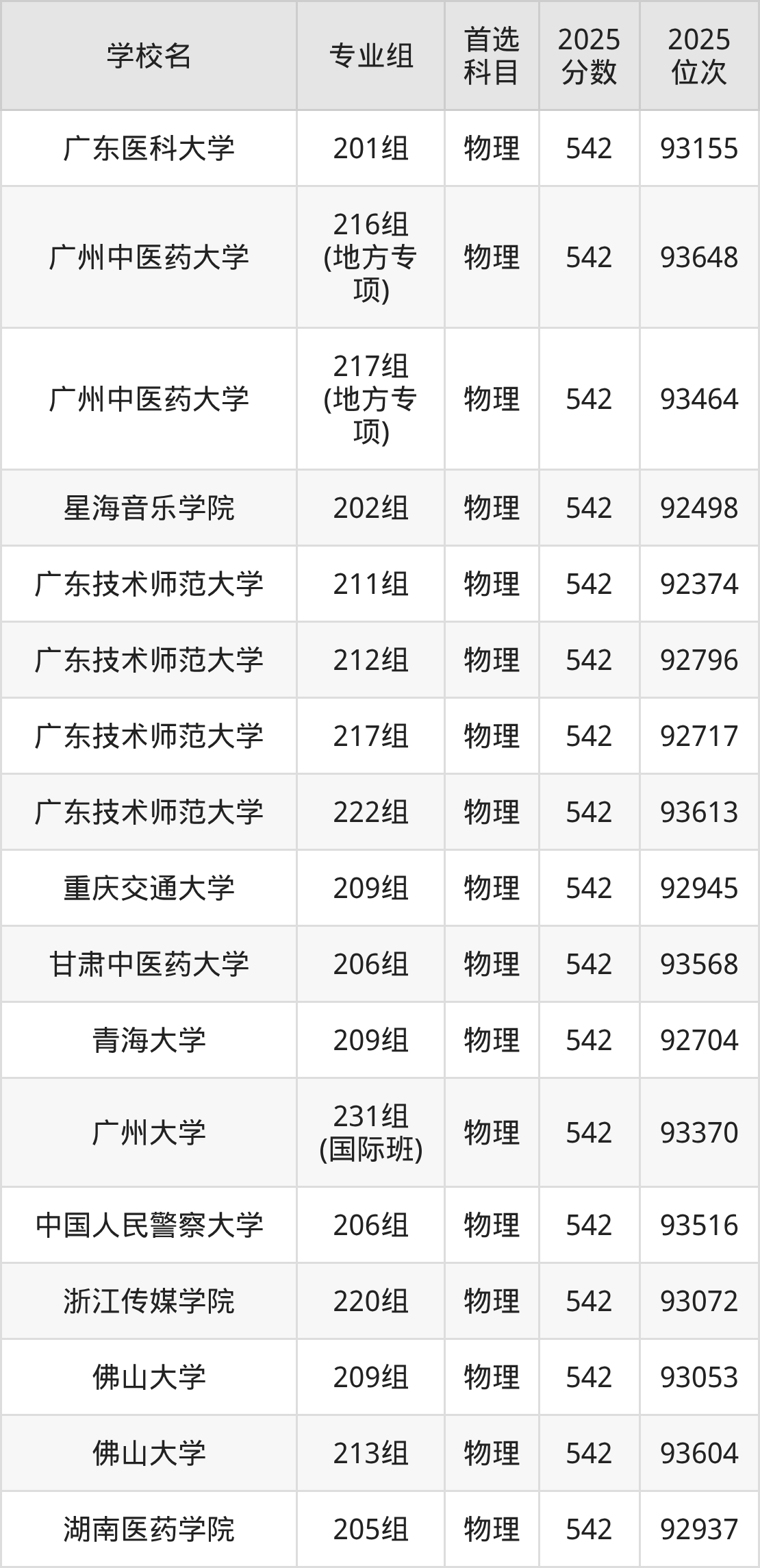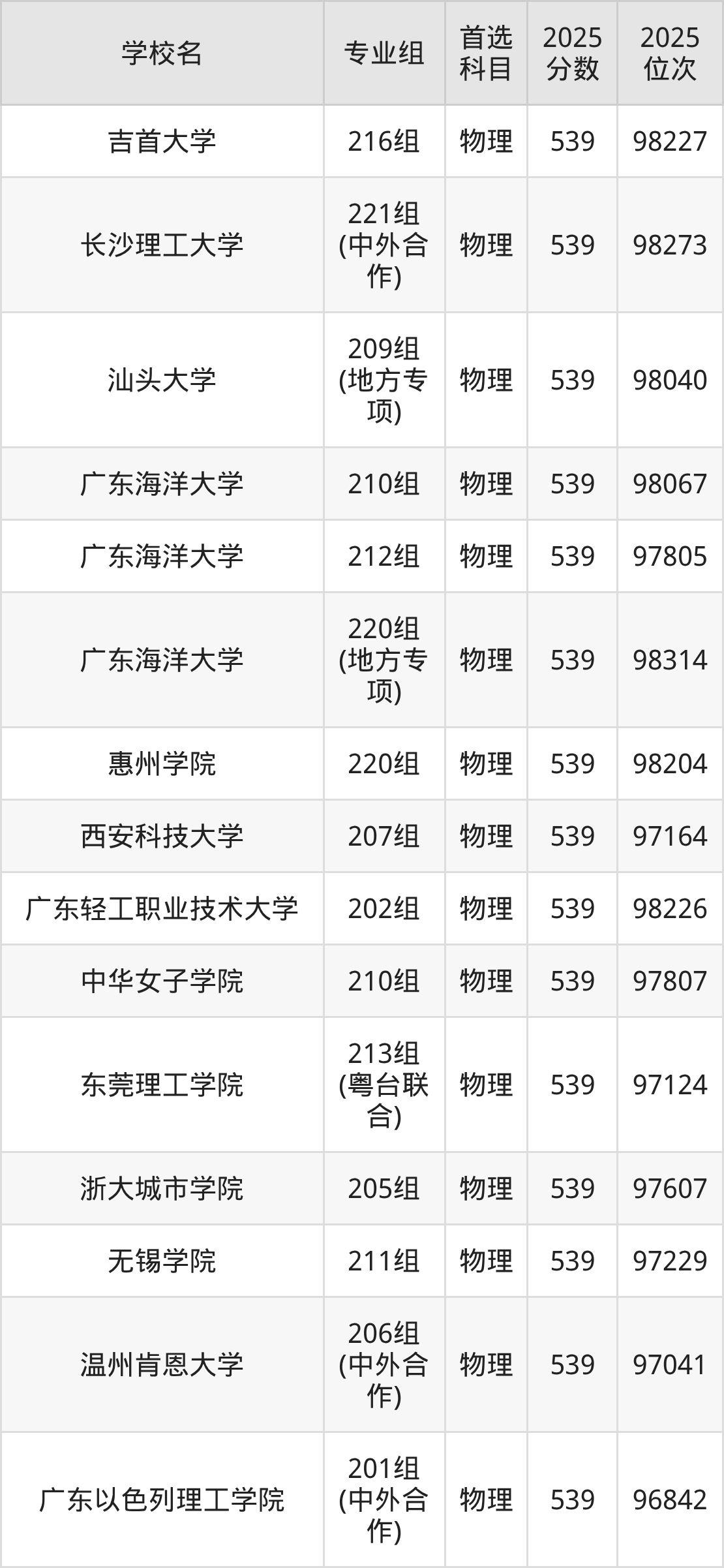 广东高考历史类541分对应的位次排名是28859名-29392名,物理类541分对应的位次排名是93827名-95225名,因此建议2026年位次排在这附近的同学考虑这些大学。