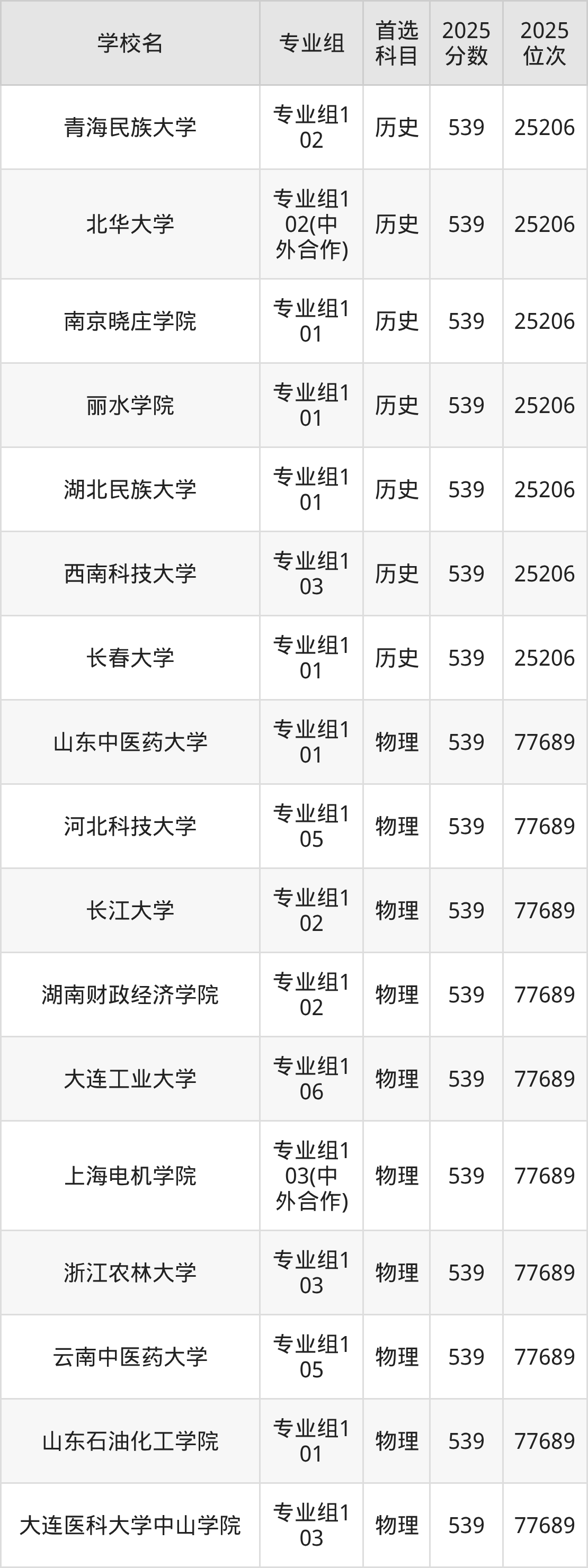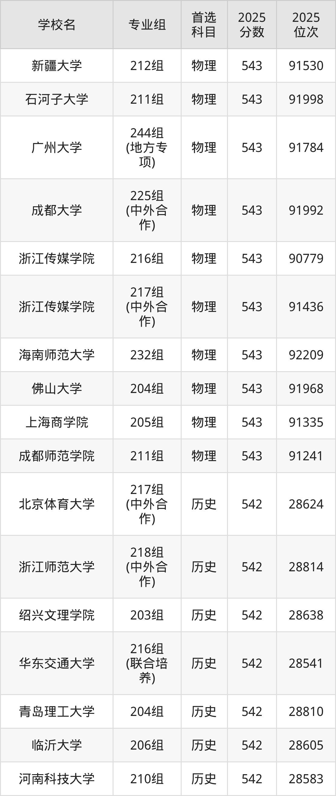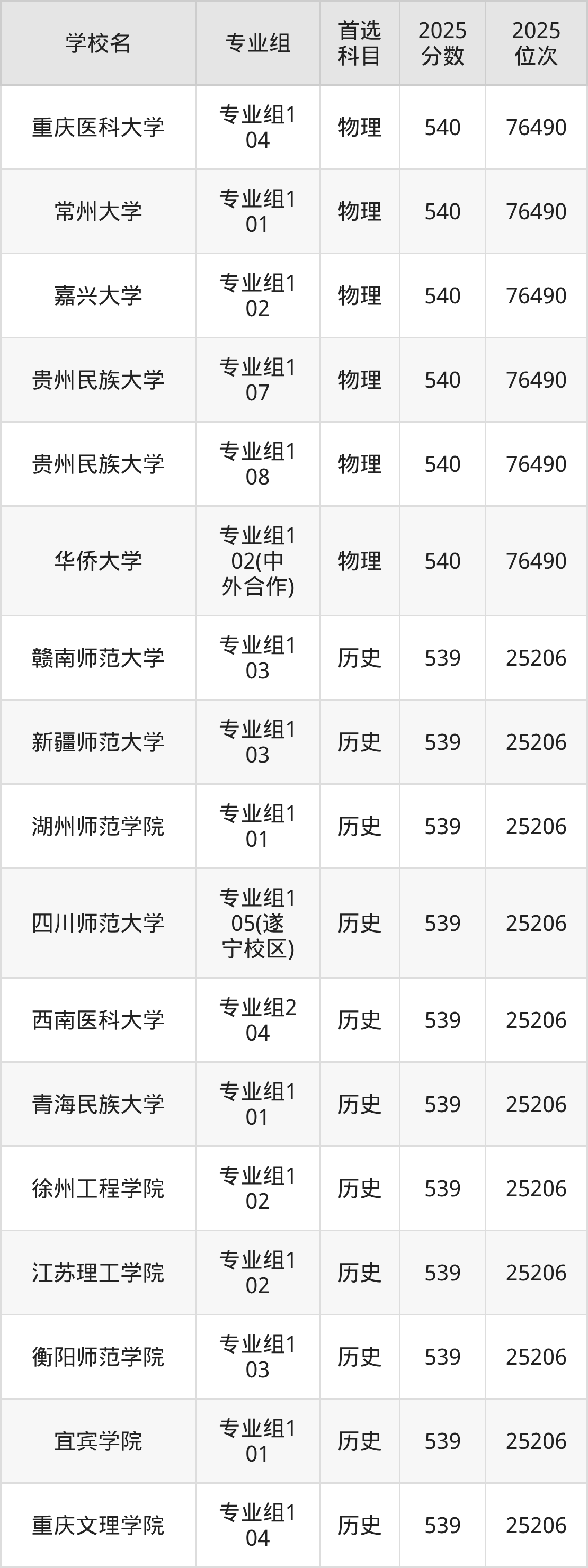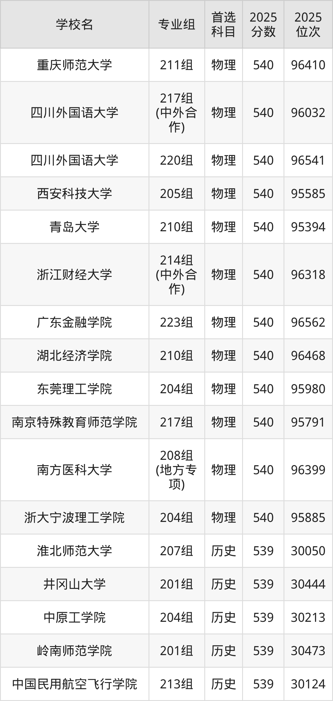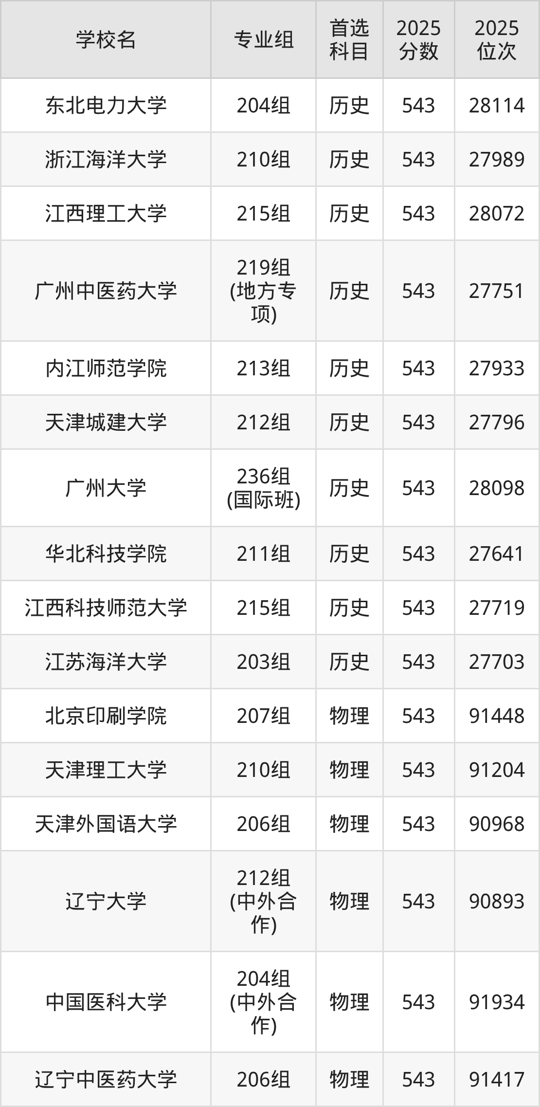 广东高考历史类541分对应的位次排名是28859名-29392名,物理类541分对应的位次排名是93827名-95225名,因此建议2026年位次排在这附近的同学考虑这些大学。