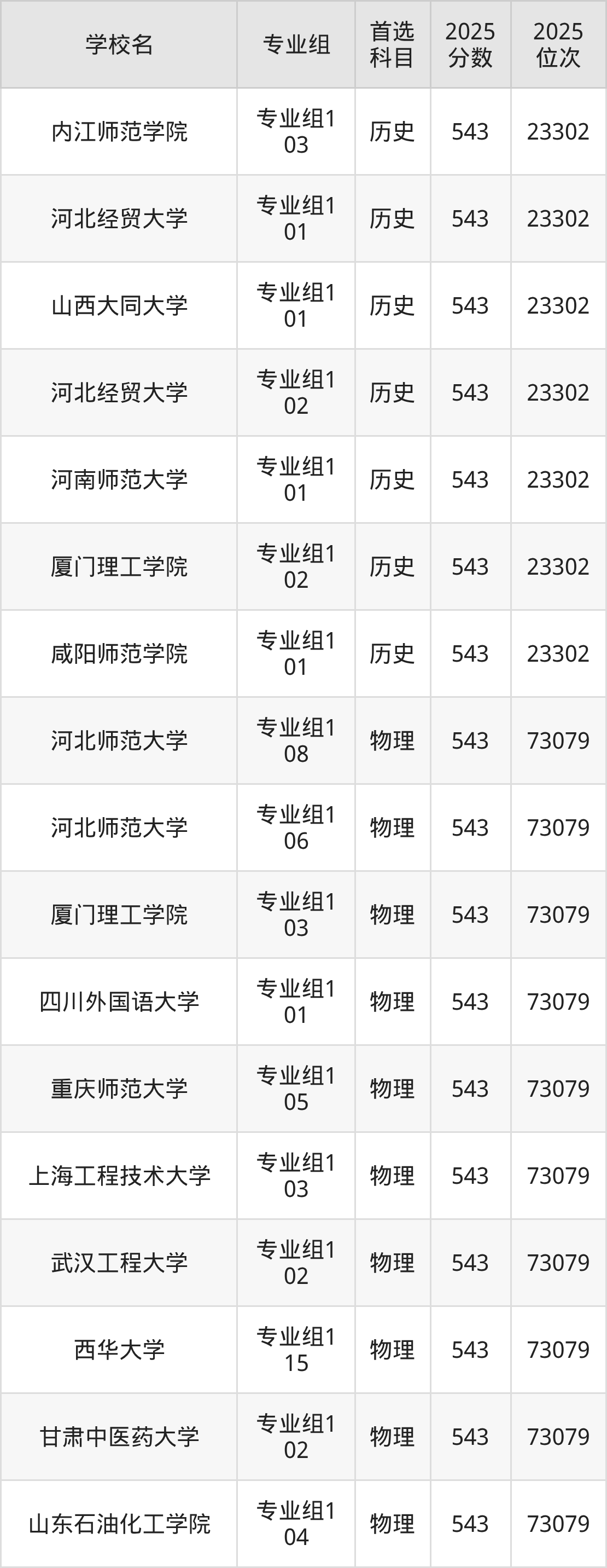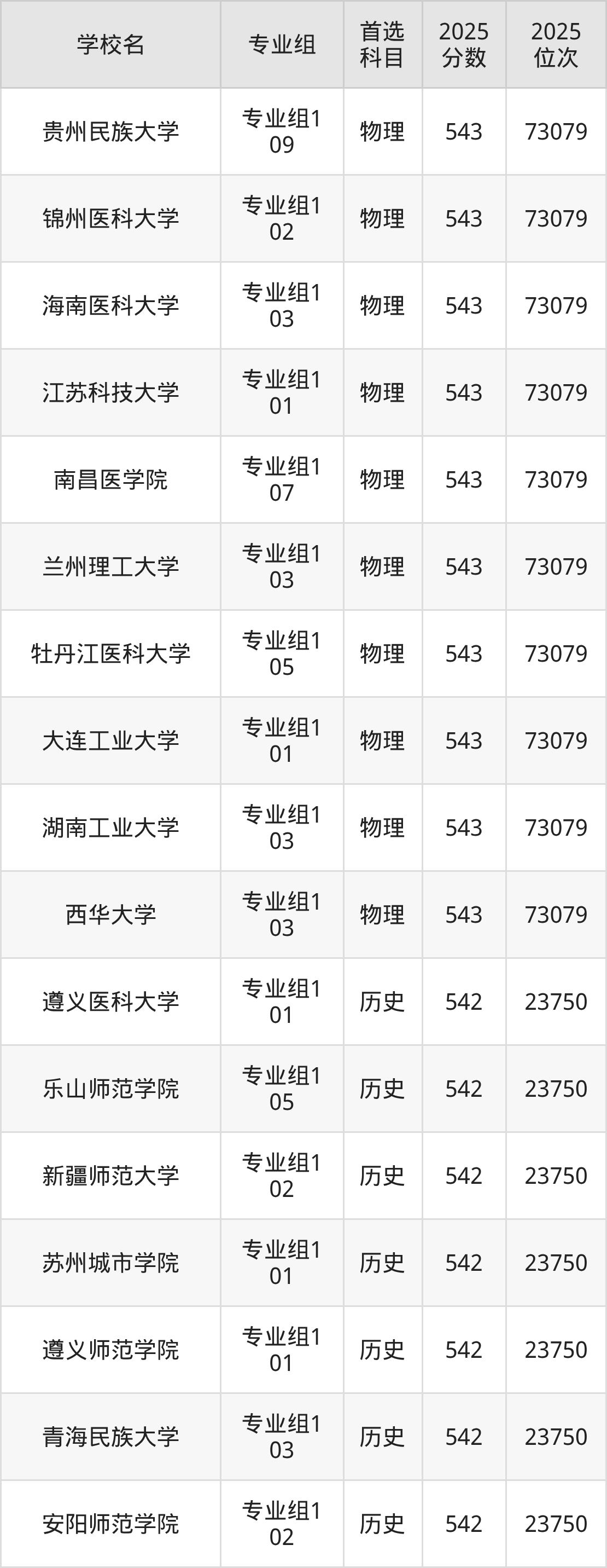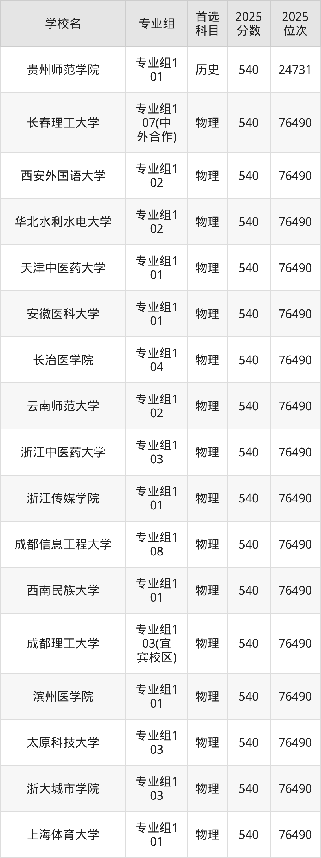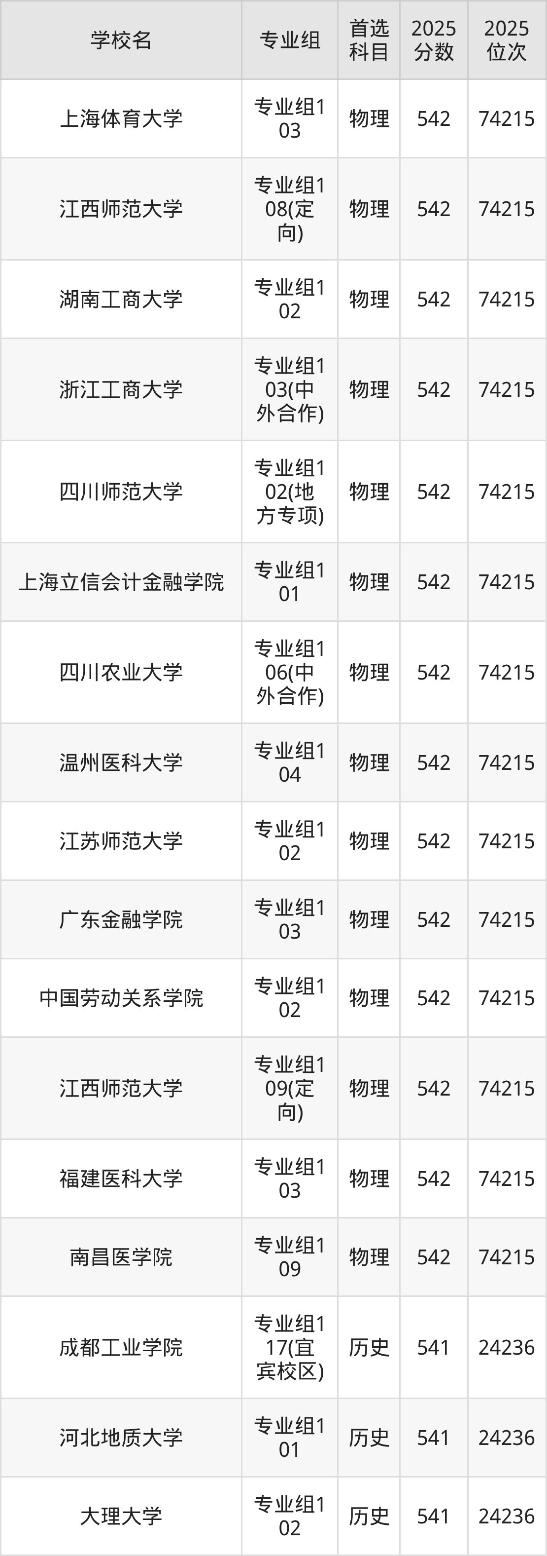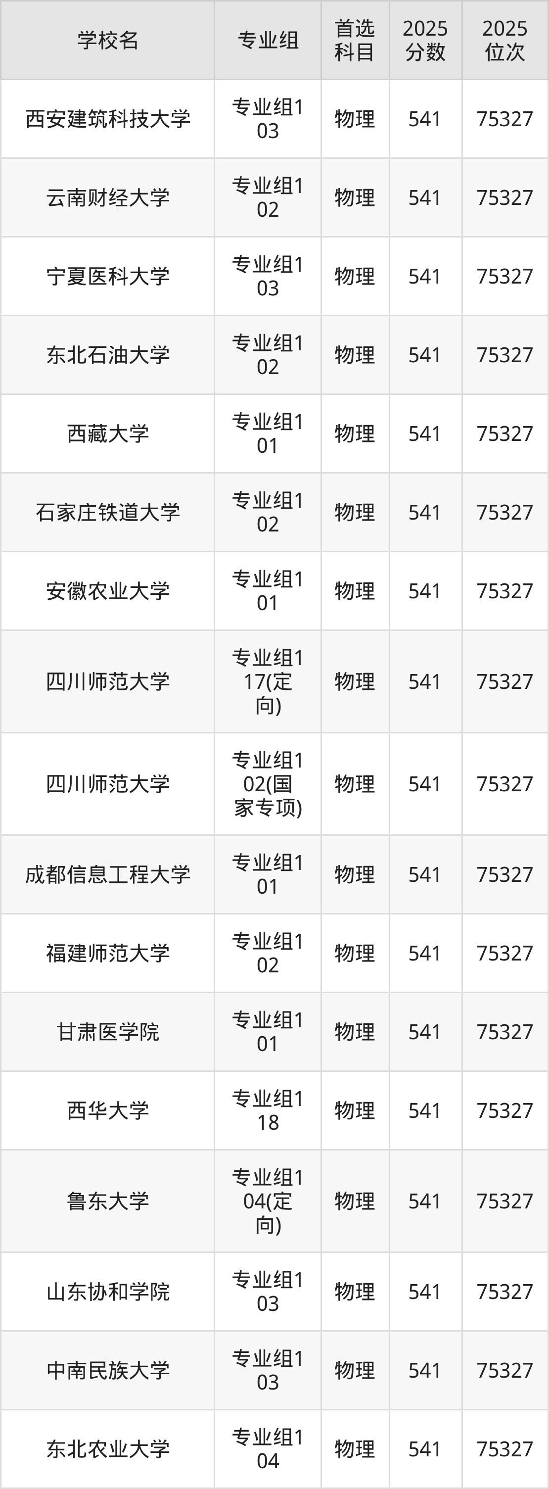 四川高考历史类541分对应的位次排名是24236名,物理类541分对应的位次排名是75327名,因此建议2026年位次排在这附近的同学考虑这些大学。