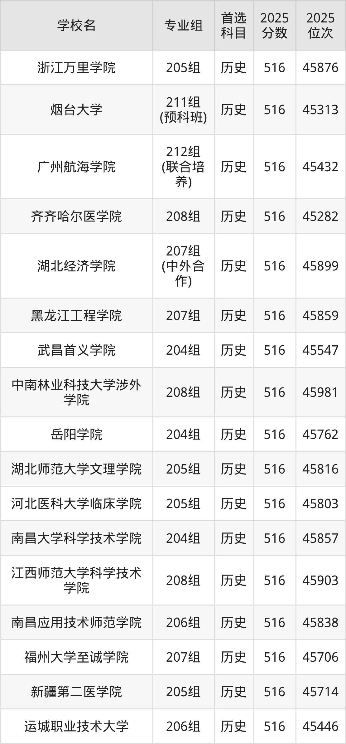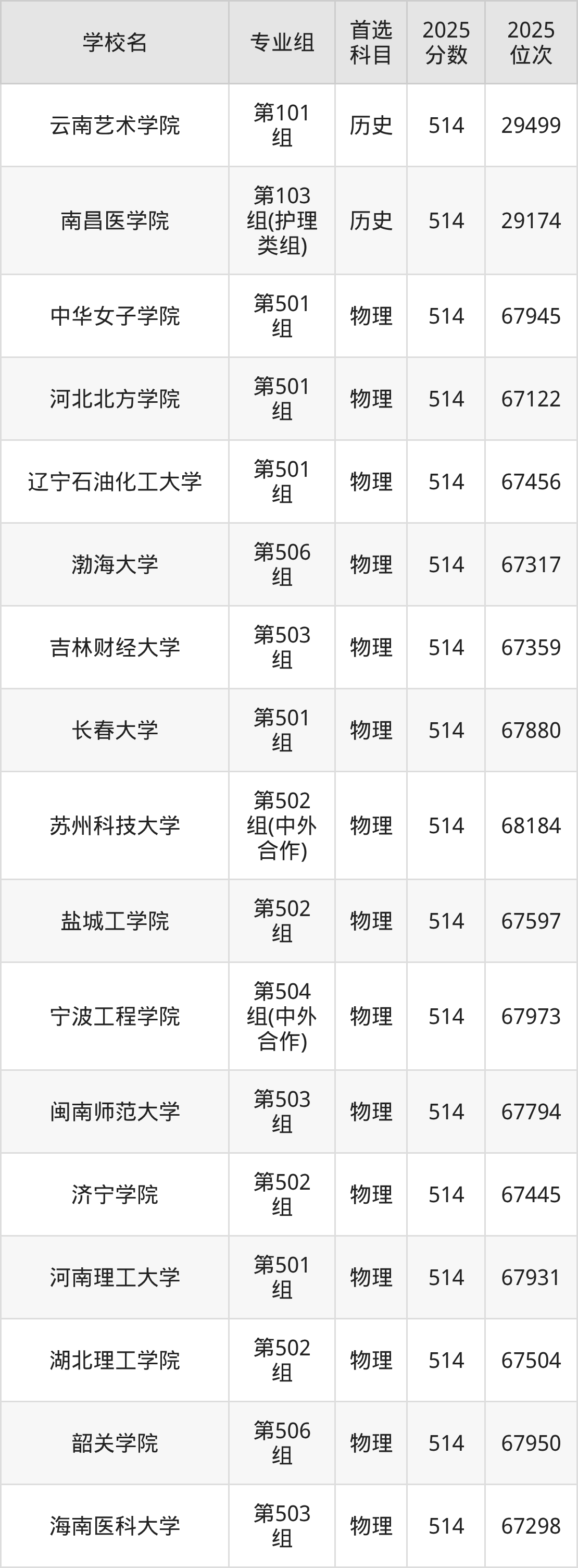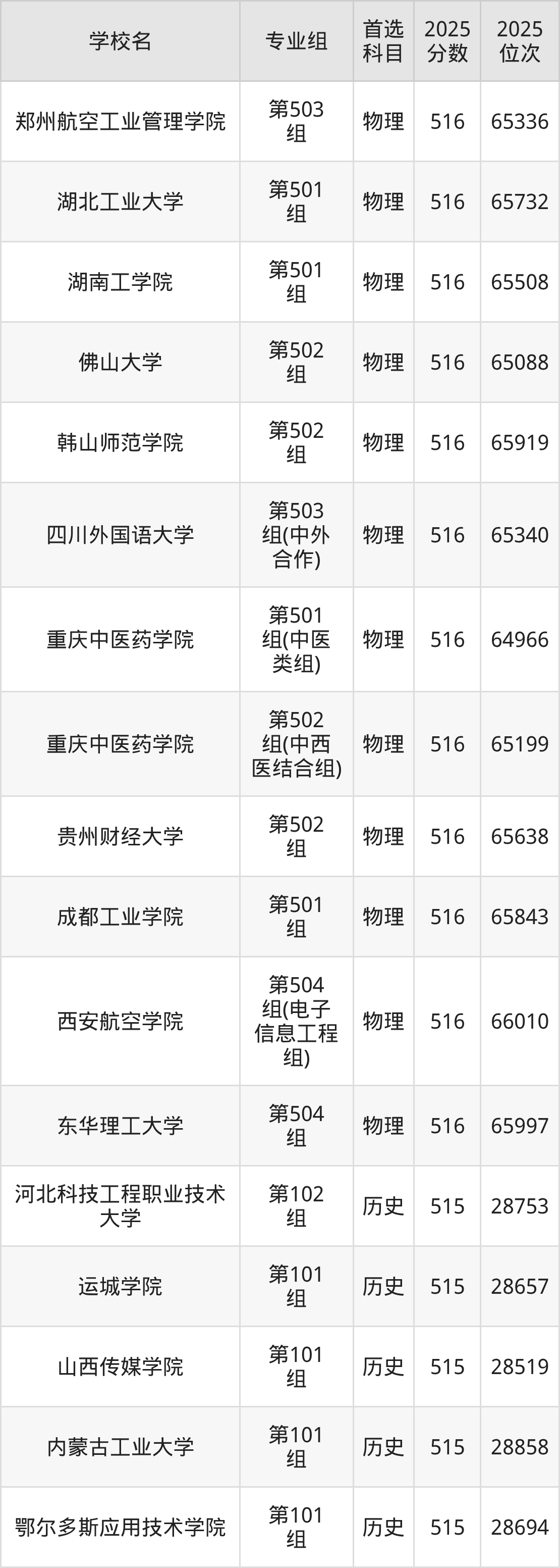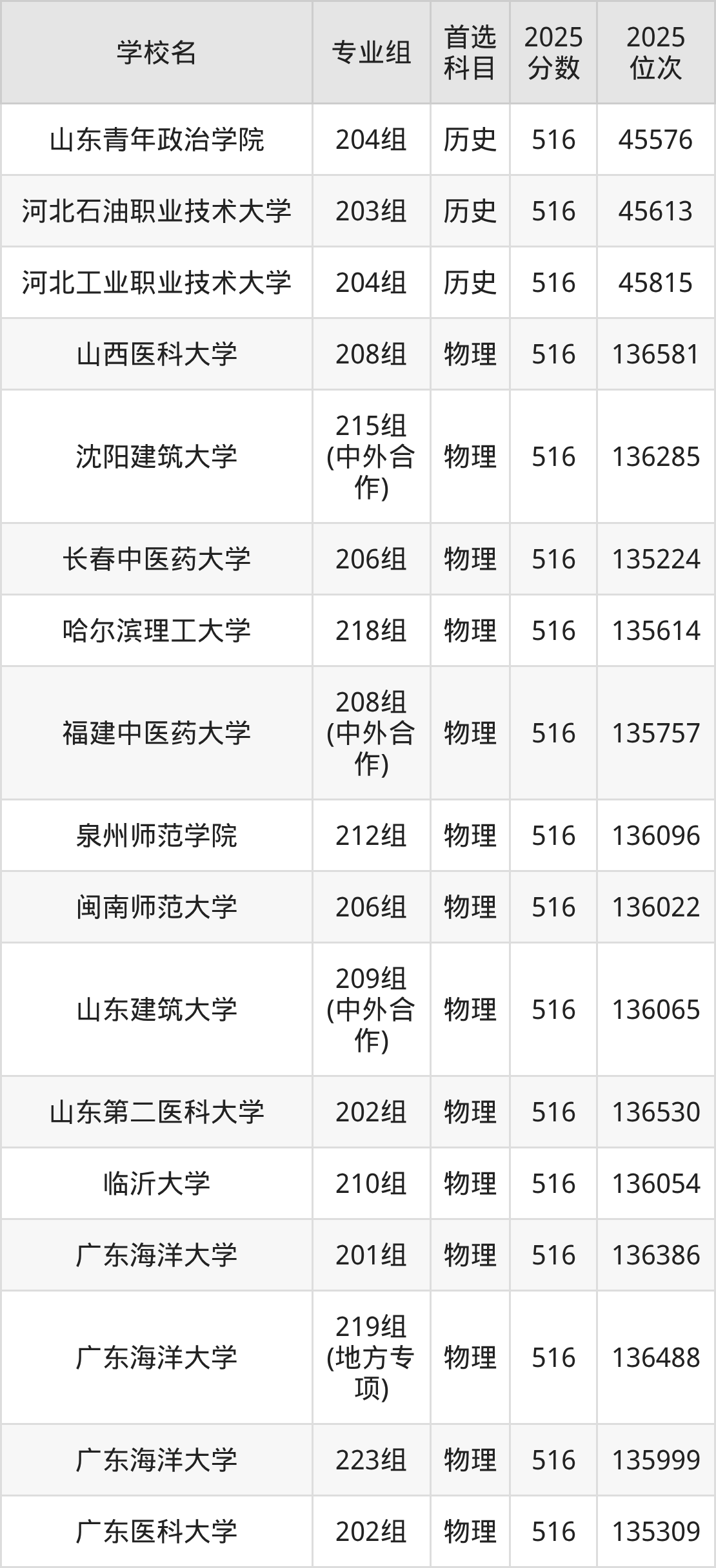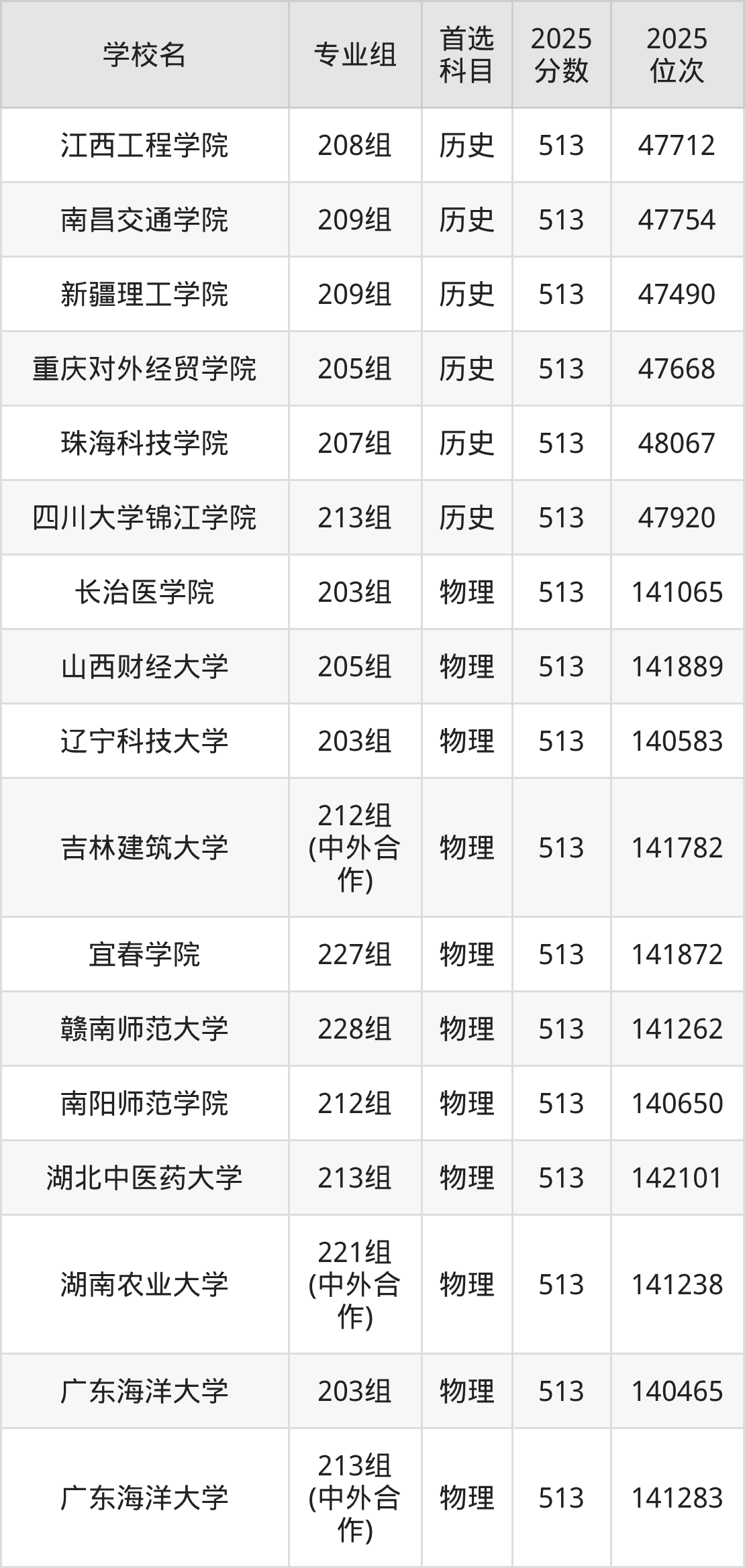 广东高考历史类515分对应的位次排名是46005名-46706名,物理类515分对应的位次排名是137009名-138593名,因此建议2026年位次排在这附近的同学考虑这些大学。