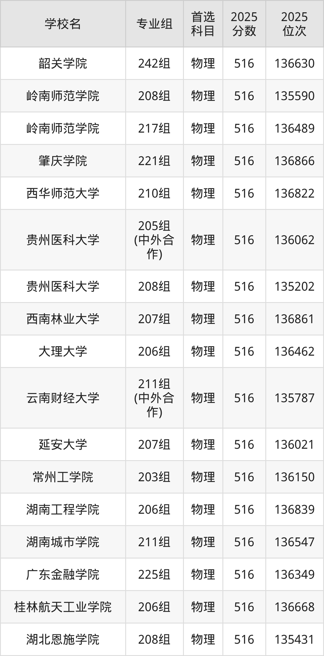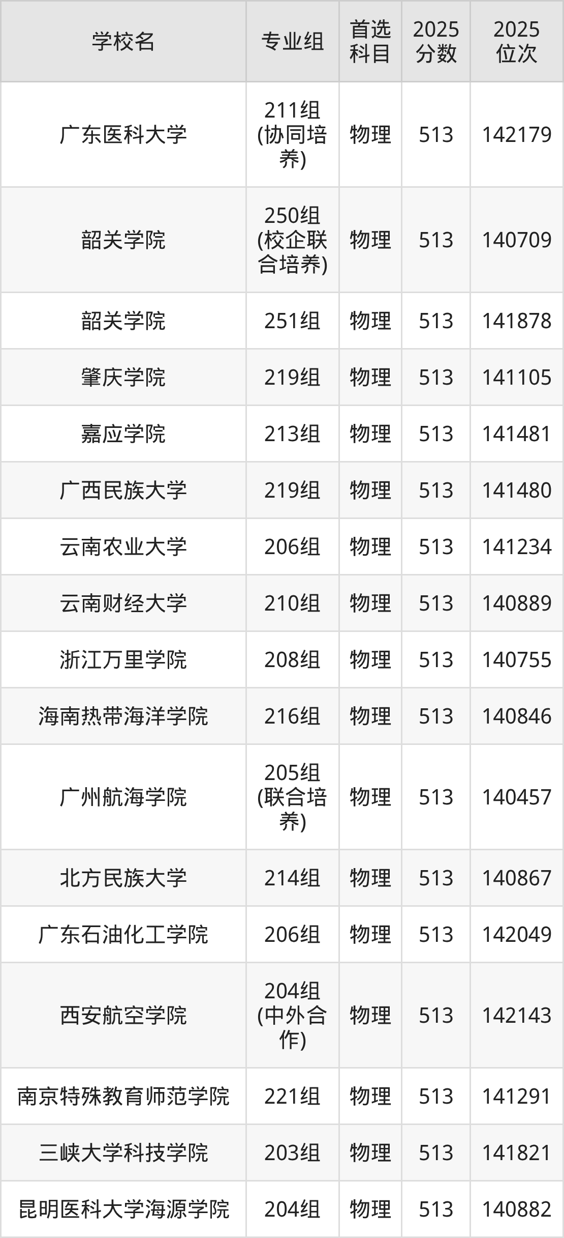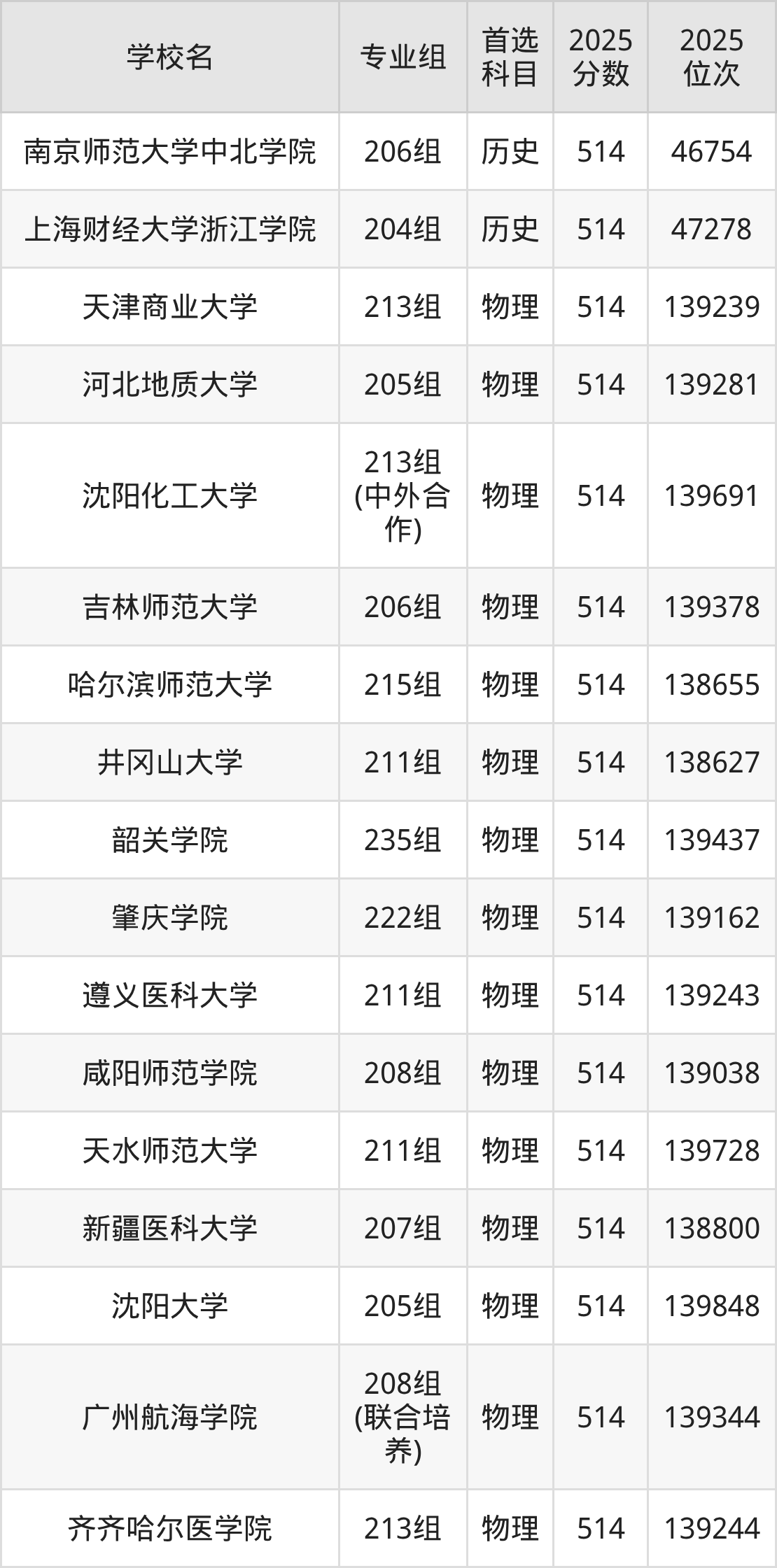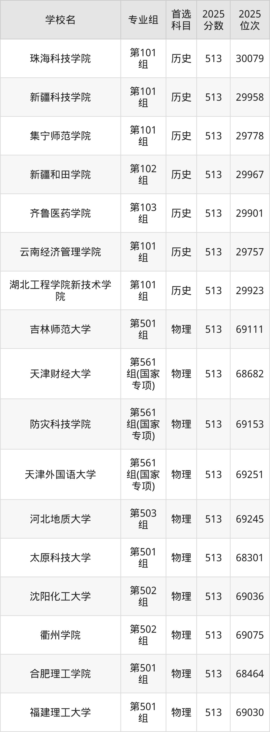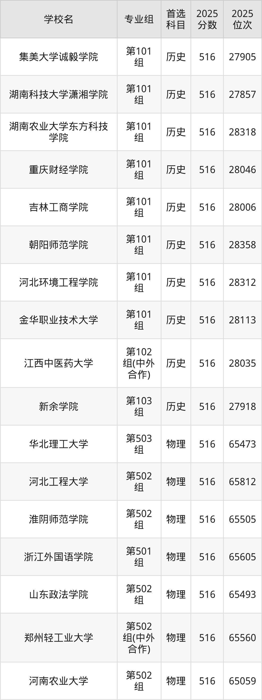 广东高考历史类515分对应的位次排名是46005名-46706名,物理类515分对应的位次排名是137009名-138593名,因此建议2026年位次排在这附近的同学考虑这些大学。