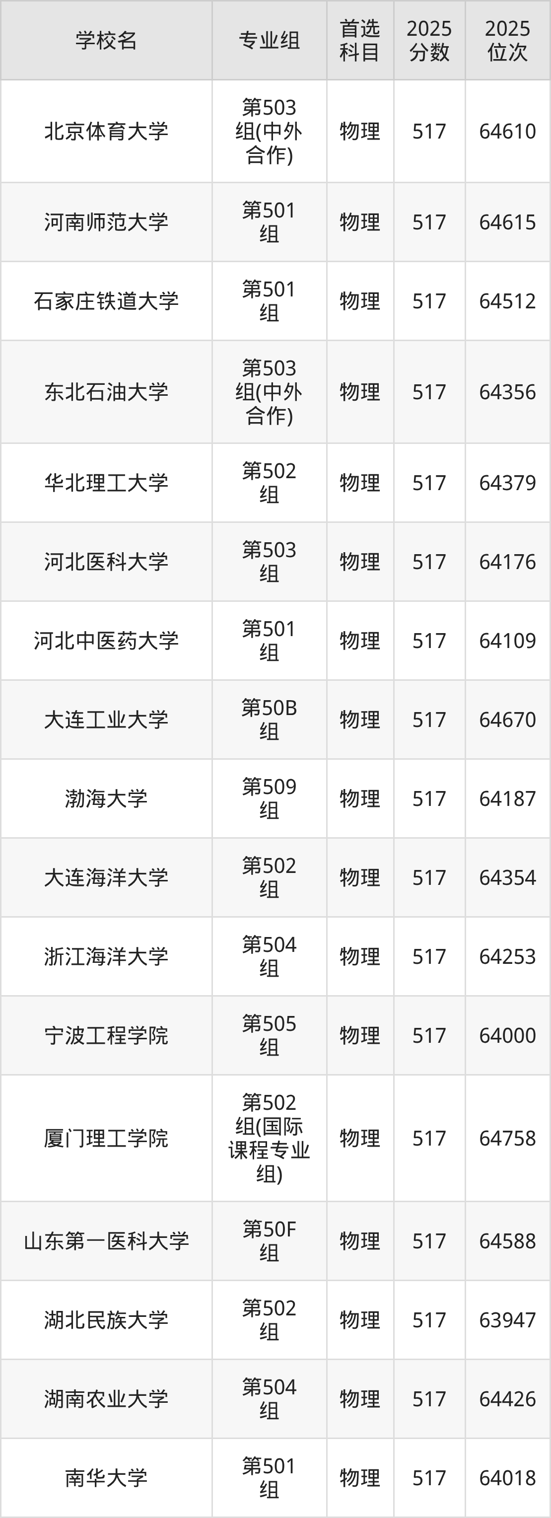 物理类515分可以冲的大学:黑龙江大学517分、哈尔滨医科大学517分、南京体育学院517分、安徽理工大学517分等;较稳妥的大学:天津商业大学514分、河北地质大学514分、沈阳化工大学514分、吉林师范大学514分等。