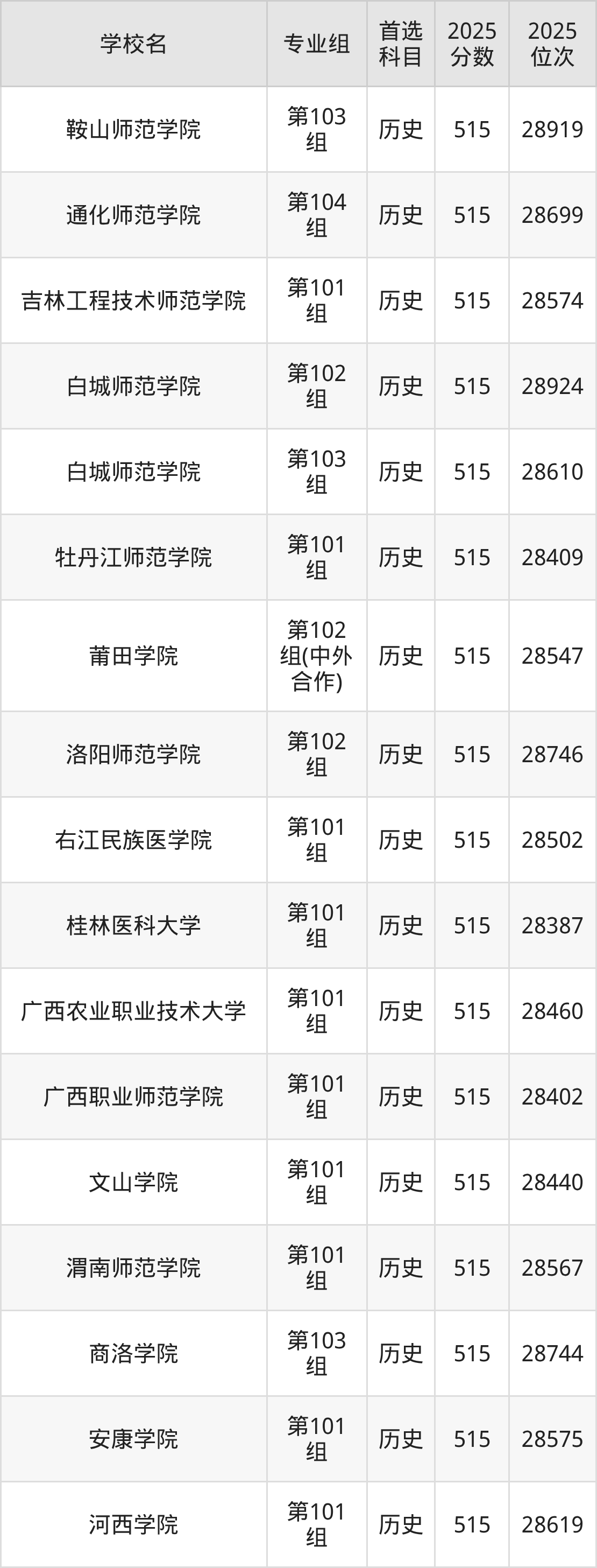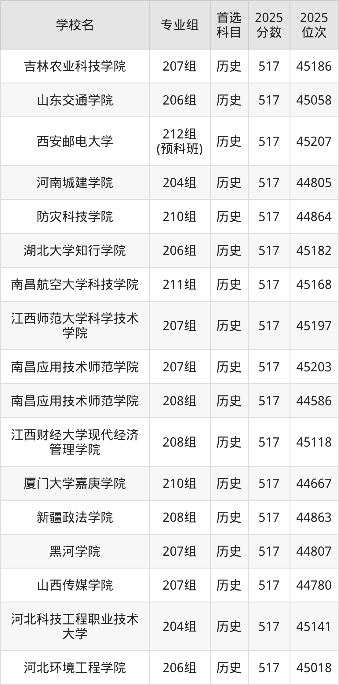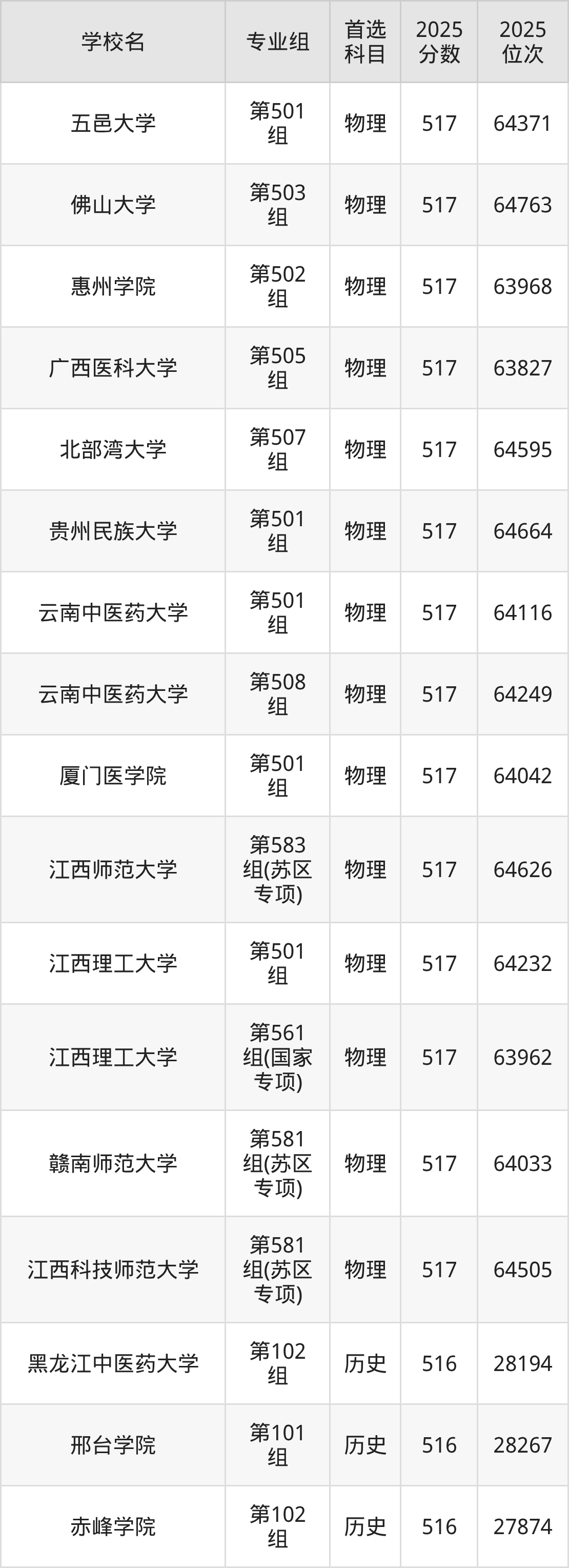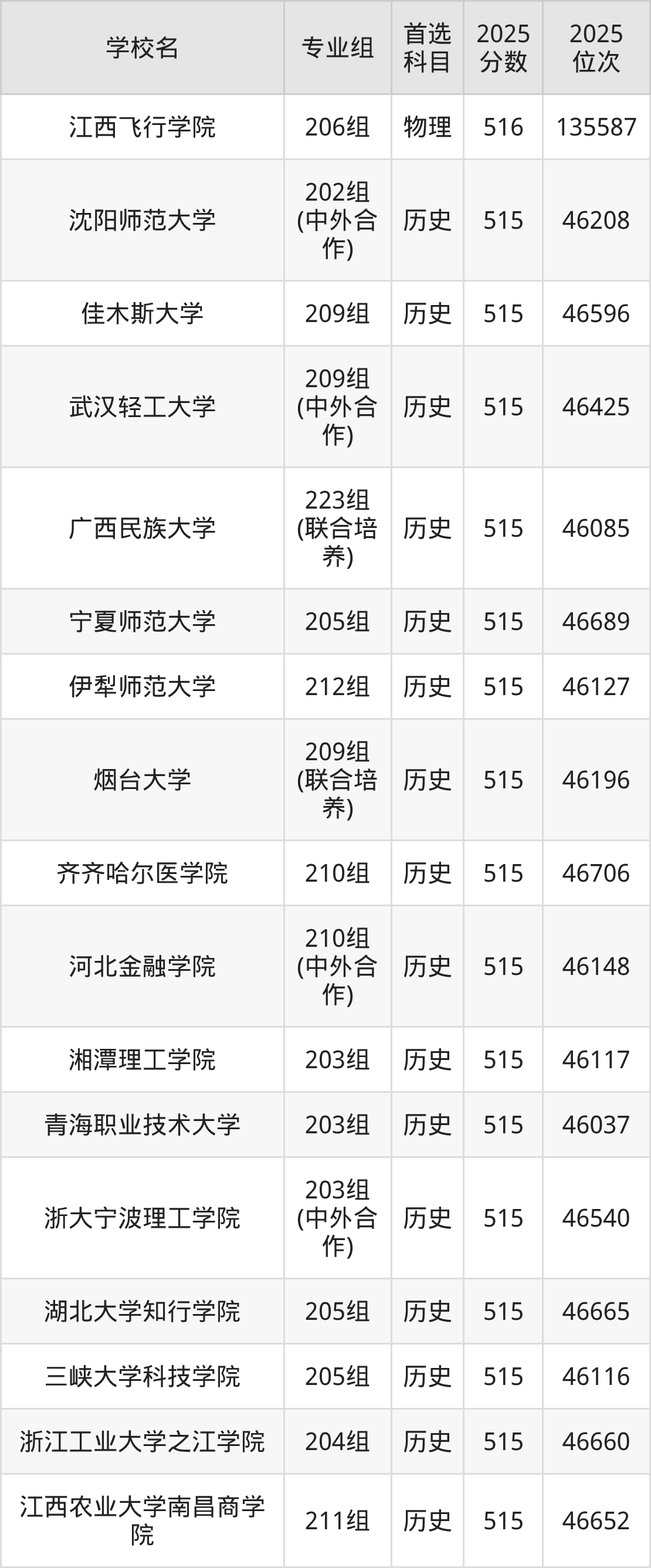 江西高考历史类515分对应的位次排名是28387名-28924名,物理类515分对应的位次排名是66039名-67070名,因此建议2026年位次排在这附近的同学考虑这些大学。
