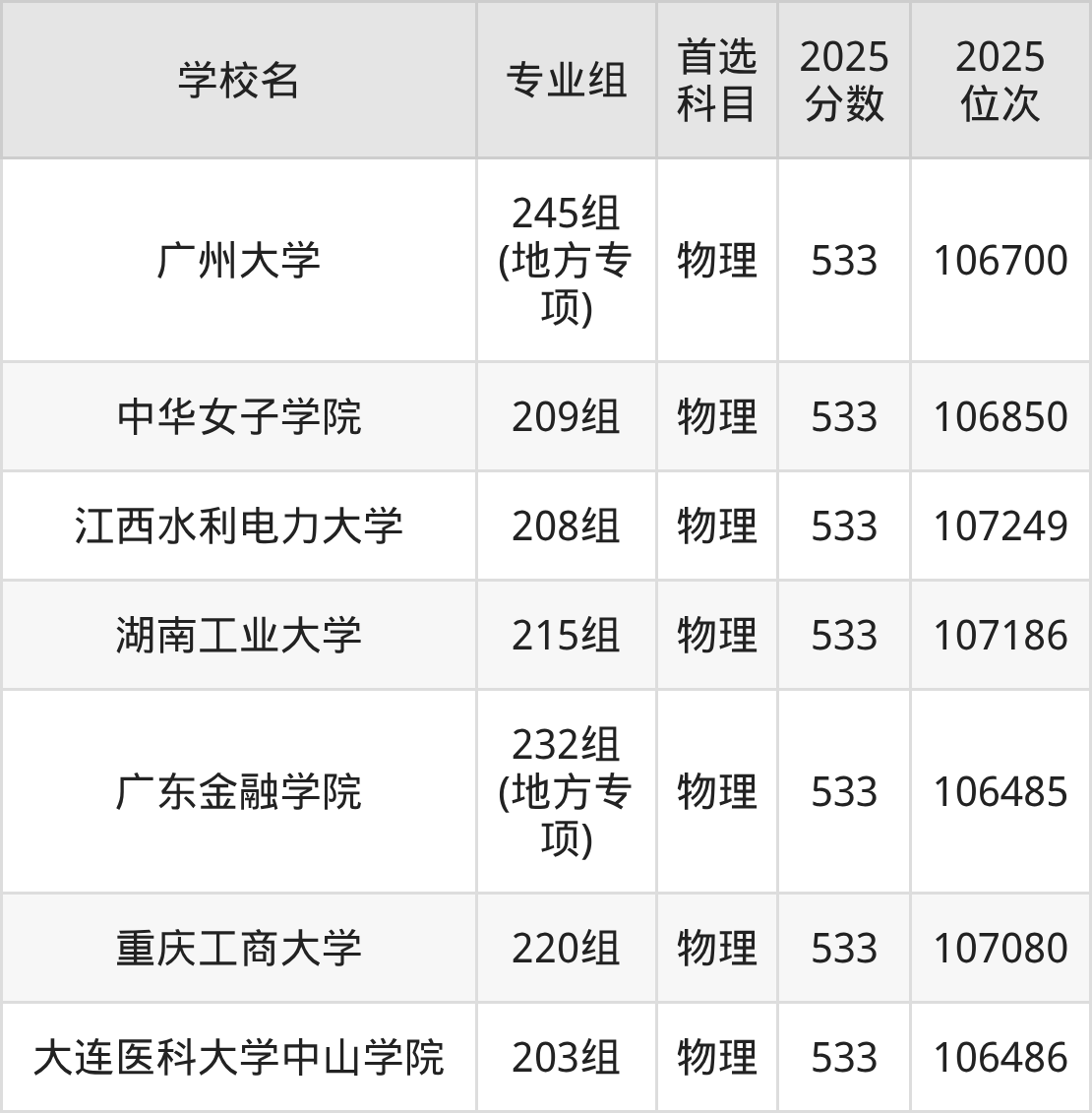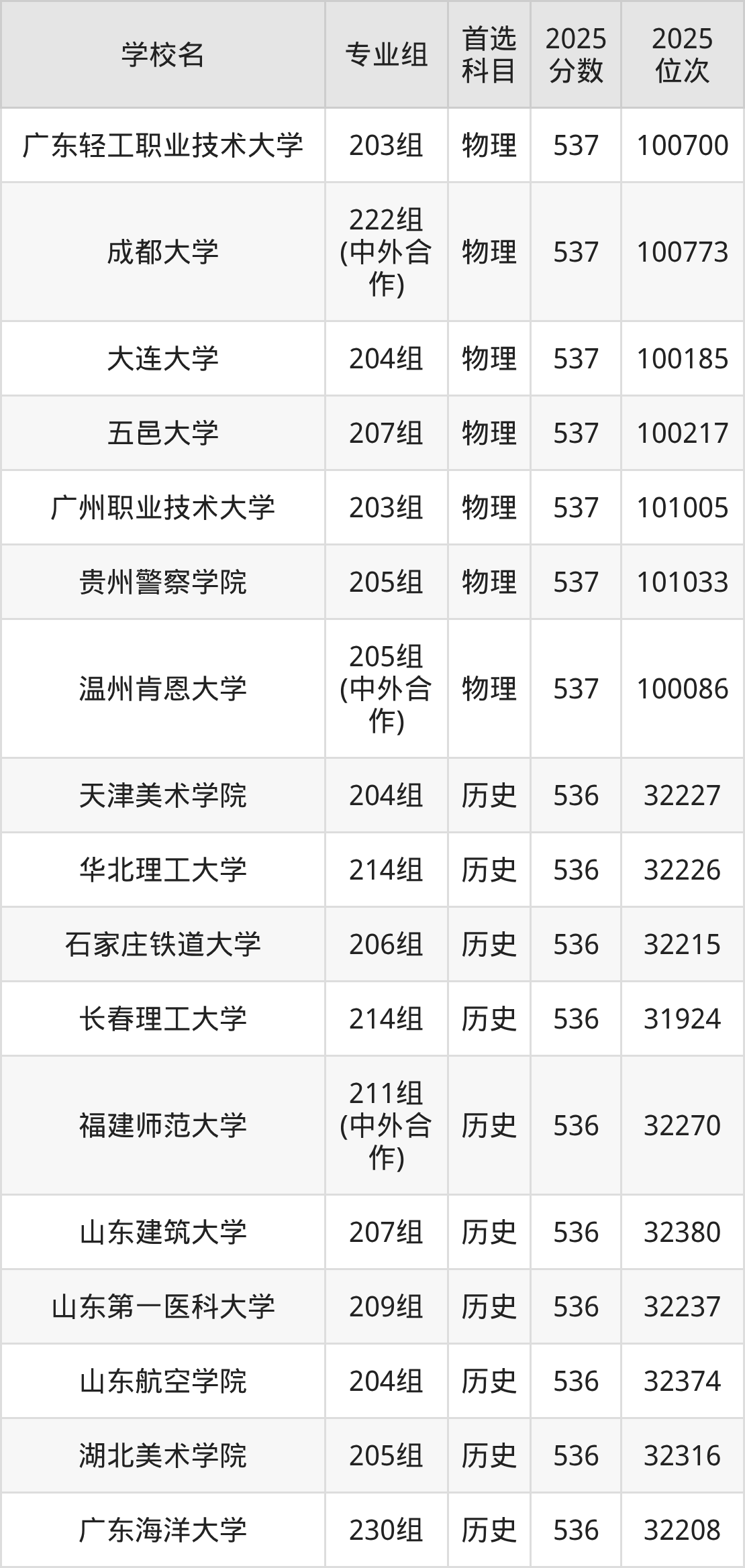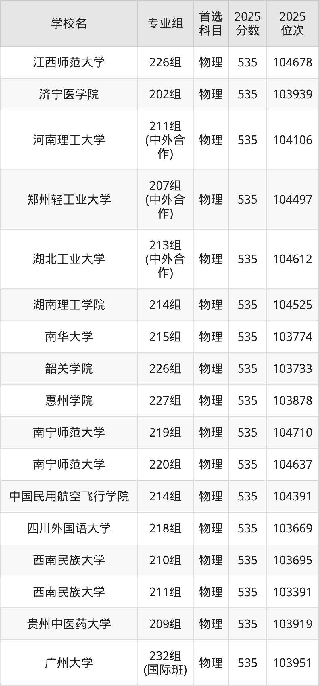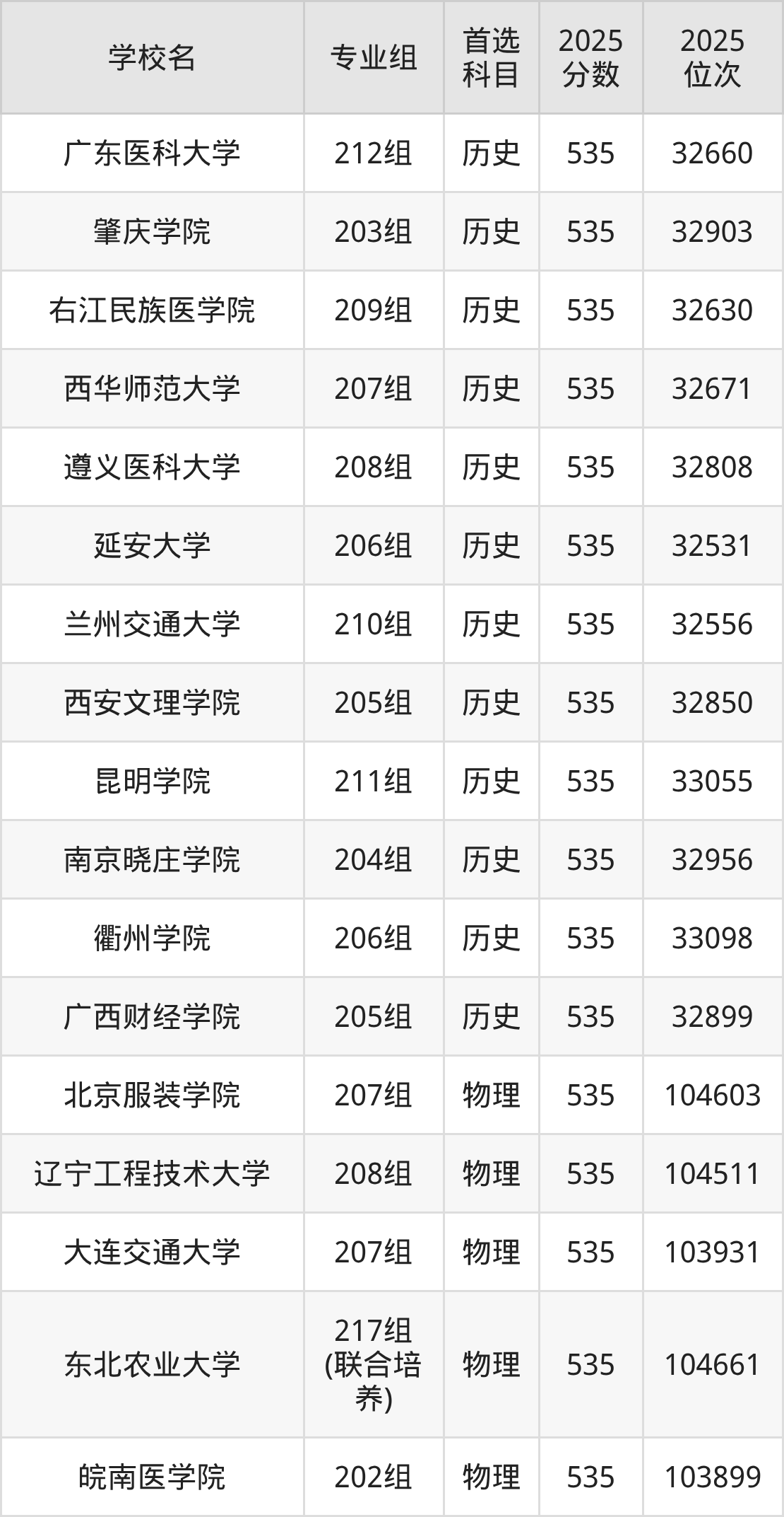 广东高考历史类535分对应的位次排名是32531名-33098名,物理类535分对应的位次排名是103391名-104710名,因此建议2026年位次排在这附近的同学考虑这些大学。