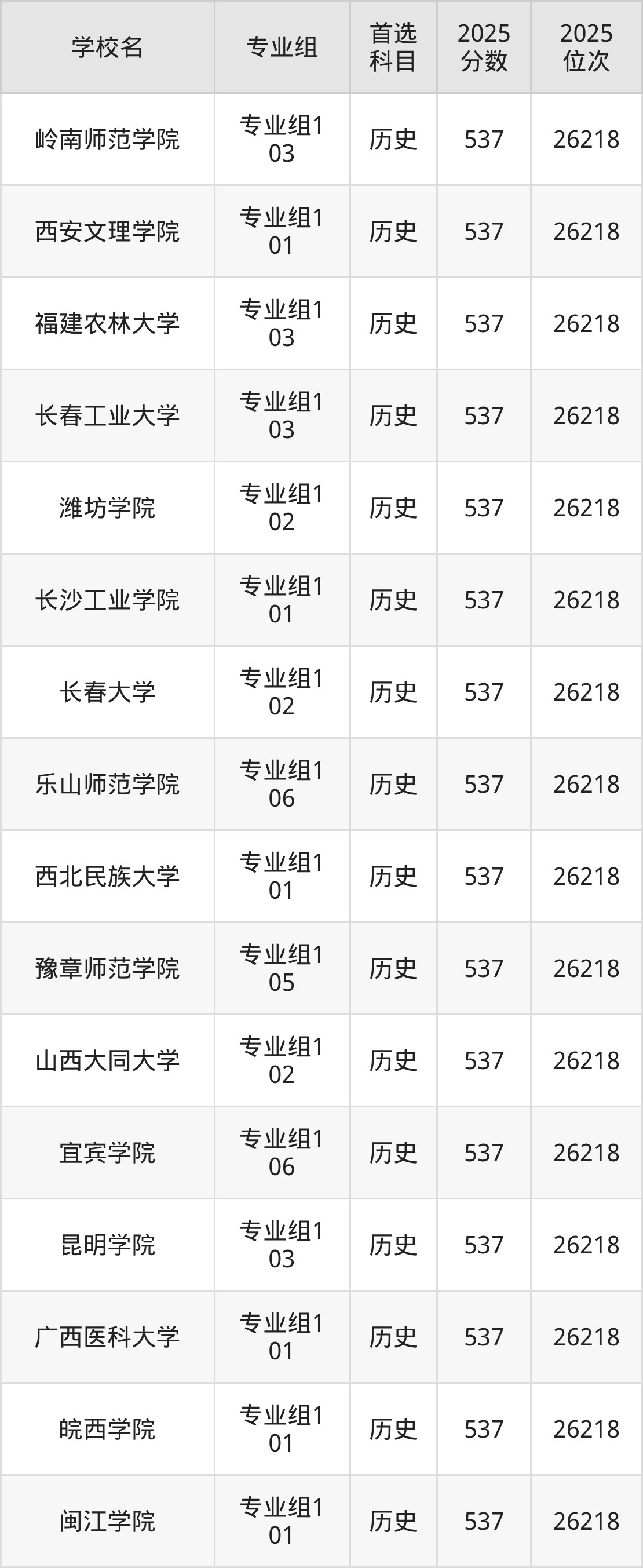 历史类535分可以冲的大学:岭南师范学院537分、西安文理学院537分、福建农林大学537分、长春工业大学537分等;较稳妥的大学:民政职业大学534分、南昌师范学院534分、东北财经大学534分、成都锦城学院534分等。