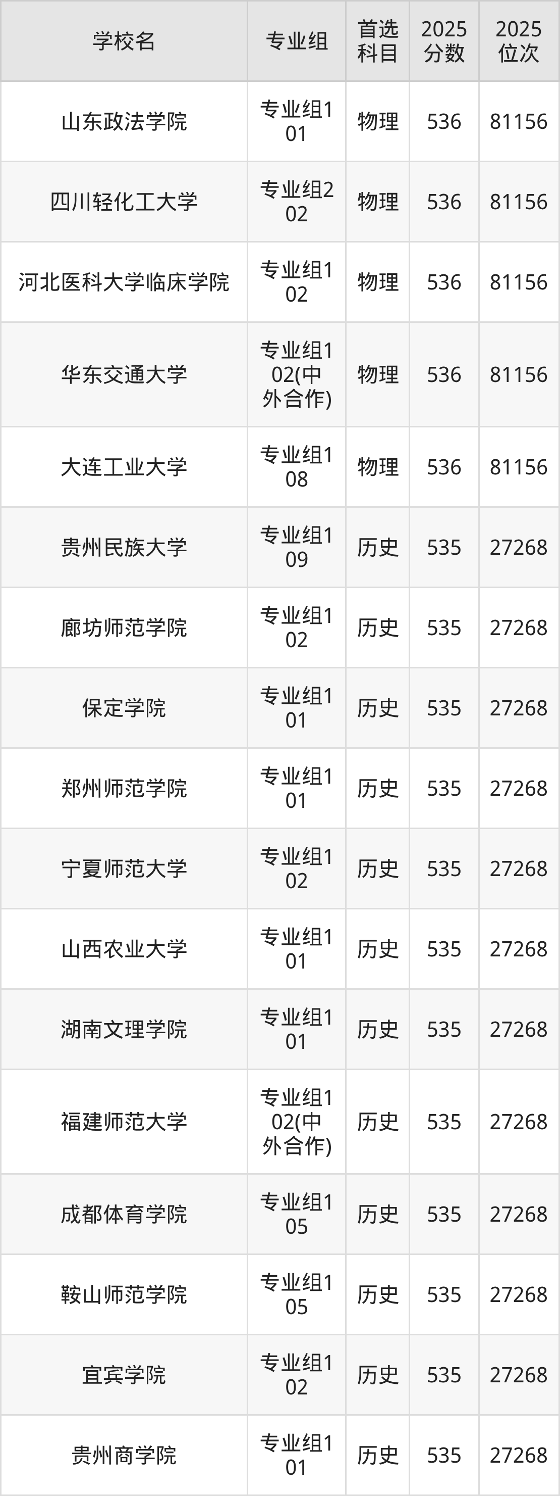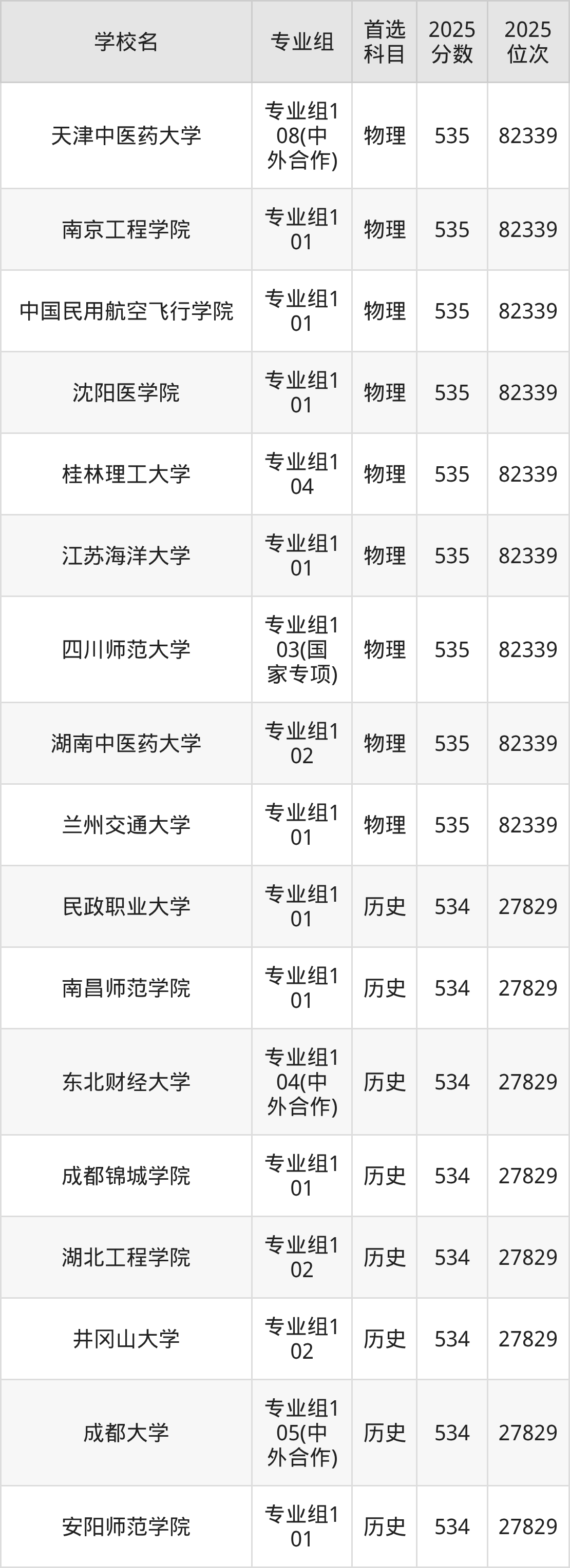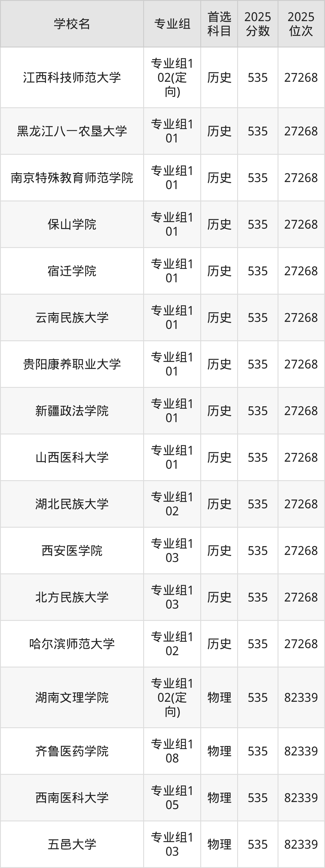 四川高考历史类535分对应的位次排名是27268名,物理类535分对应的位次排名是82339名,因此建议2026年位次排在这附近的同学考虑这些大学。