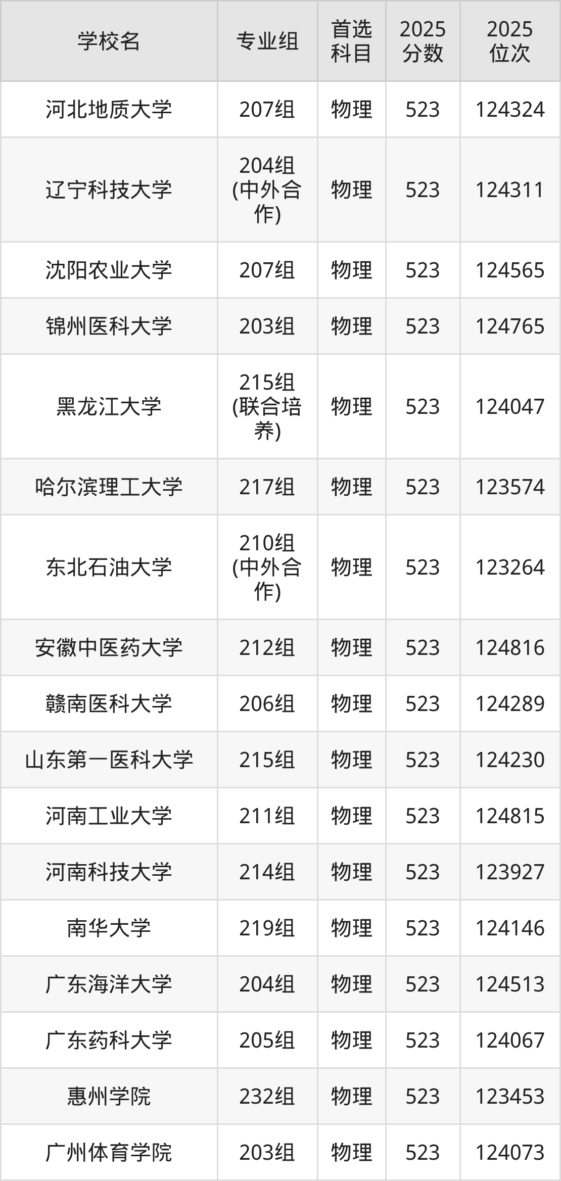 2025年在广东高考历史类录取分数线是524分的大学有山西农业大学、辽宁工程技术大学、黑龙江大学、宜春学院、韶关学院、岭南师范学院、肇庆学院、安顺学院、陕西理工大学、上海杉达学院等。物理类录取分数线是524分的大学有天津体育学院、哈尔滨医科大学、安徽农业大学、广东海洋大学、广东医科大学、惠州学院、肇庆学院、桂林理工大学、右江民族医学院、西华师范大学等。