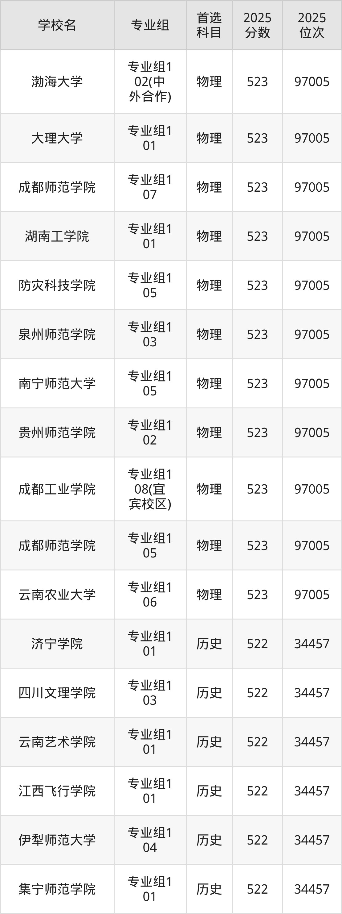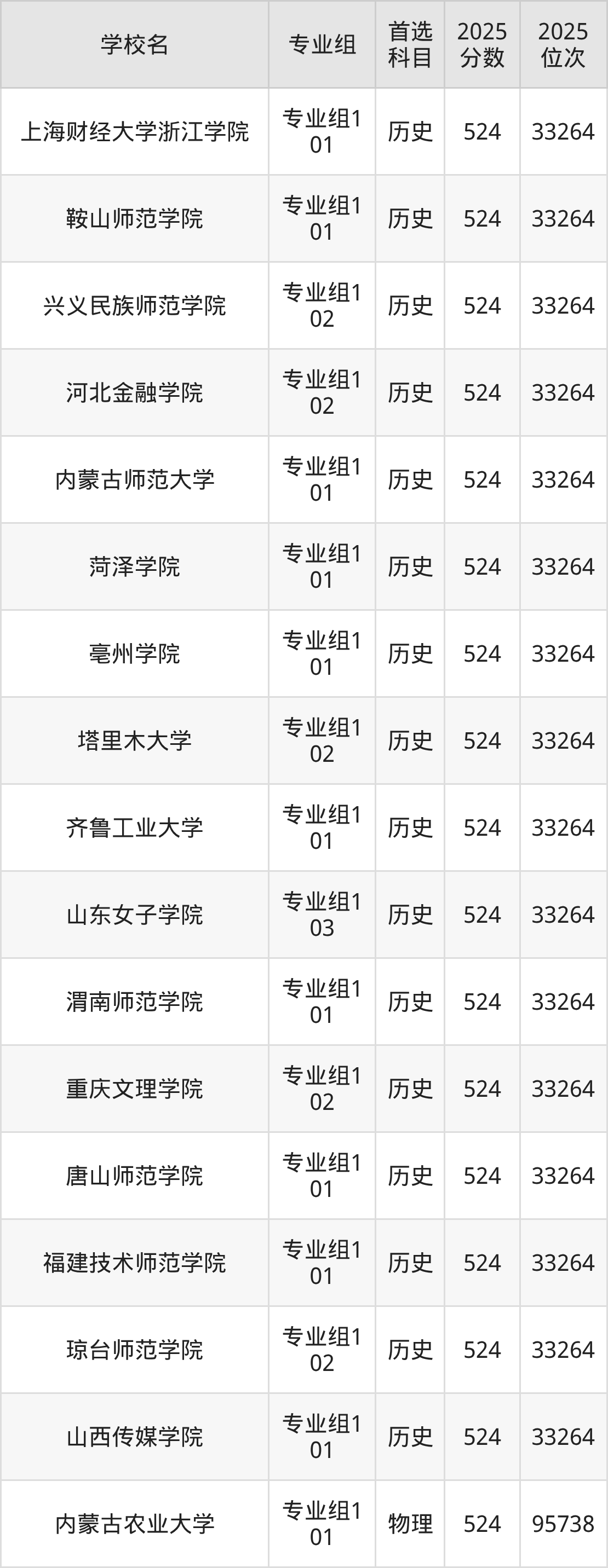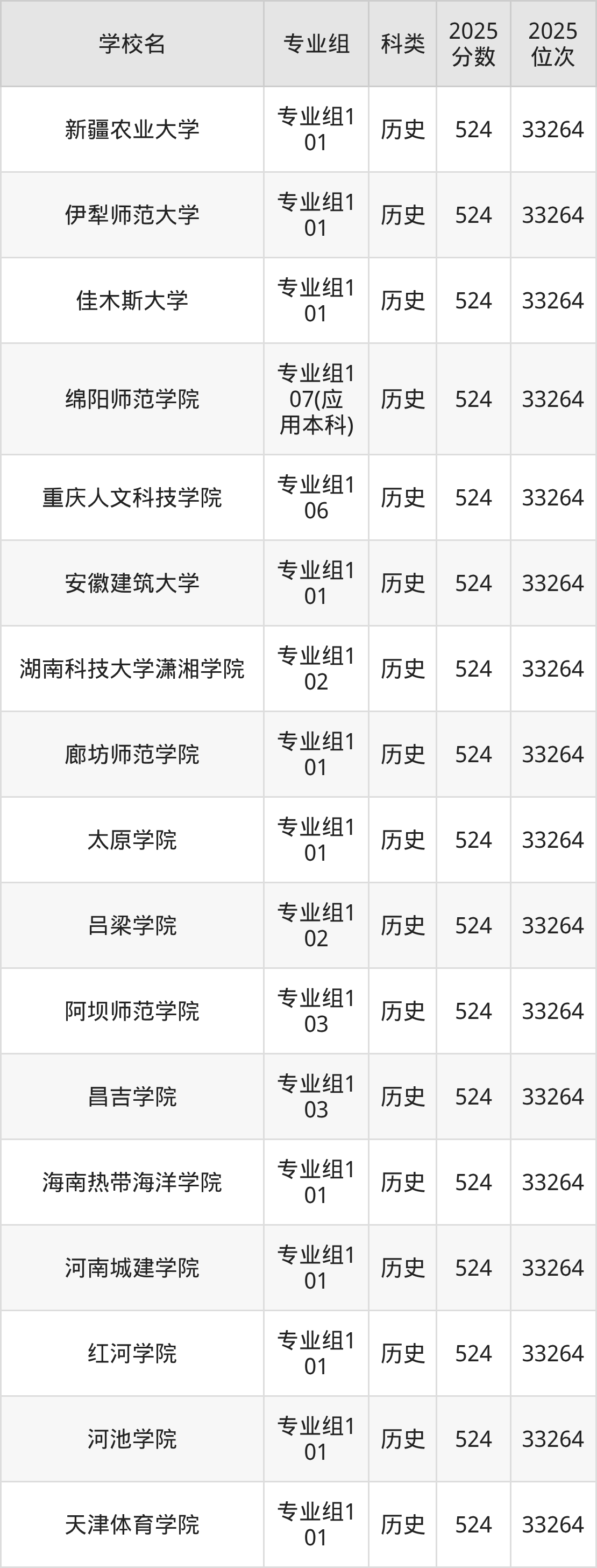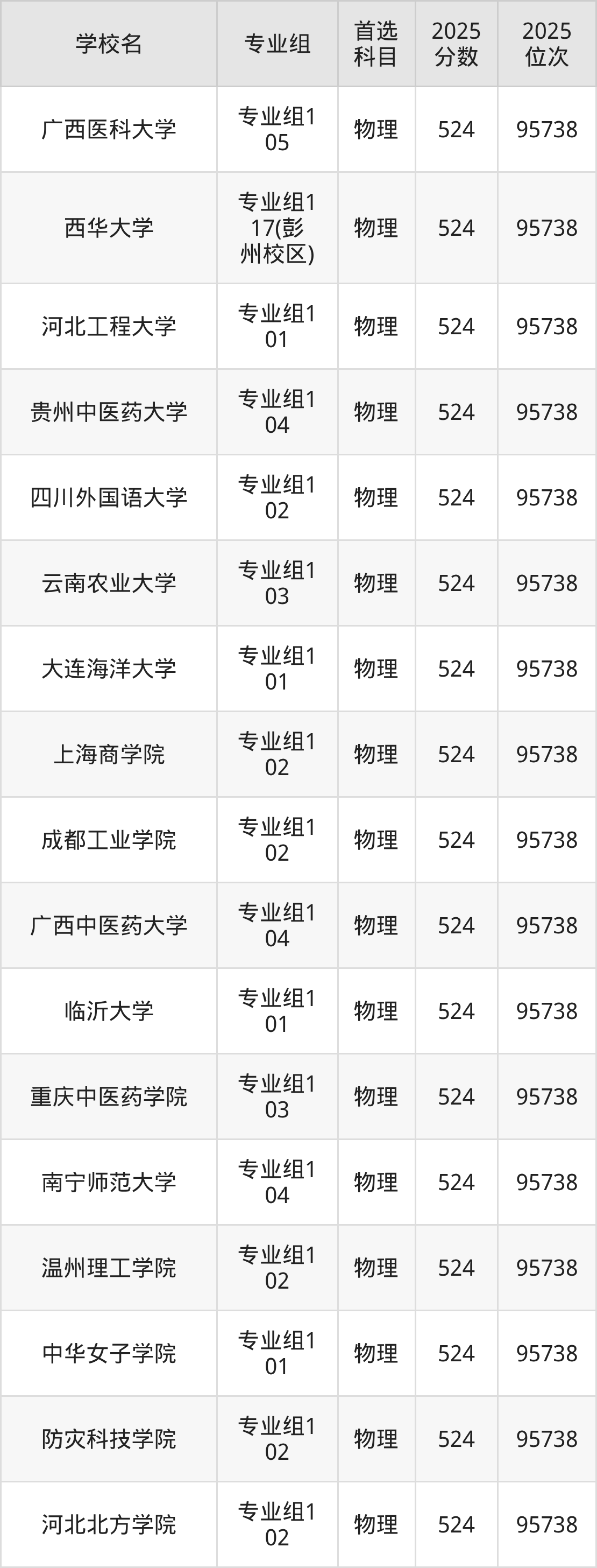 四川高考历史类524分对应的位次排名是33264名,物理类524分对应的位次排名是95738名,因此建议2026年位次排在这附近的同学考虑这些大学。