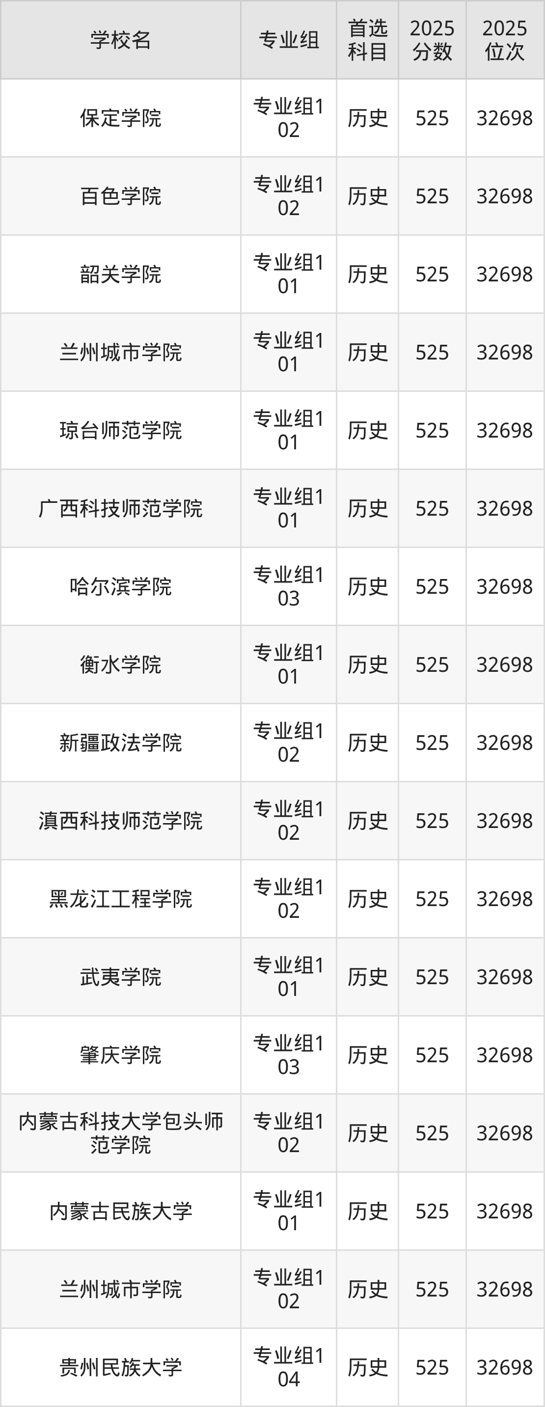 历史类524分可以冲的大学:河西学院526分、商丘师范学院526分、甘肃民族师范学院526分、山东女子学院526分等;较稳妥的大学:滇西应用技术大学523分、长春工业大学523分、上海财经大学浙江学院523分、山东青年政治学院523分等。