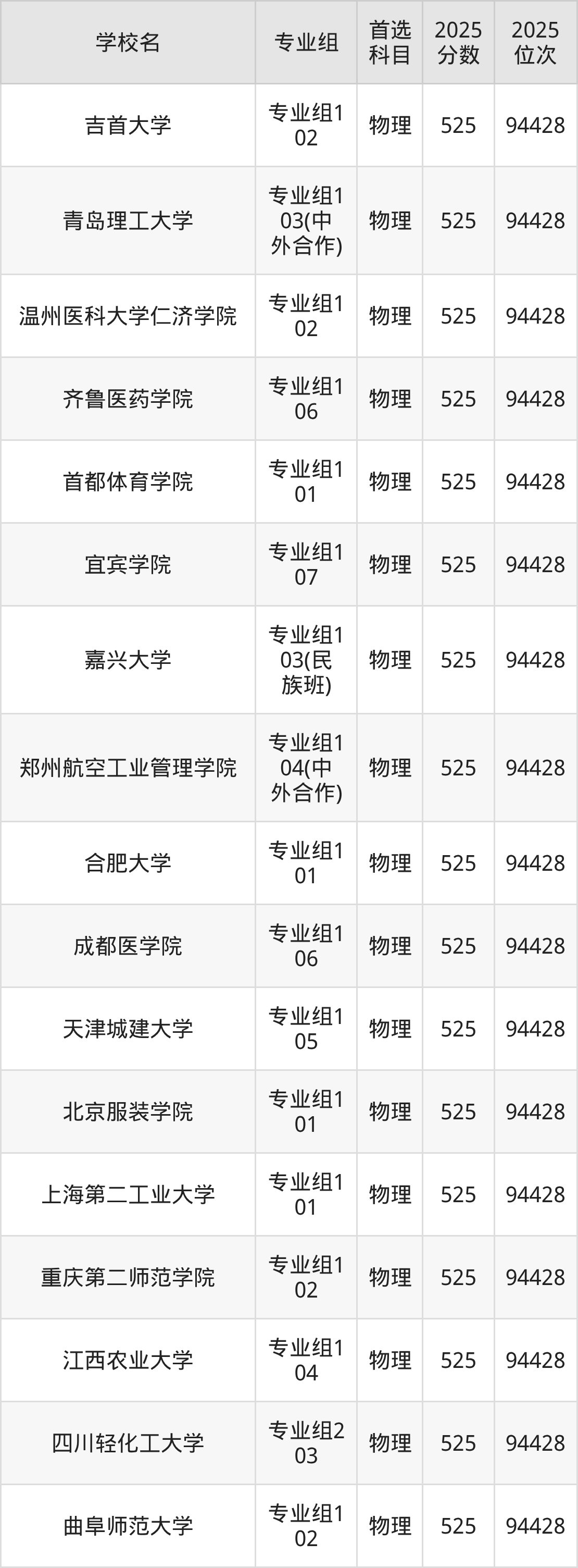 物理类524分可以冲的大学:河北工程大学526分、华北理工大学526分、太原科技大学526分、安徽医科大学526分等;较稳妥的大学:河北地质大学523分、辽宁科技大学523分、沈阳农业大学523分、锦州医科大学523分等。