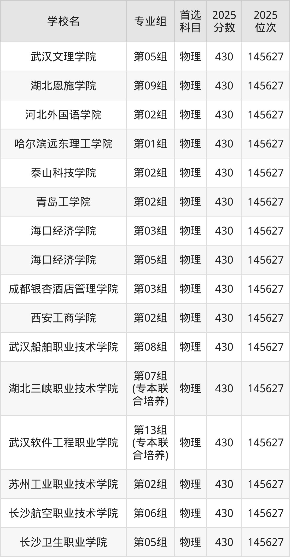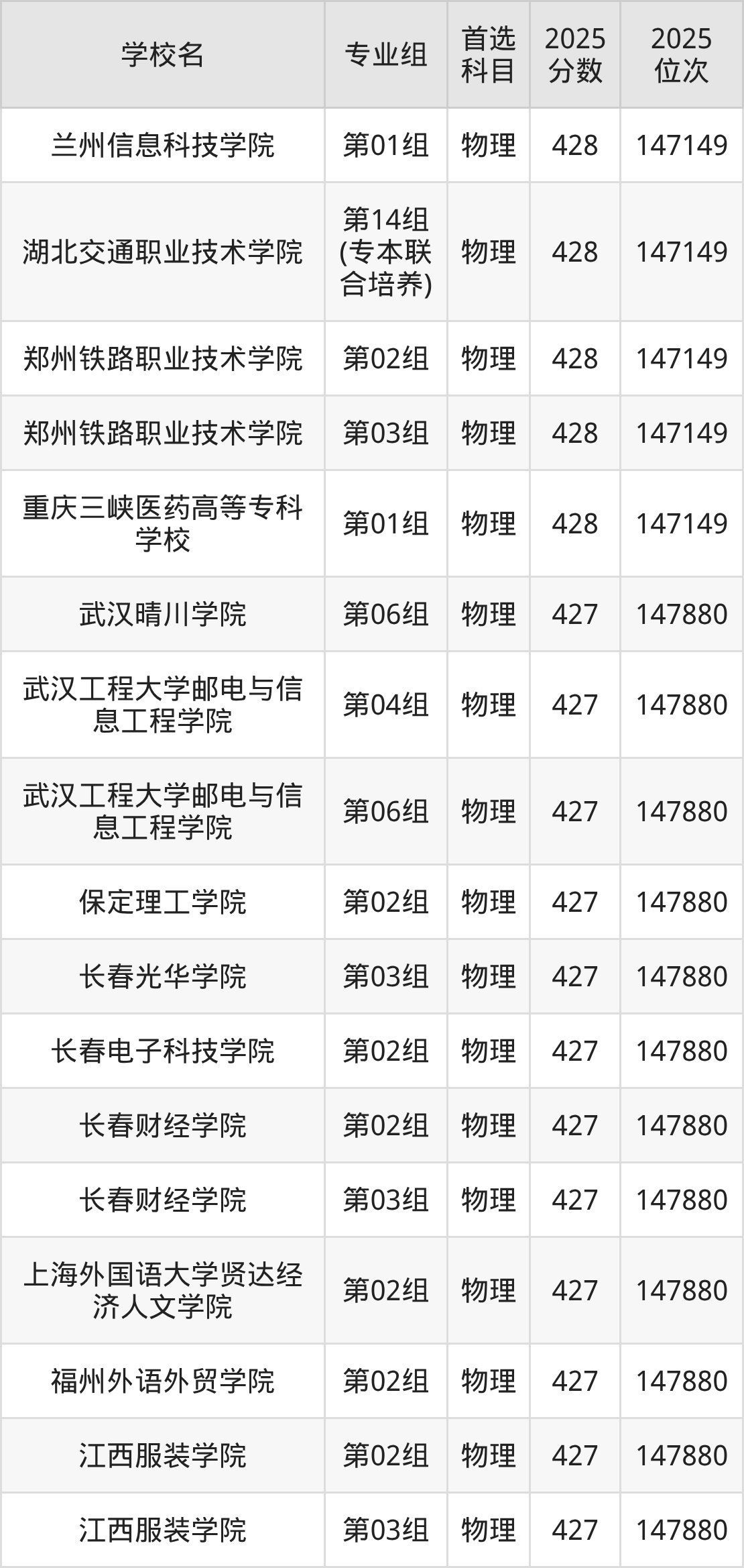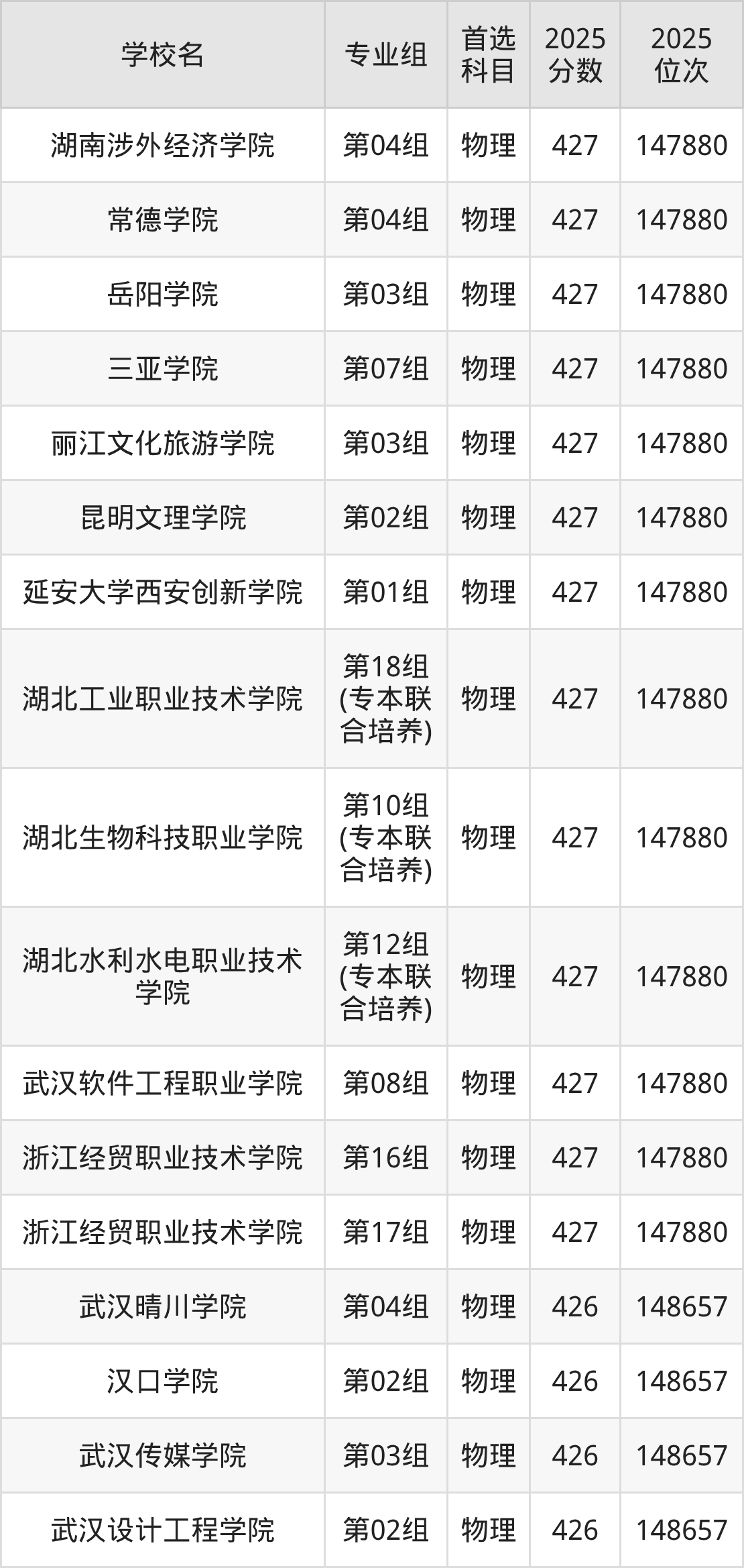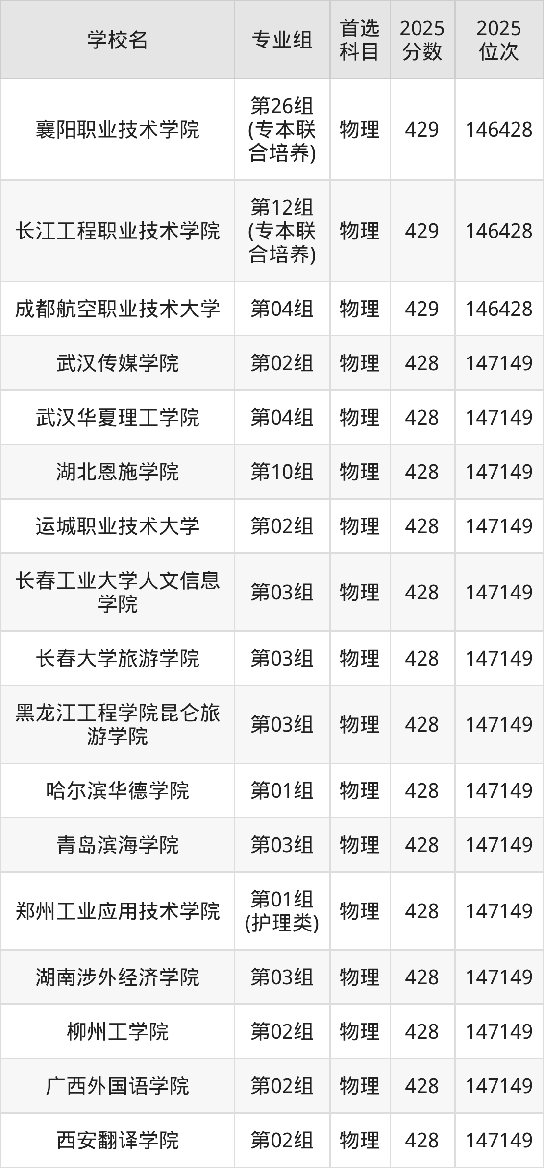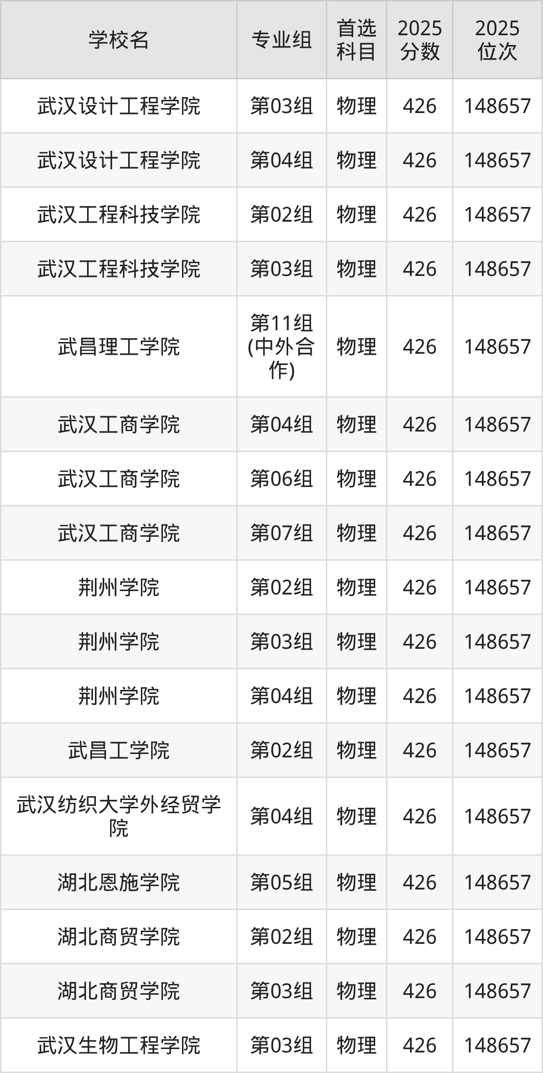 湖北物理类428分对应的位次排名是147149名,因此建议2026年位次排在这附近的考生考虑这些大学。