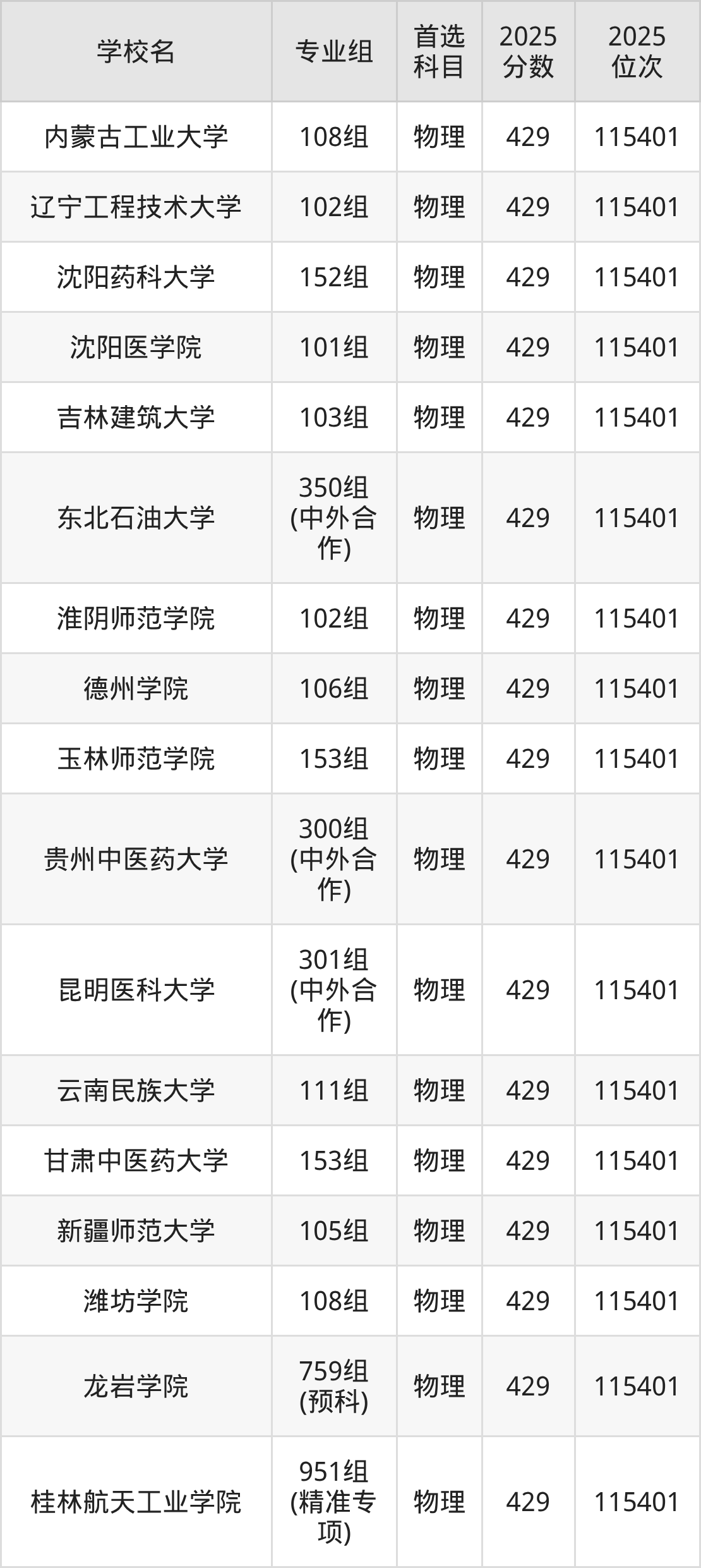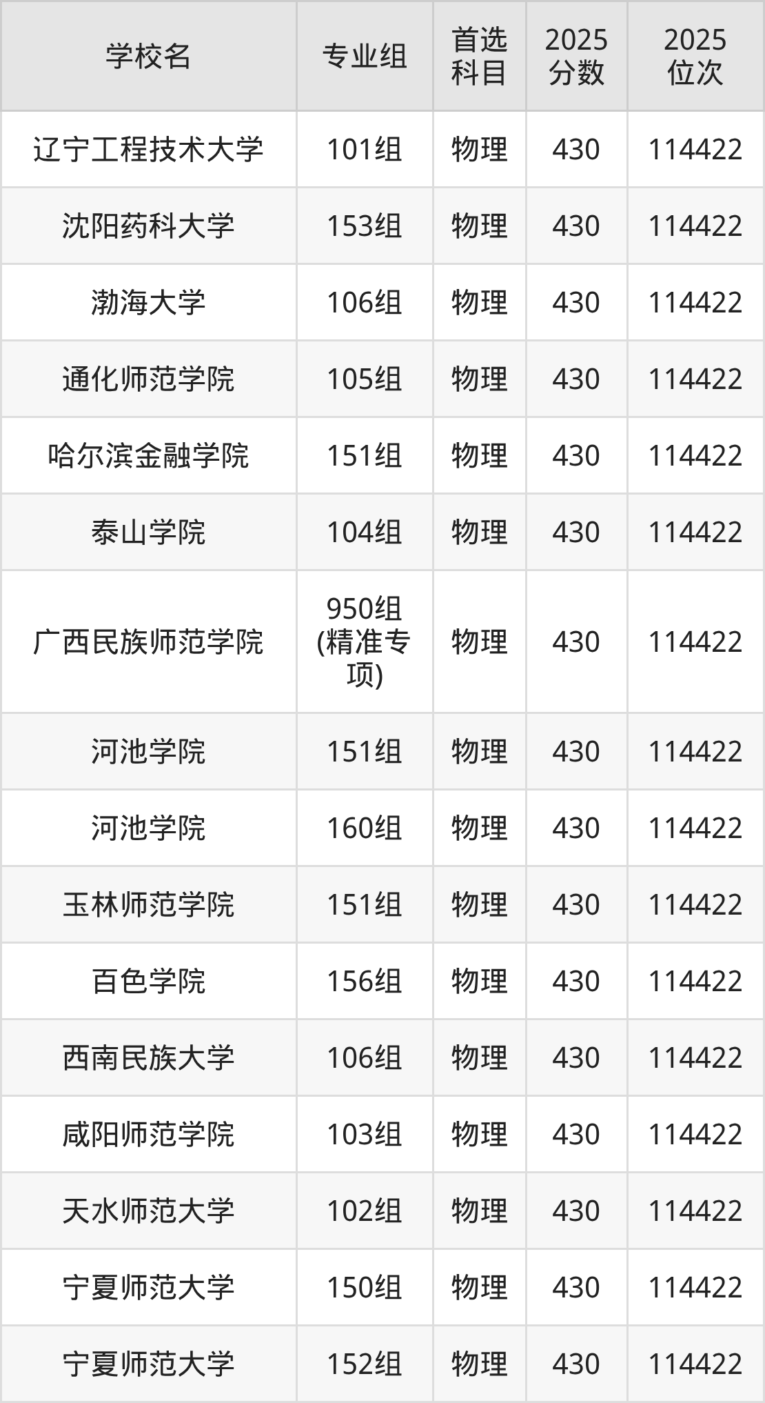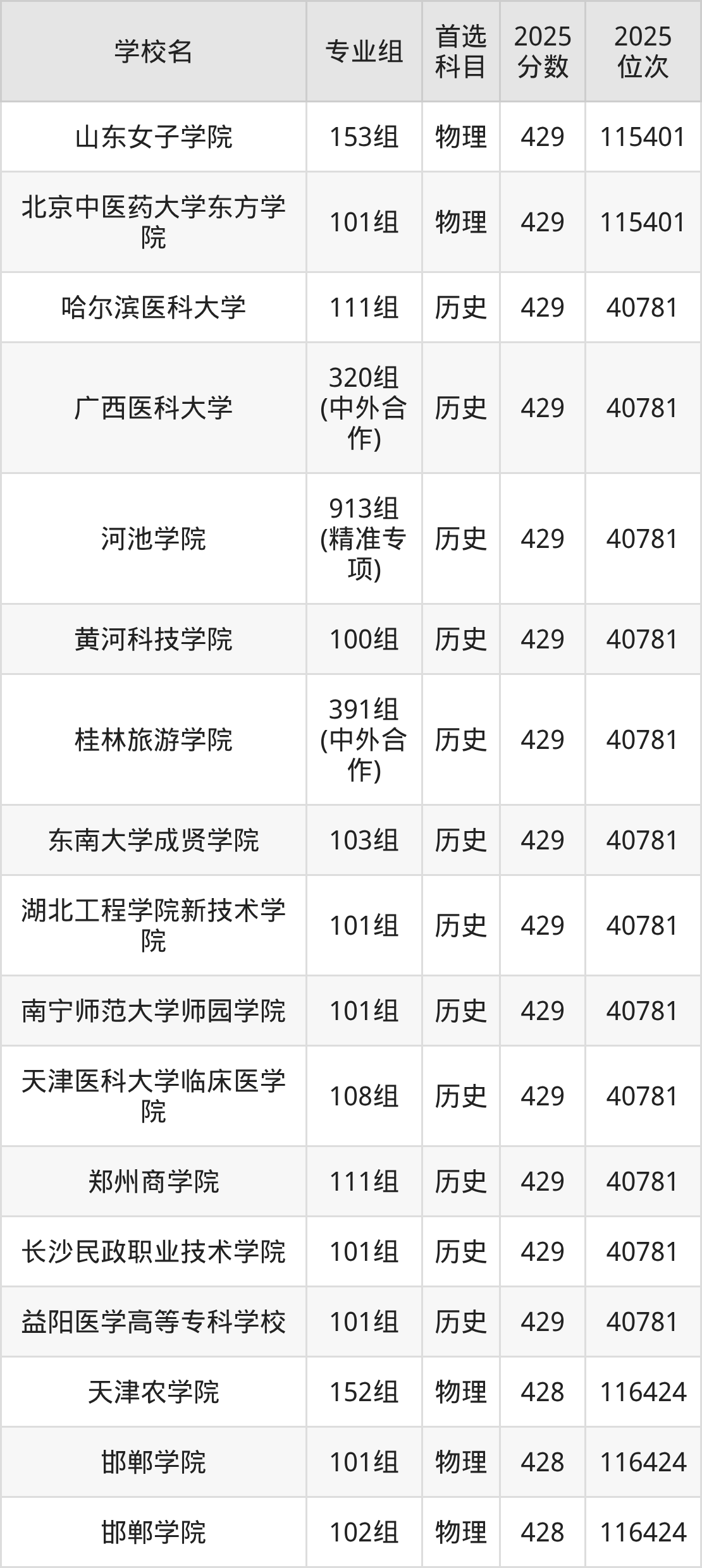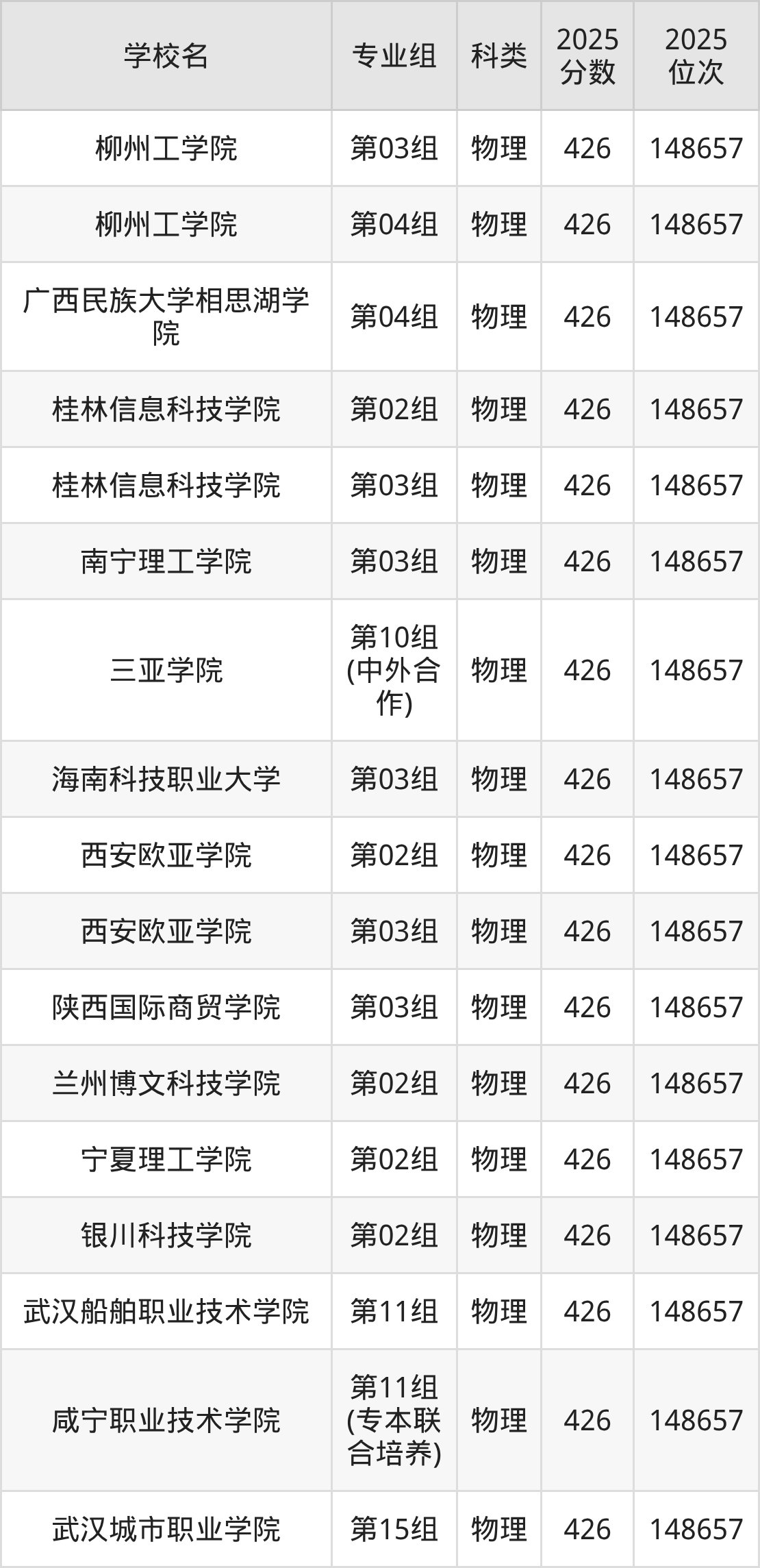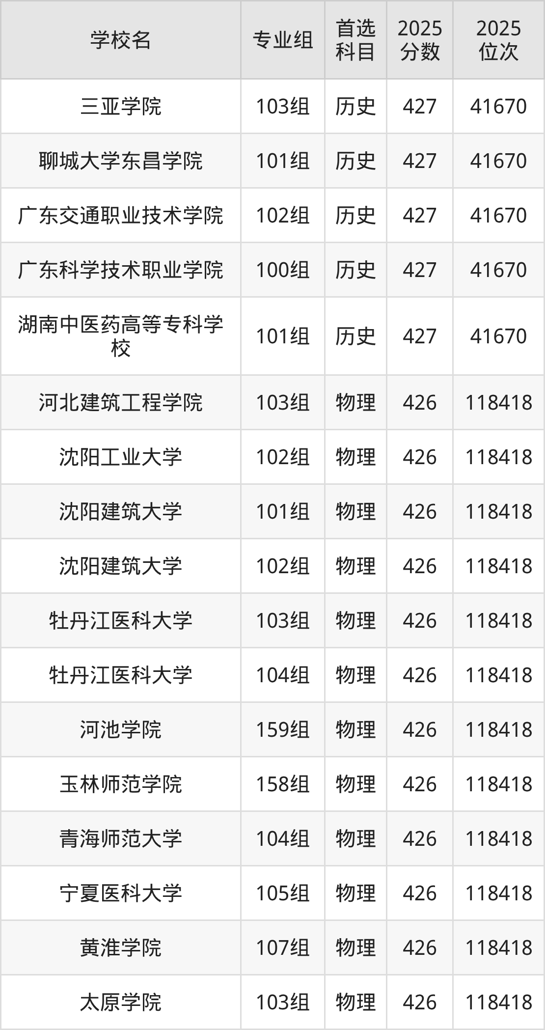 广西高考物理类428分对应的位次排名是116424名,历史类428分对应的位次排名是41254名,因此建议2026年位次排在这附近的同学考虑这些大学。