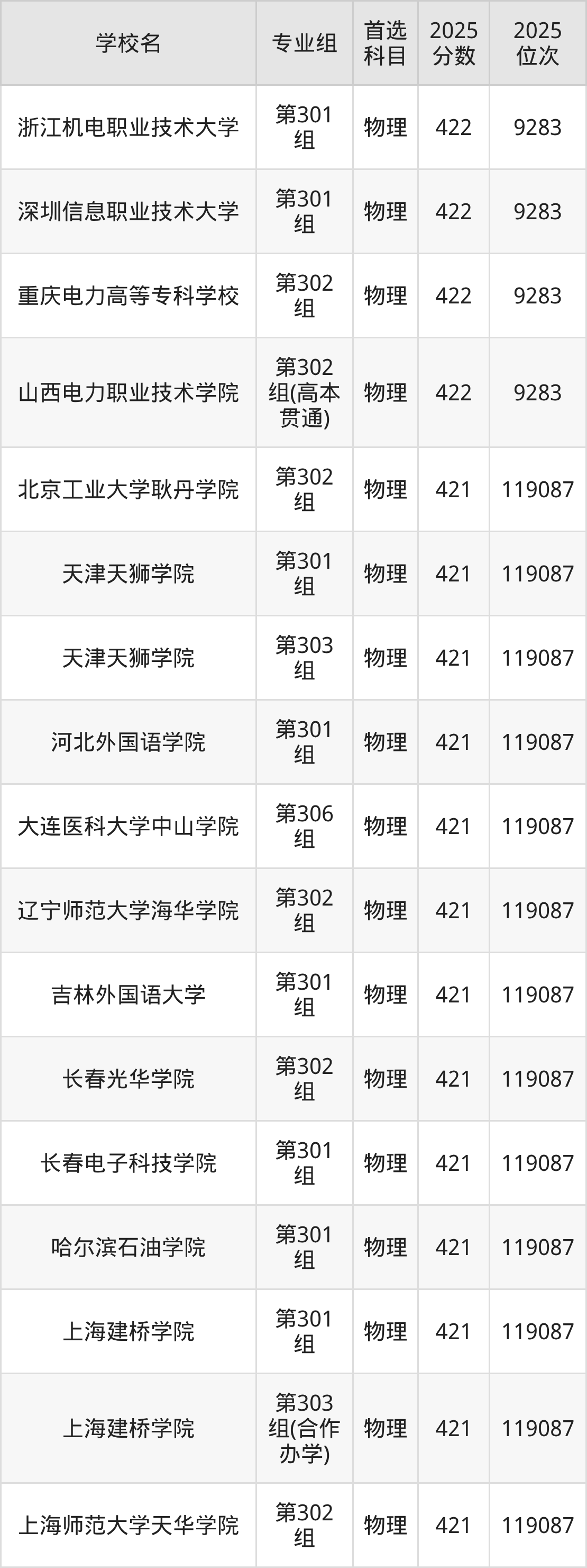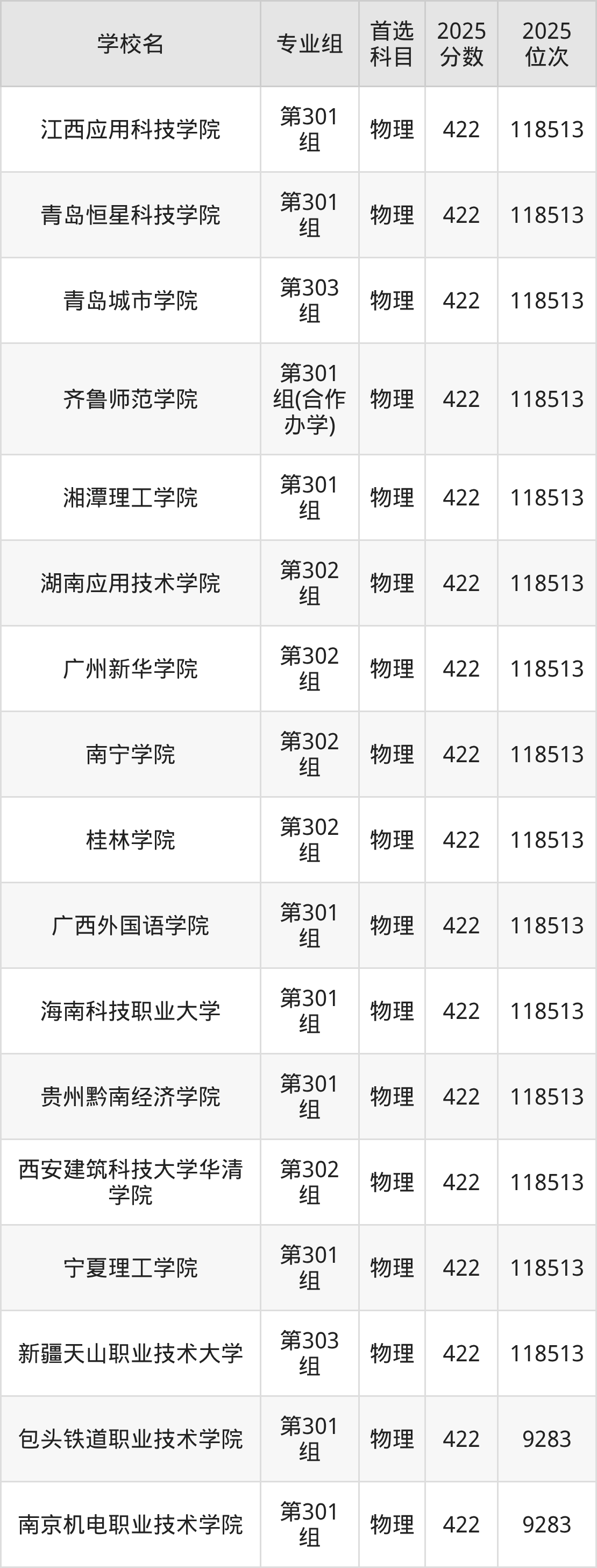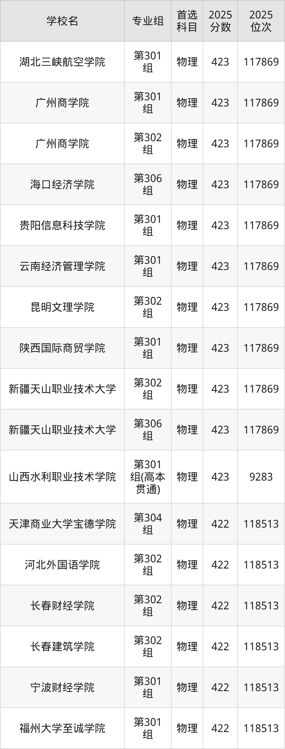山西物理类422分对应的位次排名是9283名-118513名,因此建议2026年位次排在这附近的考生考虑这些大学。
