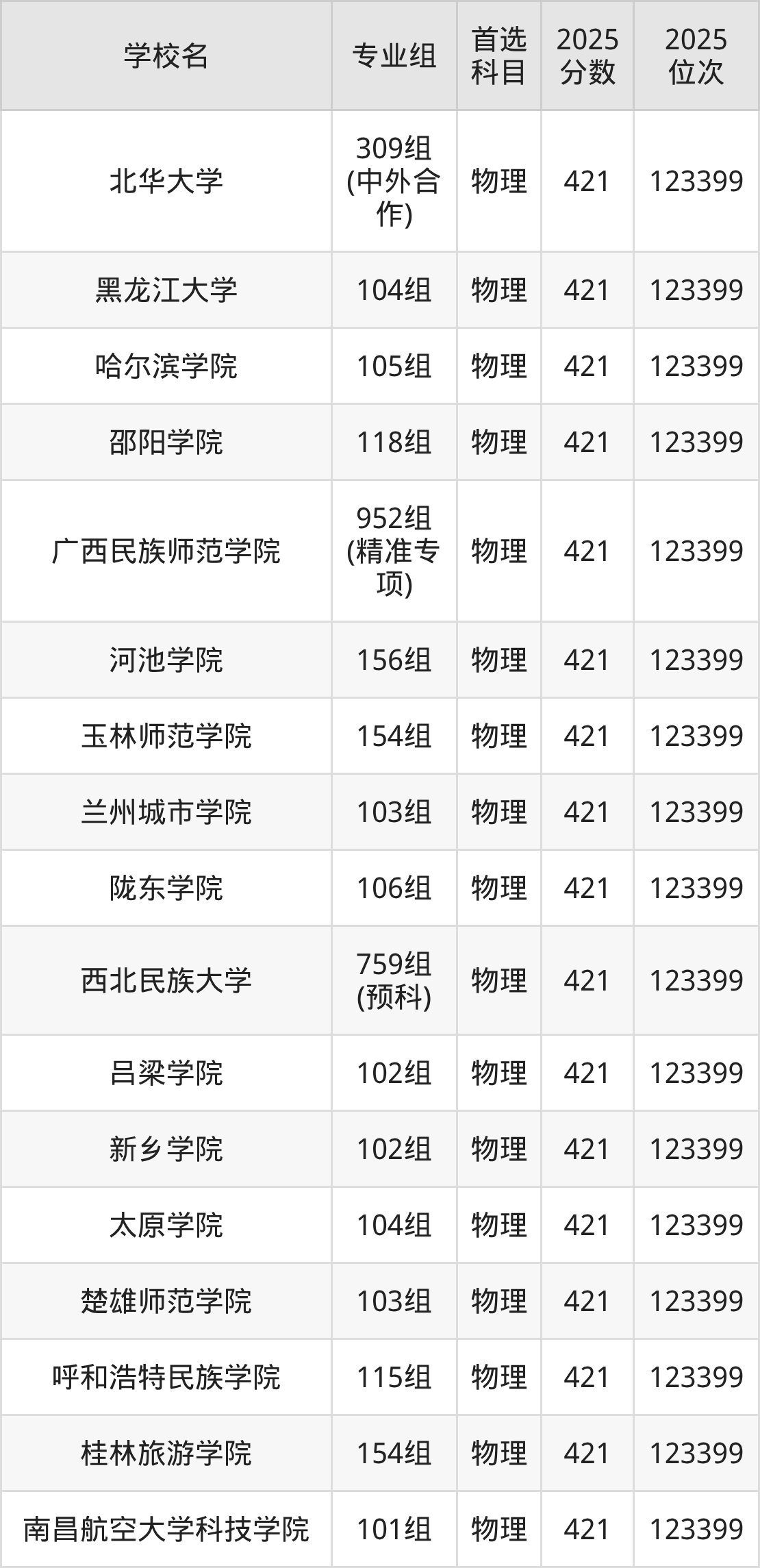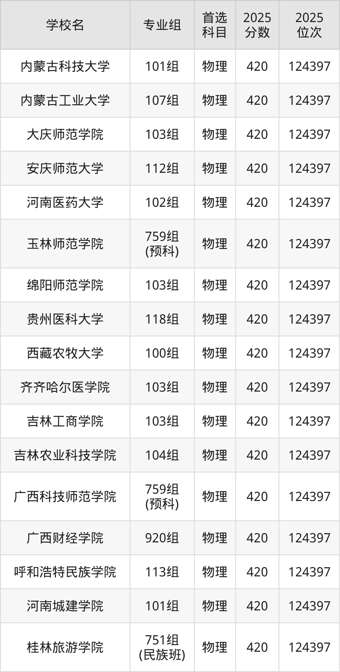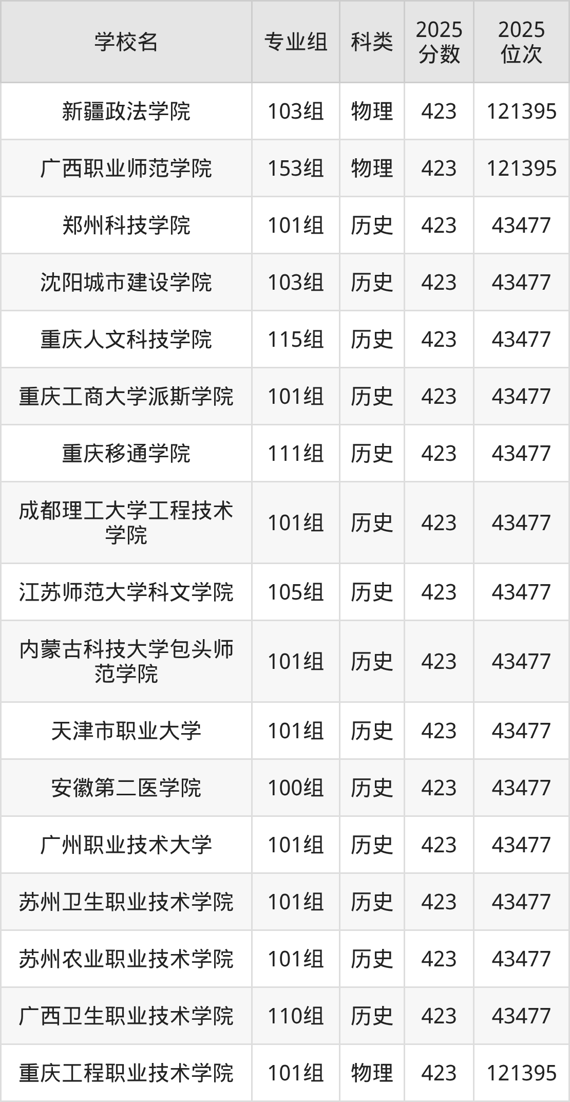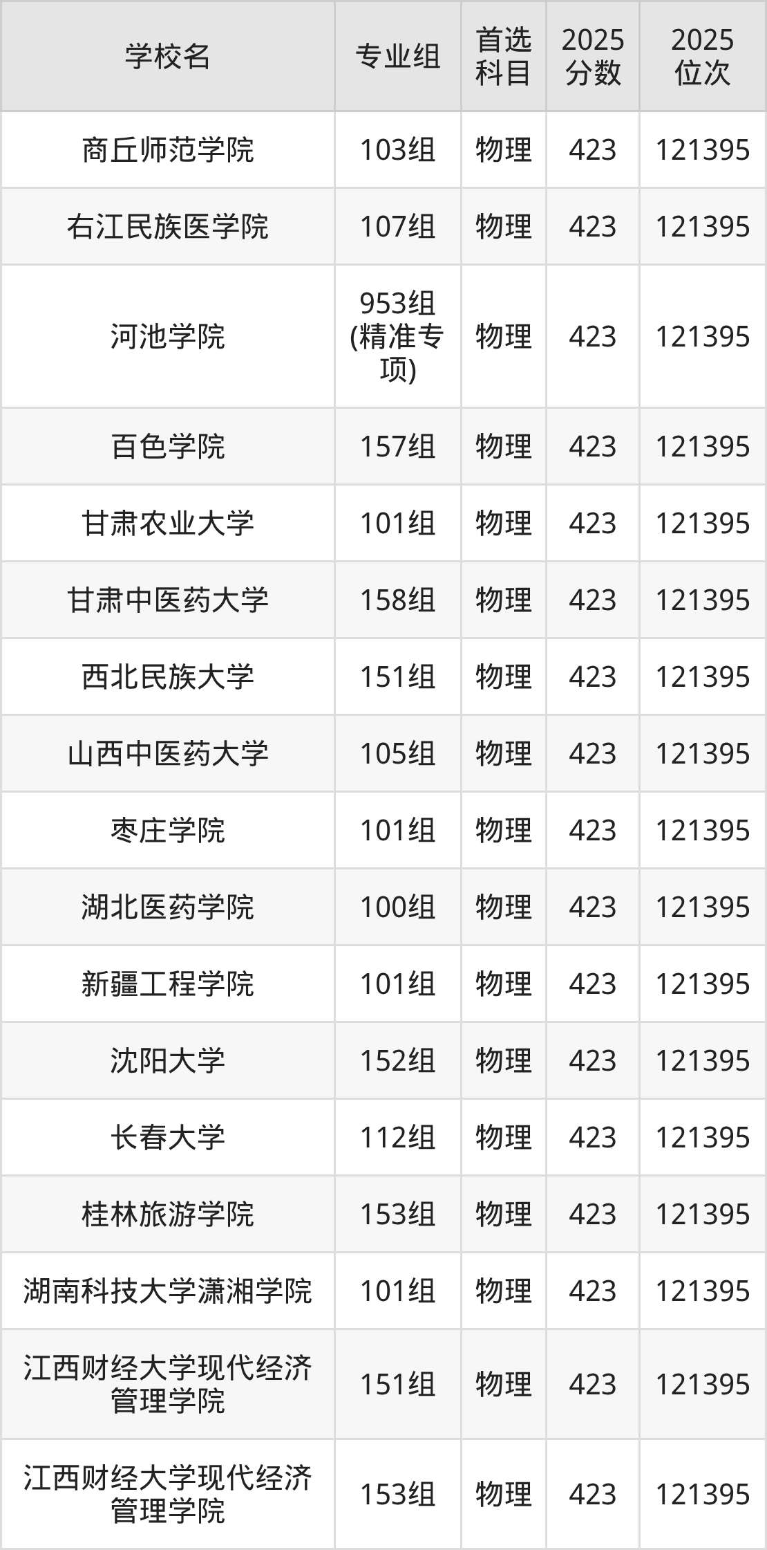 广西高考物理类422分对应的位次排名是122380名,历史类422分对应的位次排名是43977名,因此建议2026年位次排在这附近的同学考虑这些大学。