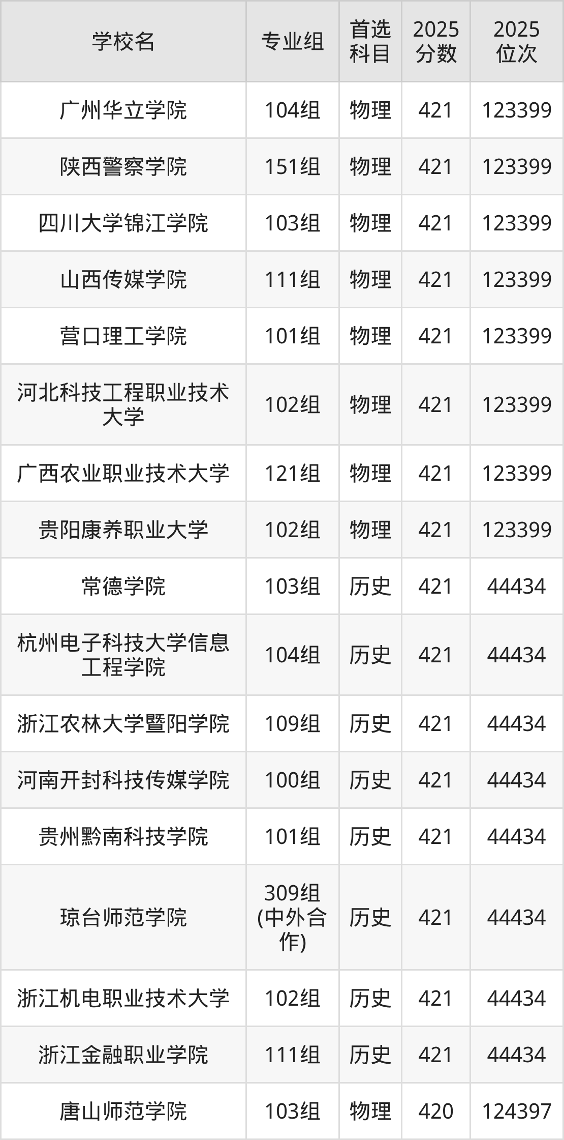 2025年在广西高考物理类录取分数线是422分的大学有山西大同大学、晋中学院、内蒙古医科大学、沈阳建筑大学、牡丹江医科大学、哈尔滨商业大学、河南科技大学、河南师范大学、广西艺术学院、广西民族大学等。历史类录取分数线是422分的大学有广西民族大学相思湖学院、湖南铁道职业技术学院、珠海城市职业技术学院。