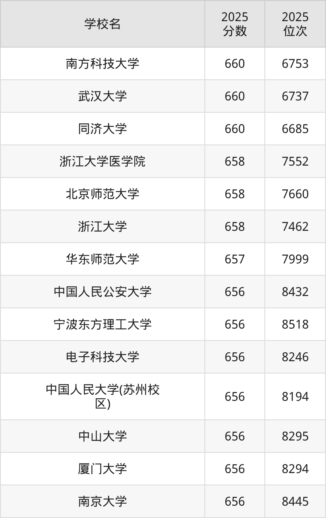 658分可以冲一冲的大学:南方科技大学660分、武汉大学660分、同济大学660分;