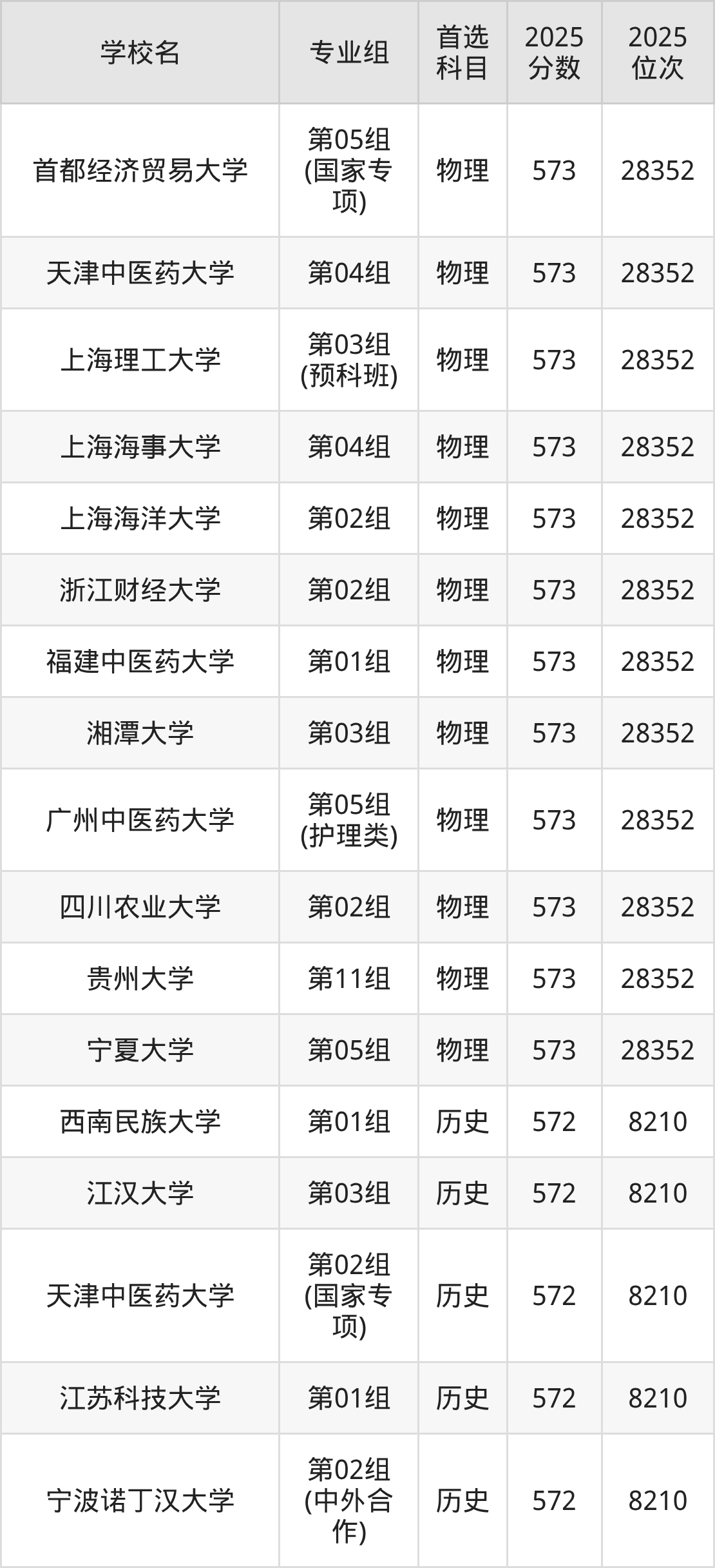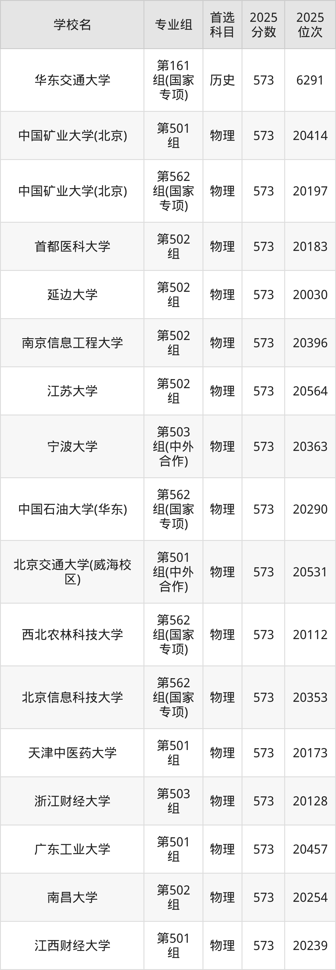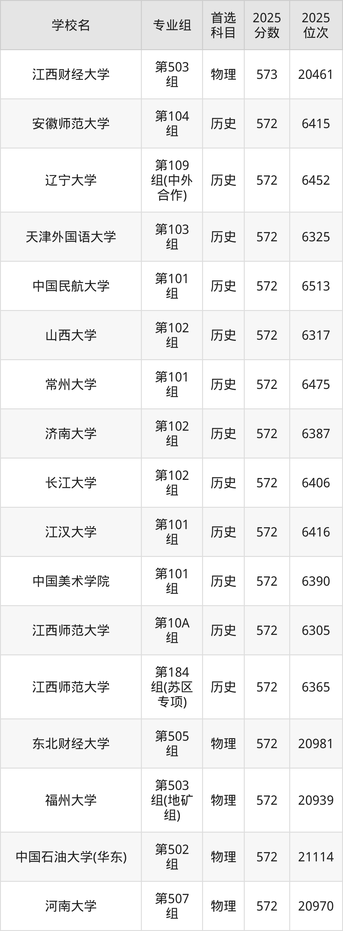 江西高考历史类571分对应的位次排名是6537名-6720名,物理类571分对应的位次排名是21130名-21640名,因此建议2026年位次排在这附近的同学考虑这些大学。