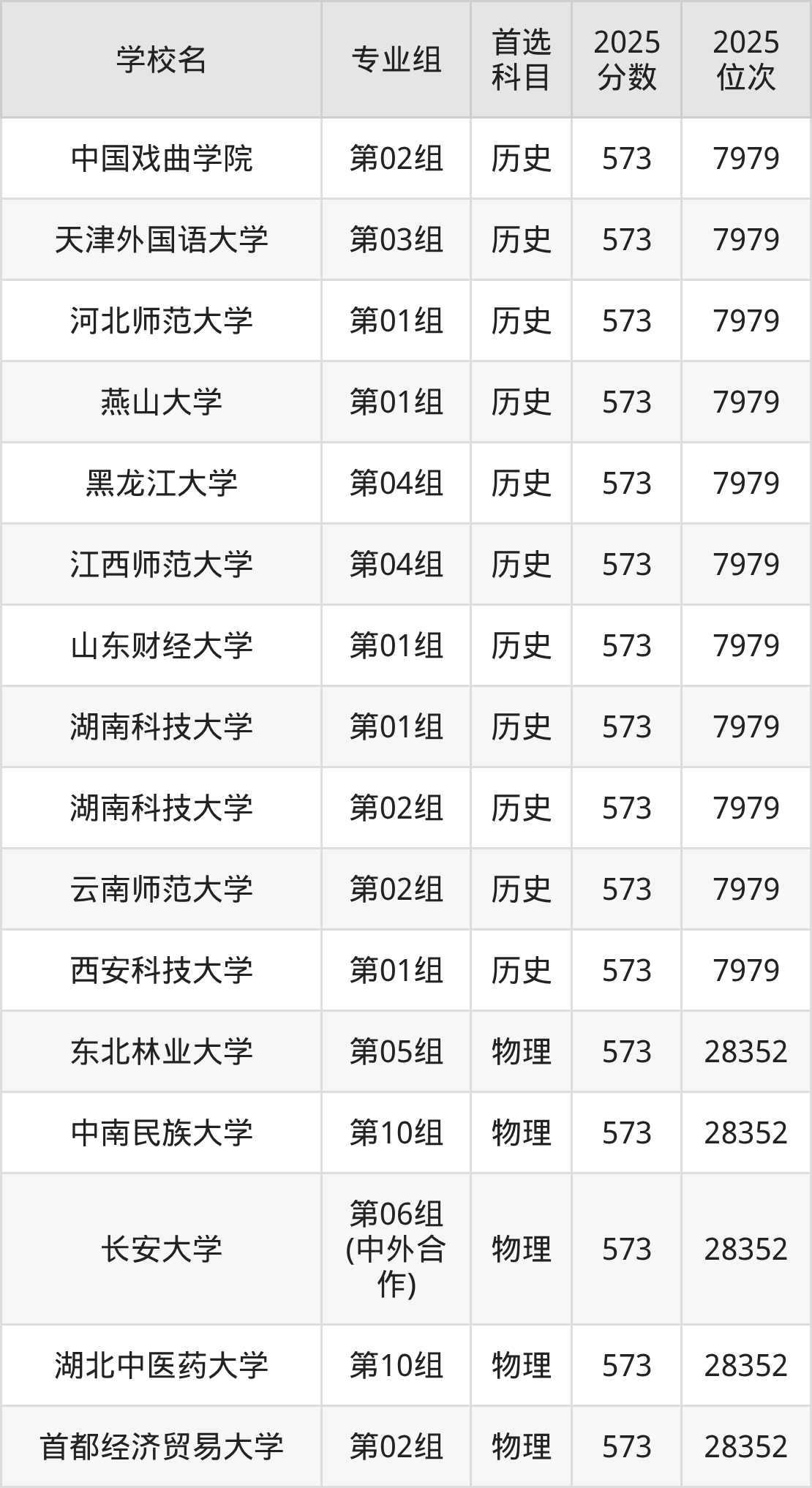 历史类571分可以冲的大学:中国戏曲学院573分、天津外国语大学573分、河北师范大学573分、燕山大学573分等;较稳妥的大学:西南民族大学570分、河北师范大学570分、燕山大学570分、华东交通大学570分等。