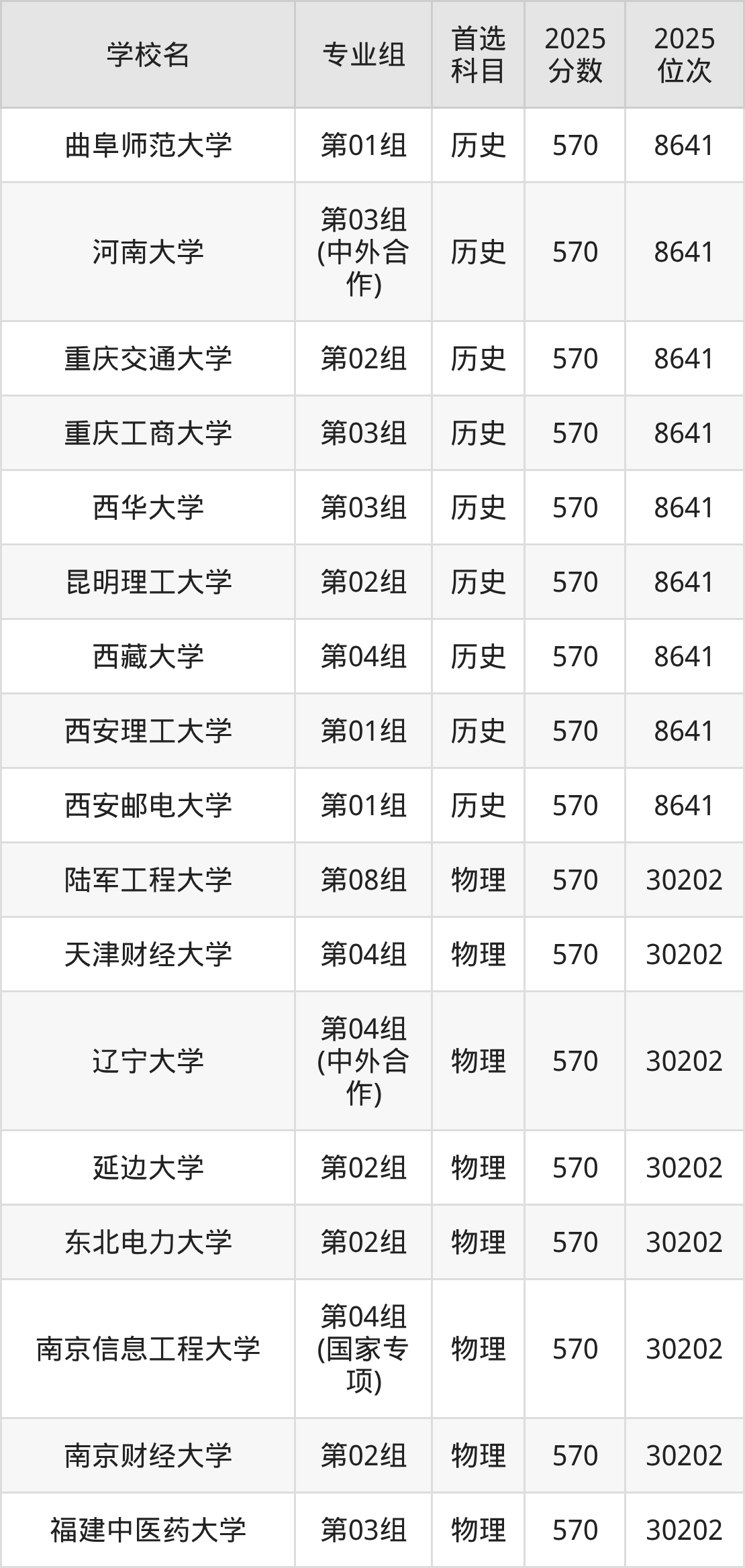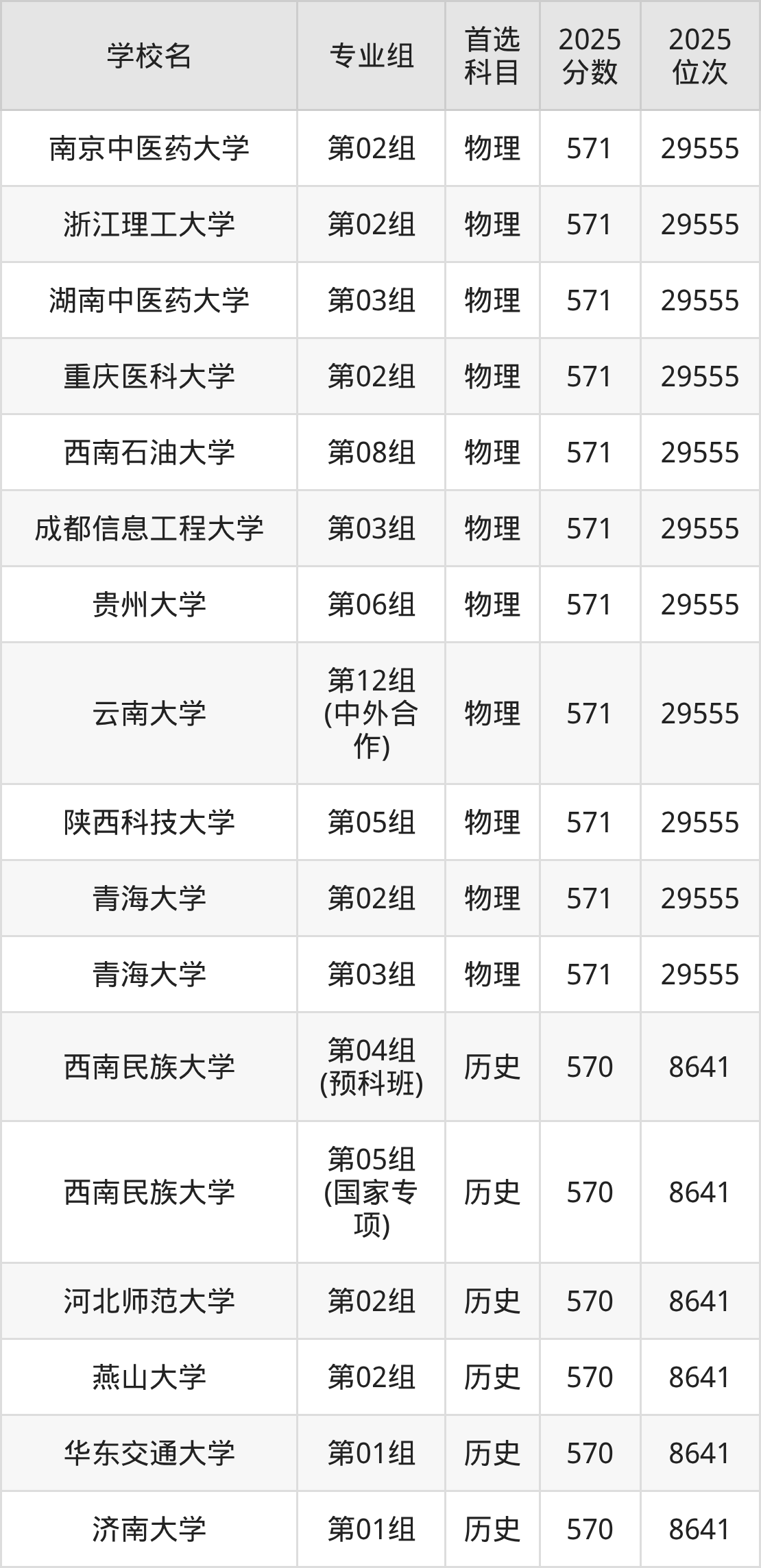 下面老师将以上文整理的其中两个省份为例,为大家具体展示571分左右能上的本科大学名单。