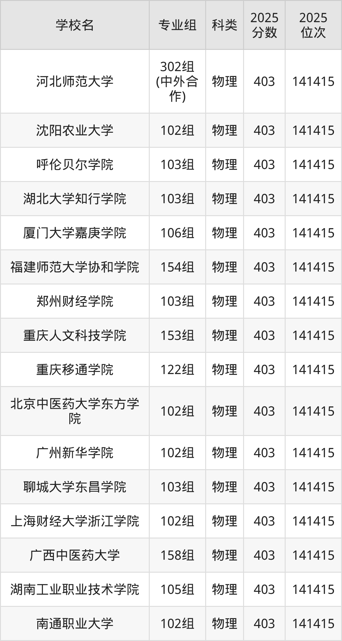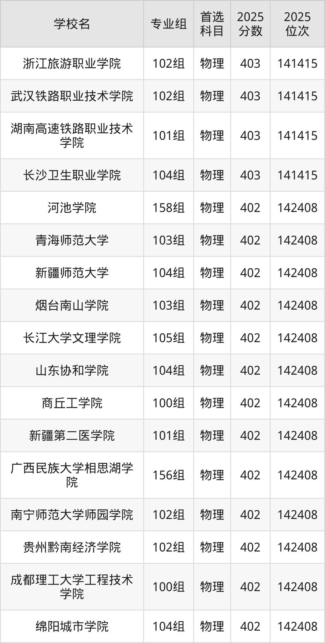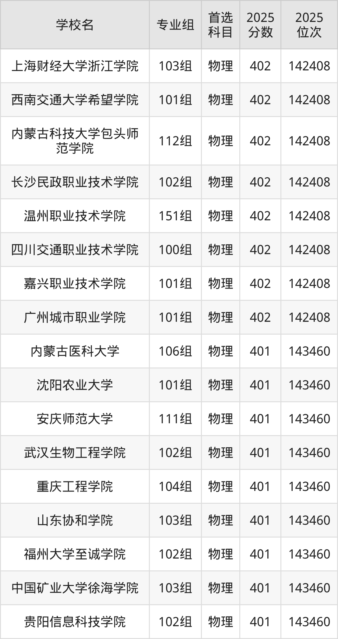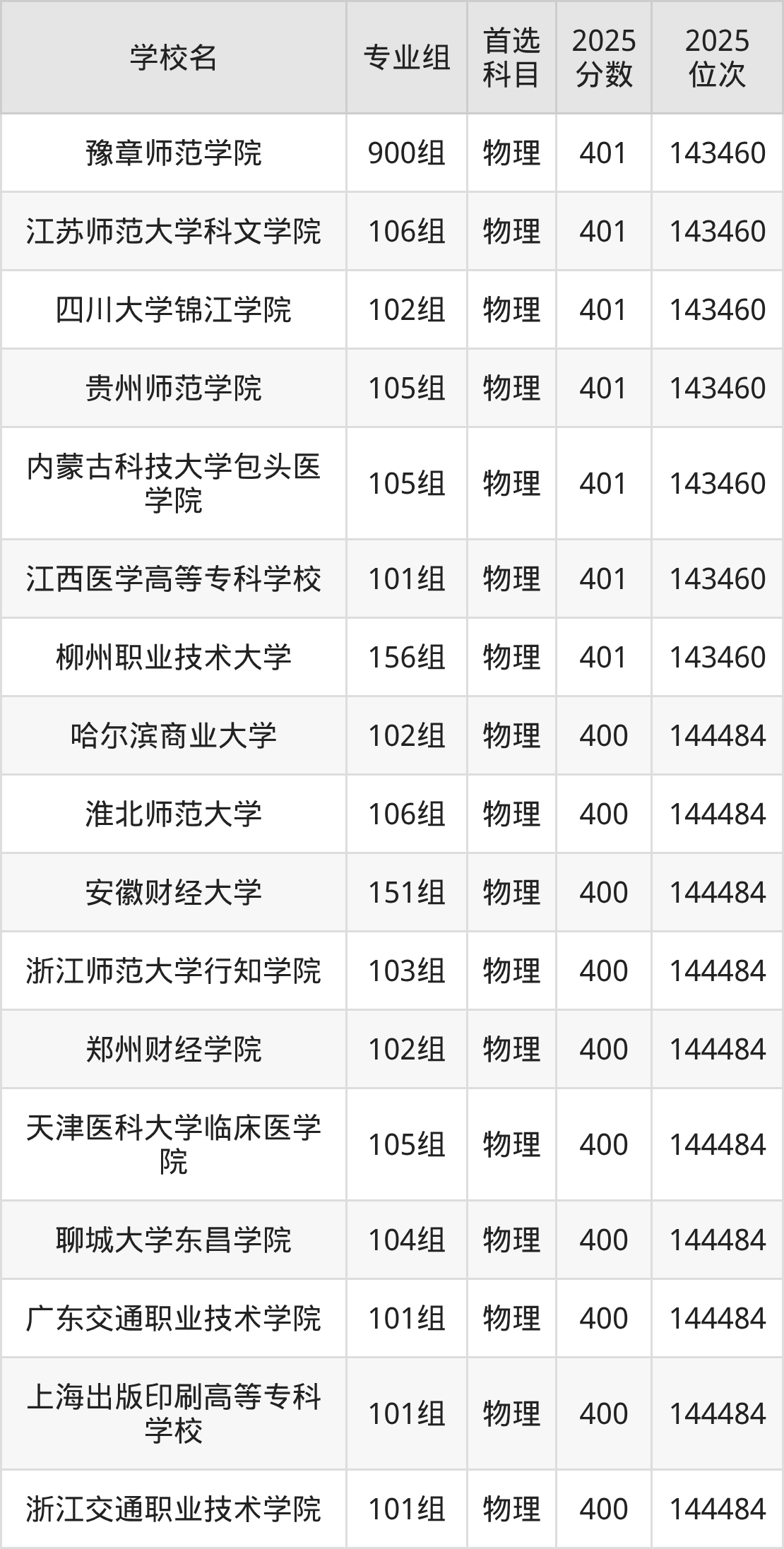 广西物理类401分对应的位次排名是143460名,因此建议2026年位次排在这附近的考生考虑这些大学。