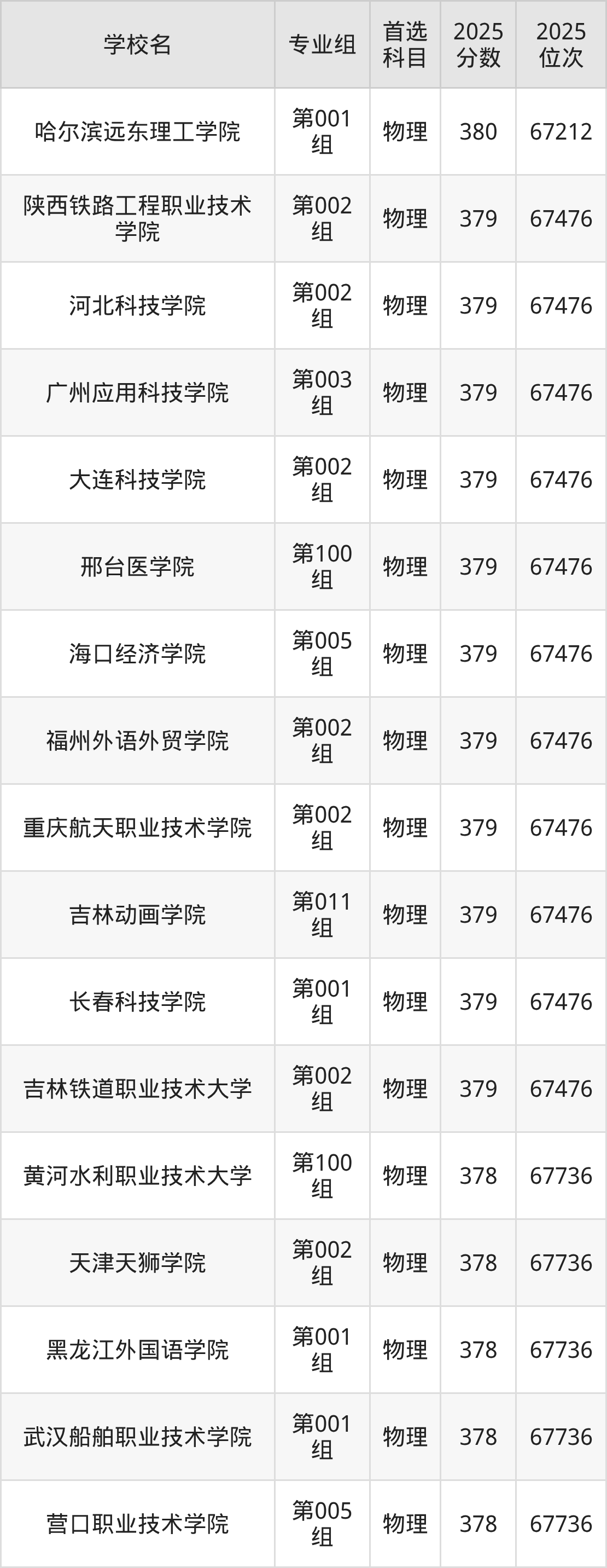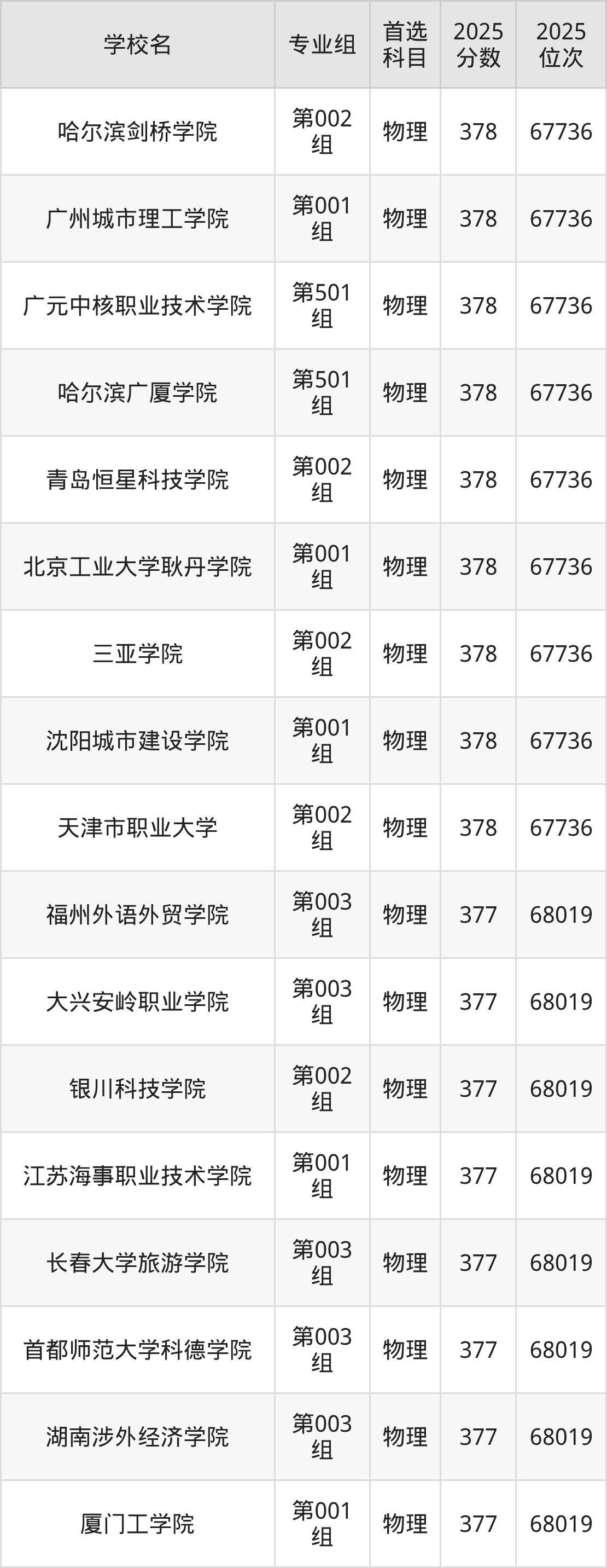 内蒙古物理类378分对应的位次排名是67736名,因此建议2026年位次排在这附近的考生考虑这些大学。
