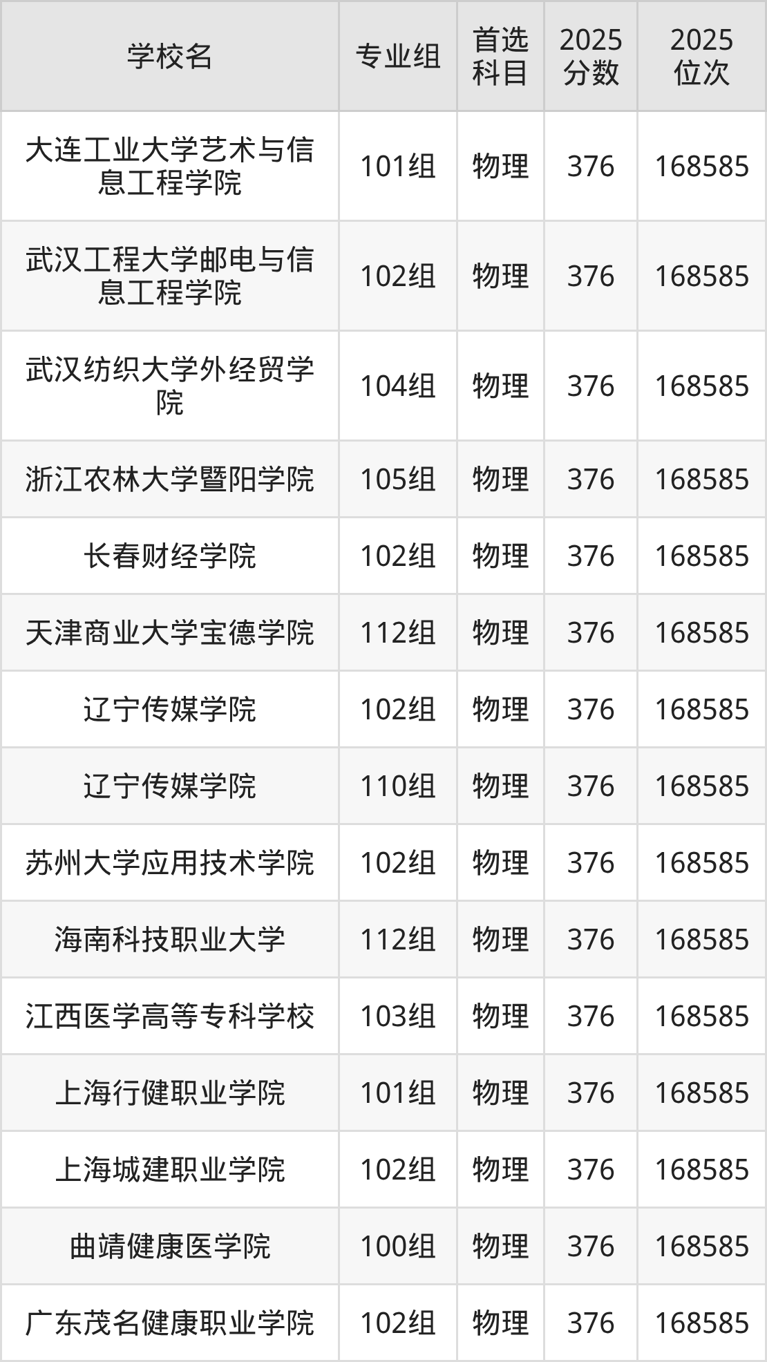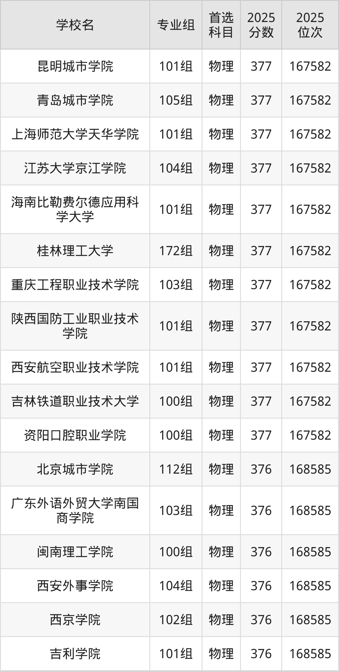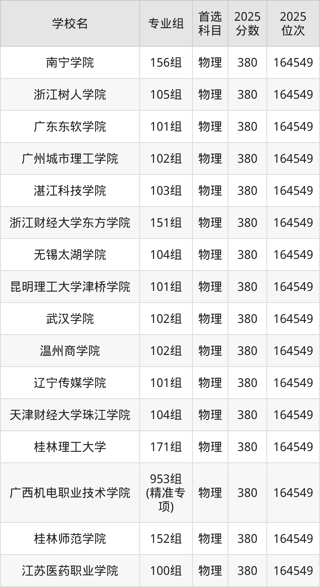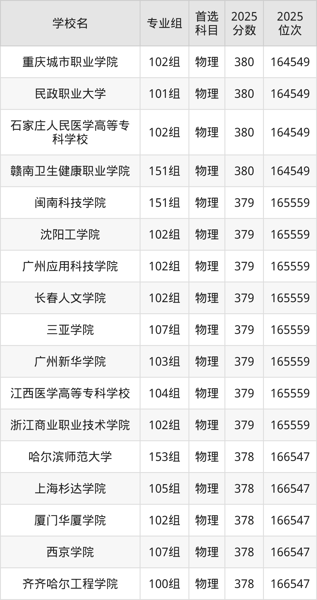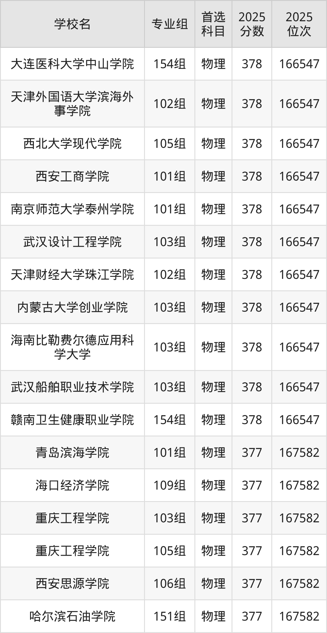 广西物理类378分对应的位次排名是166547名,因此建议2026年位次排在这附近的考生考虑这些大学。