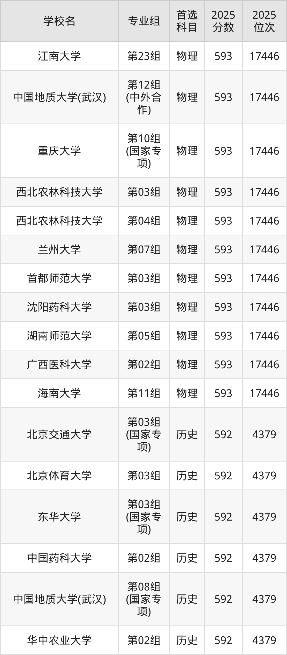湖北高考物理类593分对应的位次排名是17446名,历史类593分对应的位次排名是4222名,因此建议2026年位次排在这附近的同学考虑这些大学。