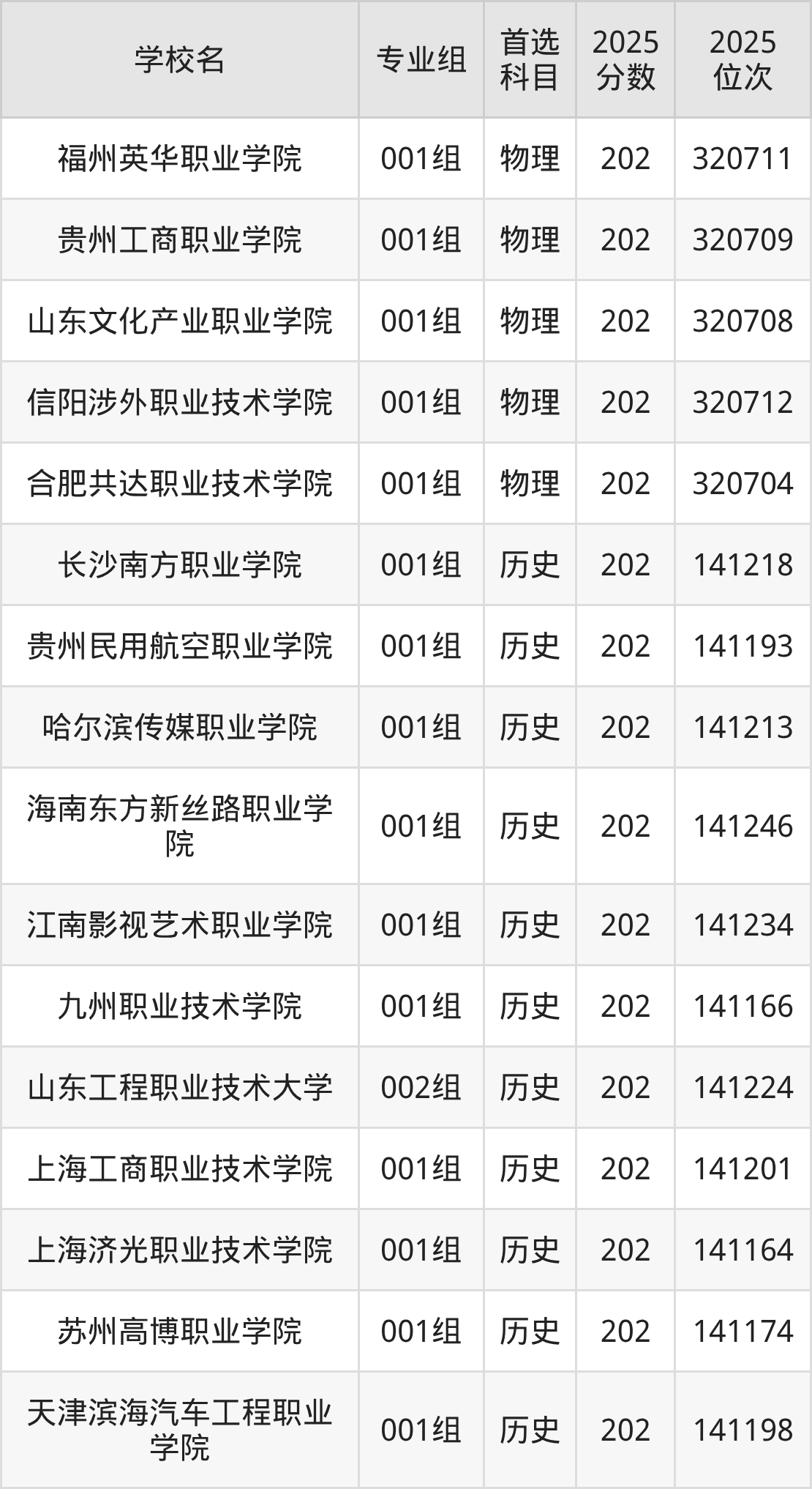 物理类200分可以冲的大学:福州英华职业学院202分、贵州工商职业学院202分、山东文化产业职业学院202分、信阳涉外职业技术学院202分等;
