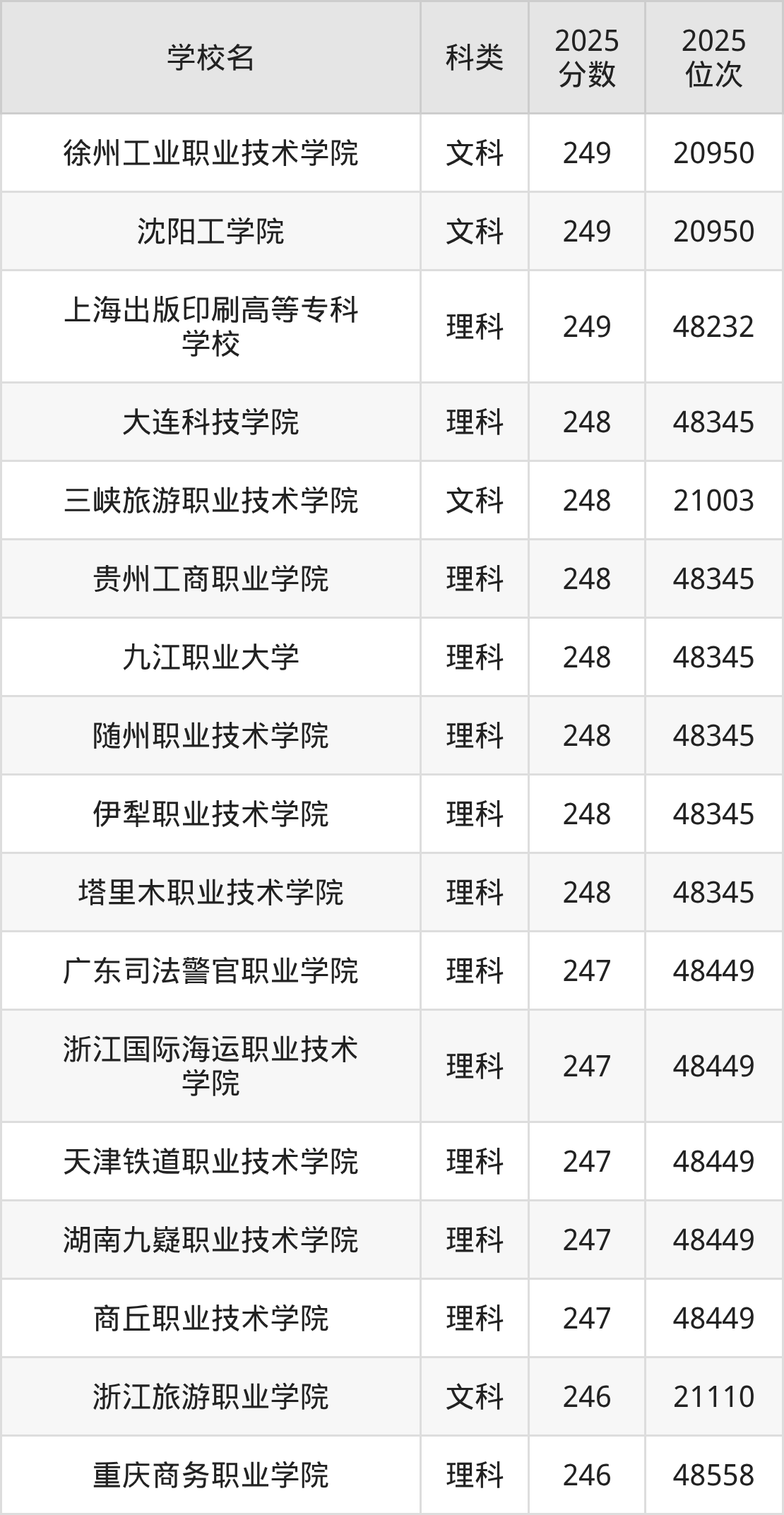 二、248分左右的专科大学排名