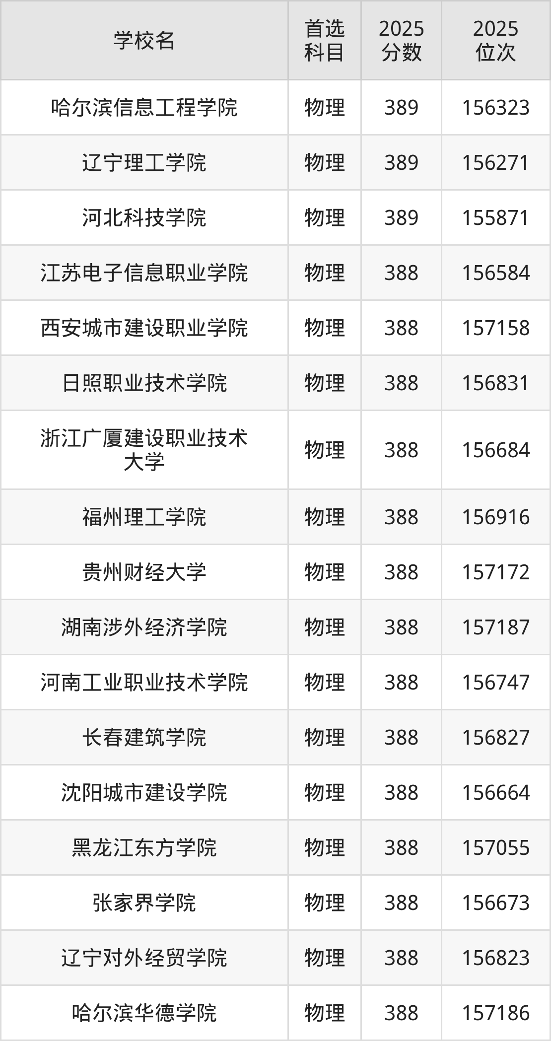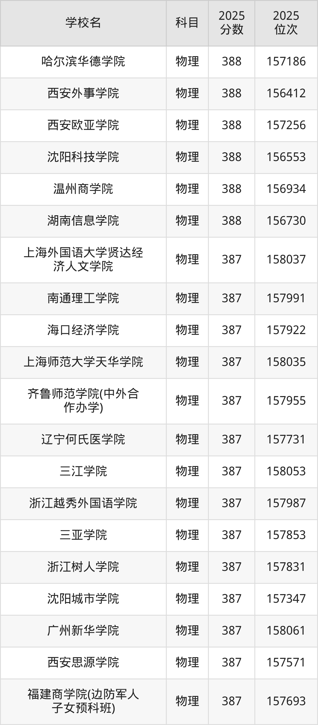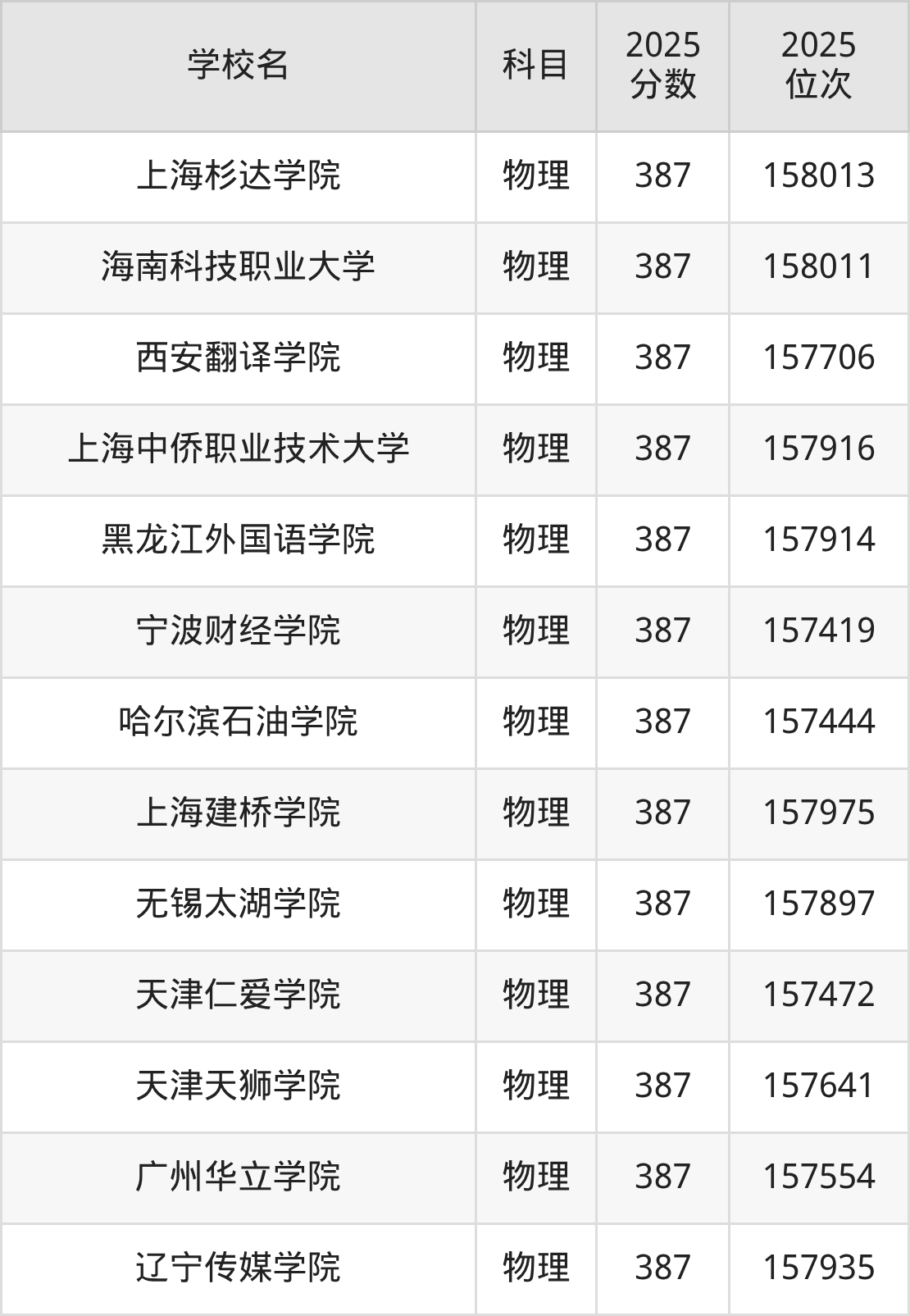 贵州物理类387分对应的位次排名是157347名-158061名,因此建议2026年位次排在这附近的考生考虑这些大学。