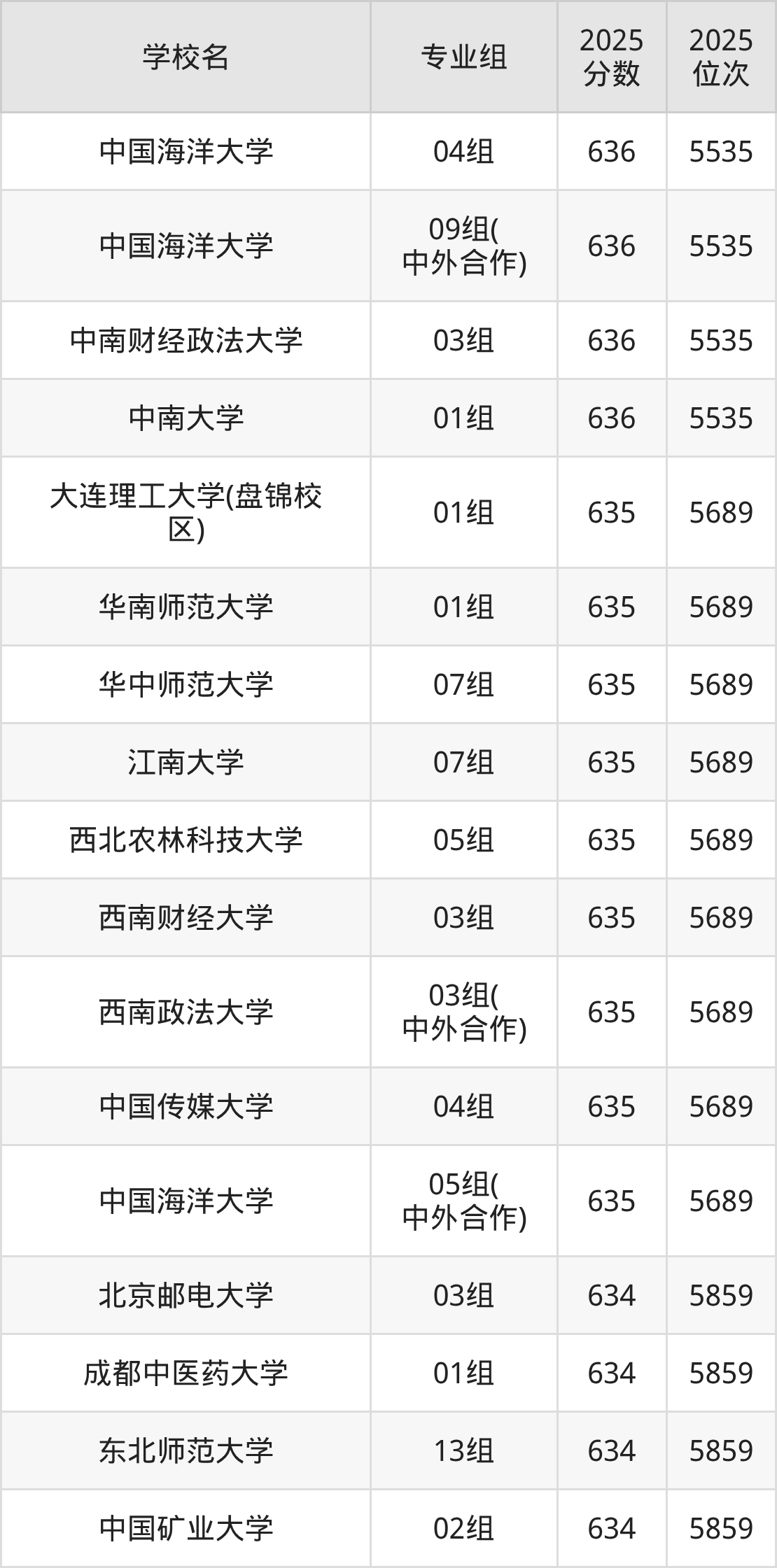 天津635分对应的位次排名是5689名,因此建议2026年位次排在这附近的考生考虑这些大学。