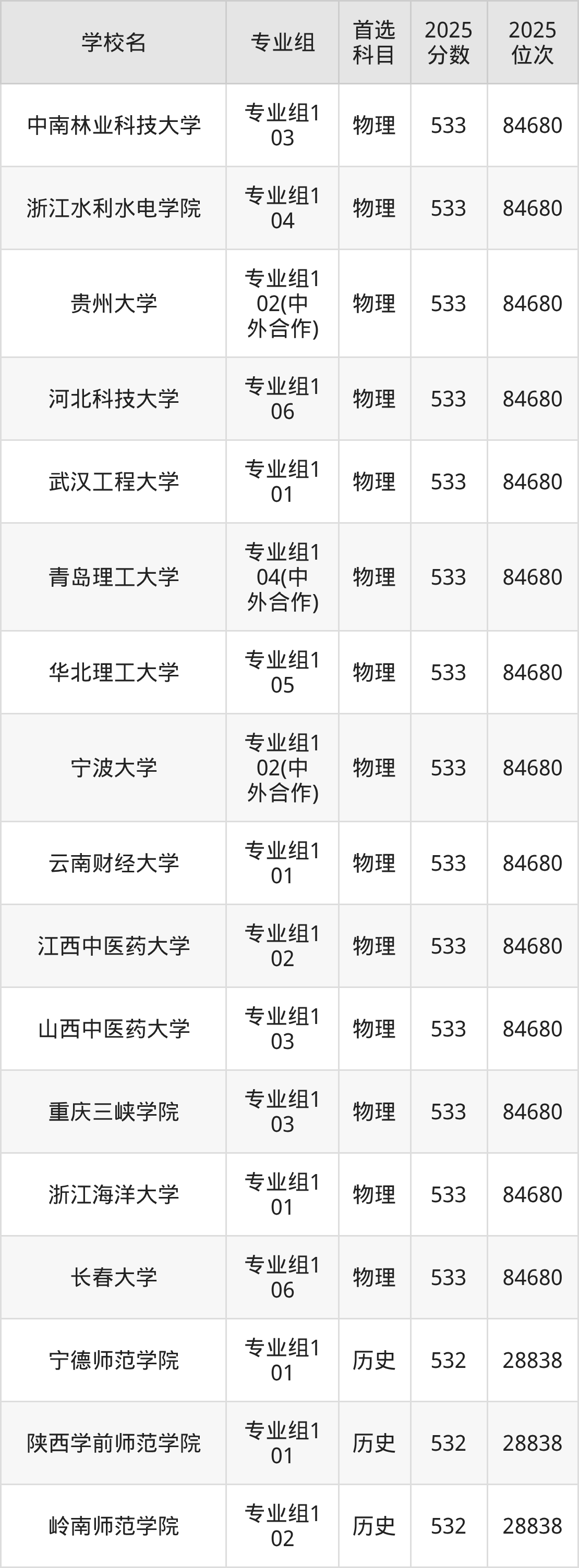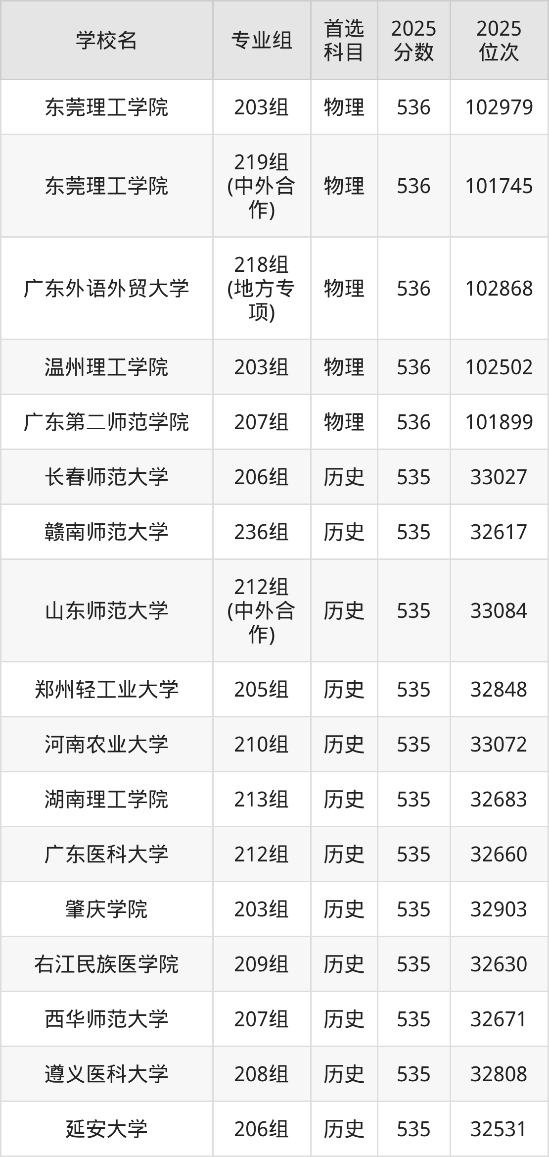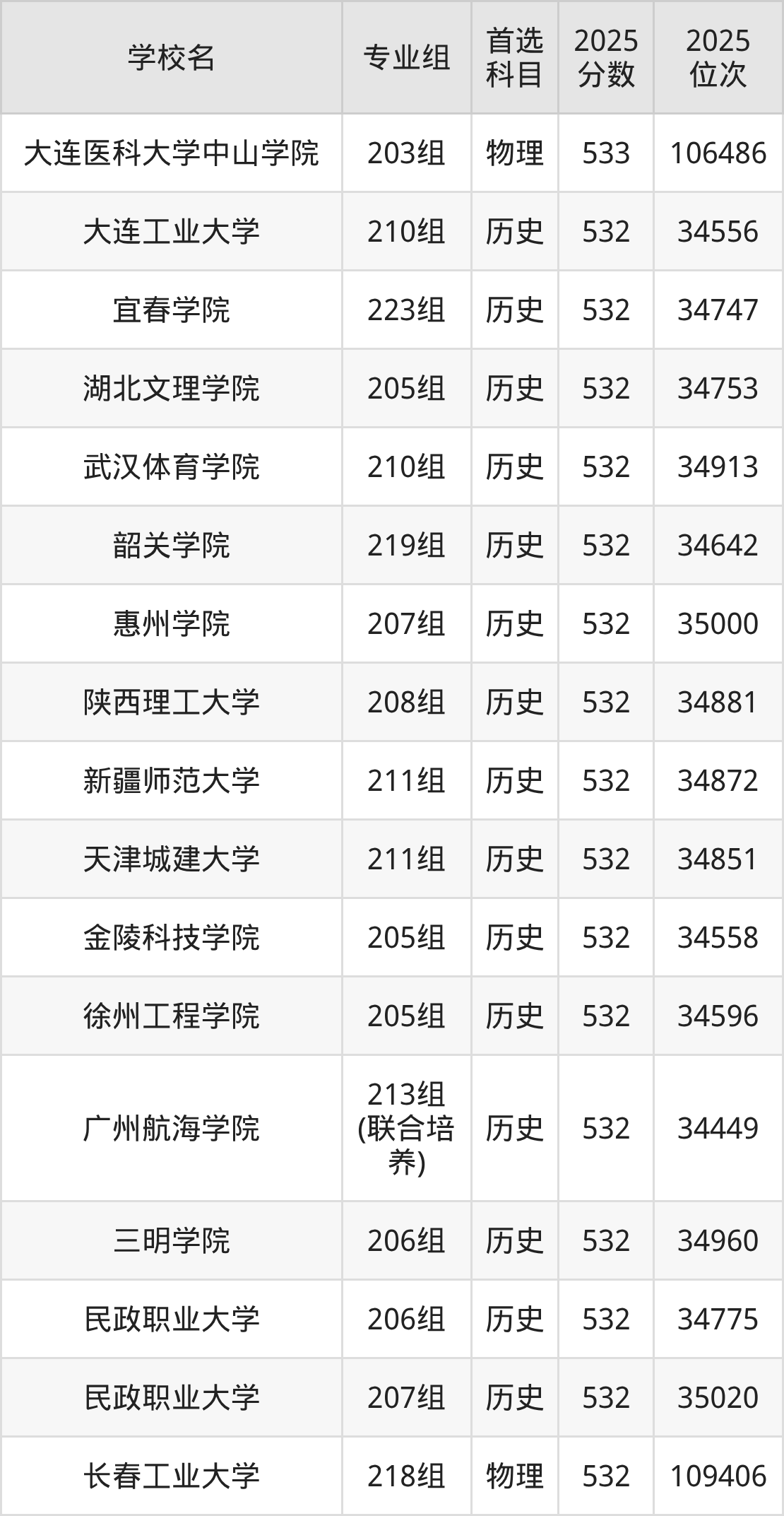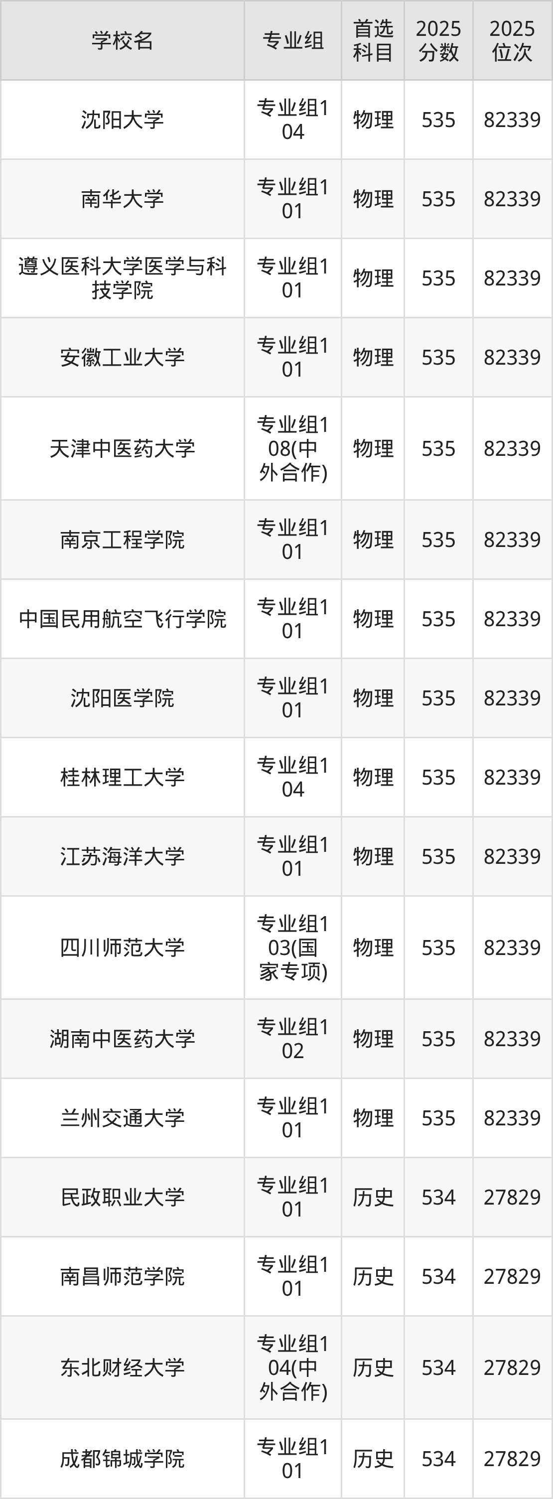 广东高考历史类534分对应的位次排名是33166名-33769名,物理类534分对应的位次排名是104829名-106191名,因此建议2026年位次排在这附近的同学考虑这些大学。