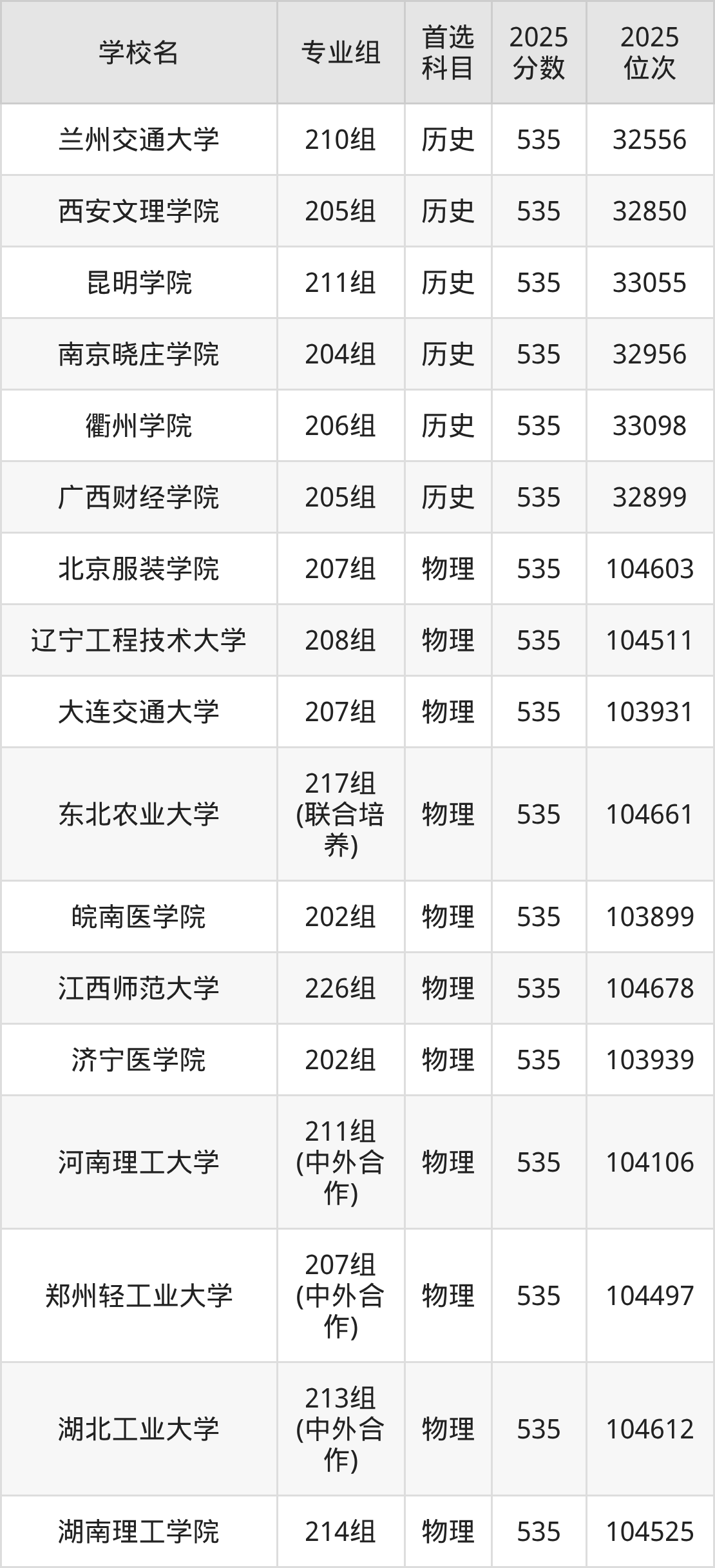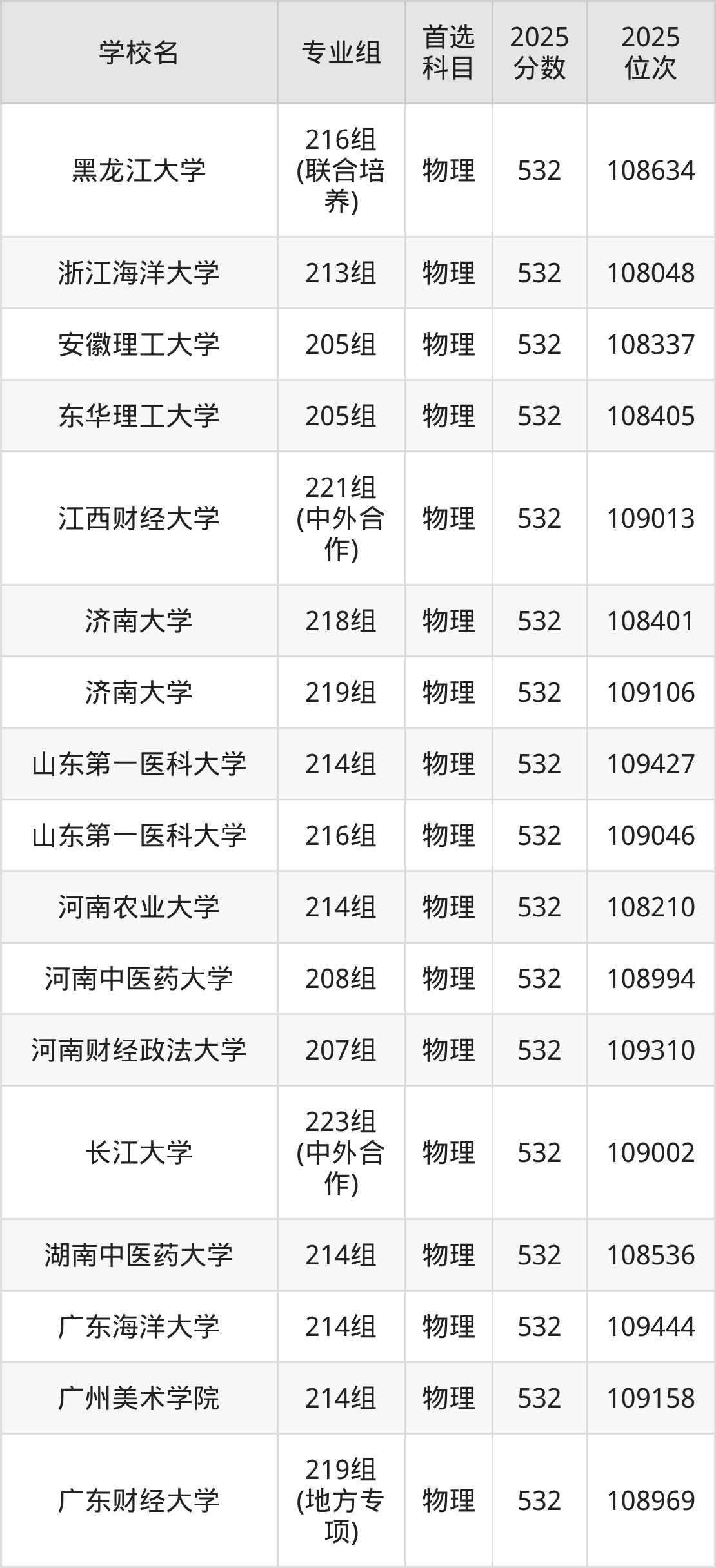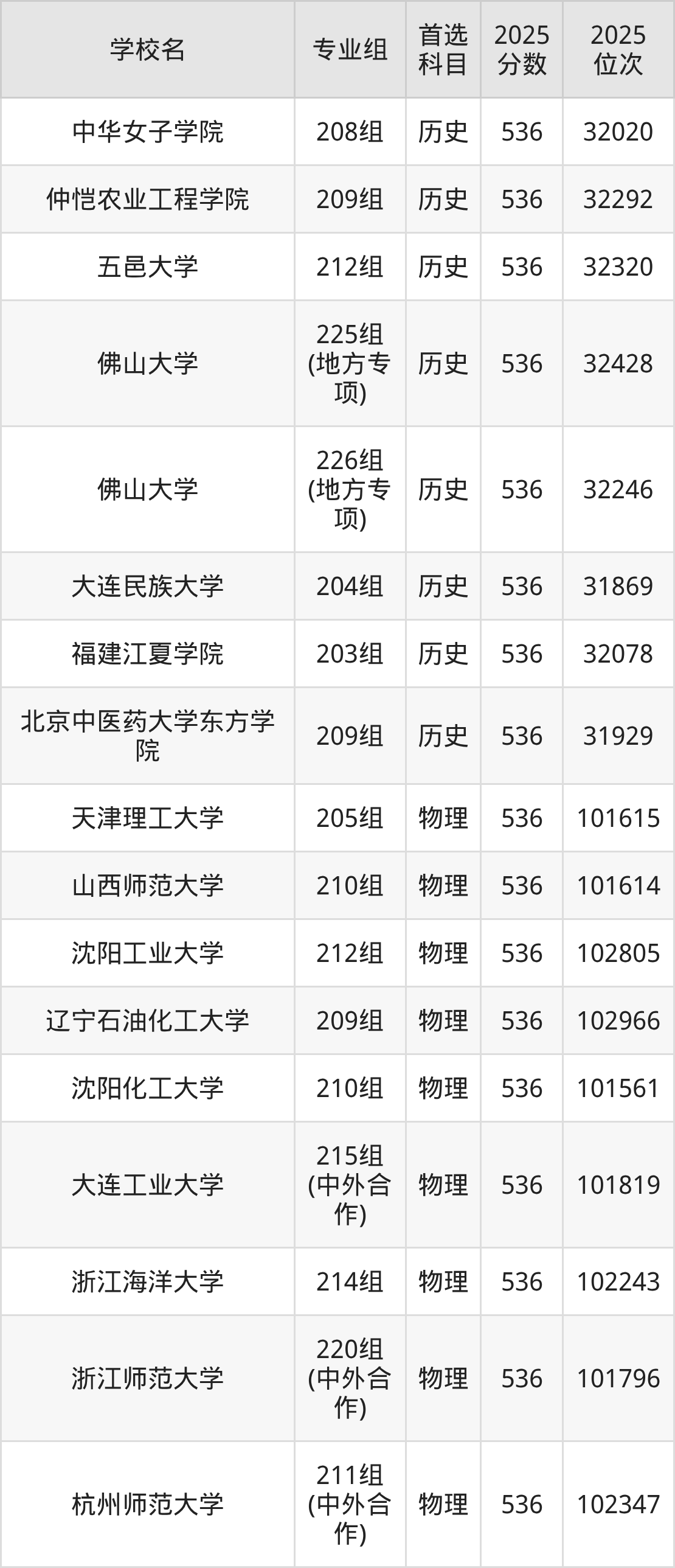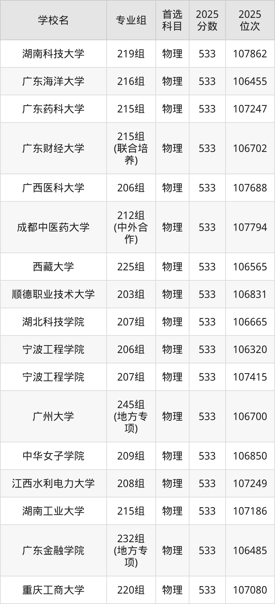 广东高考历史类534分对应的位次排名是33166名-33769名,物理类534分对应的位次排名是104829名-106191名,因此建议2026年位次排在这附近的同学考虑这些大学。