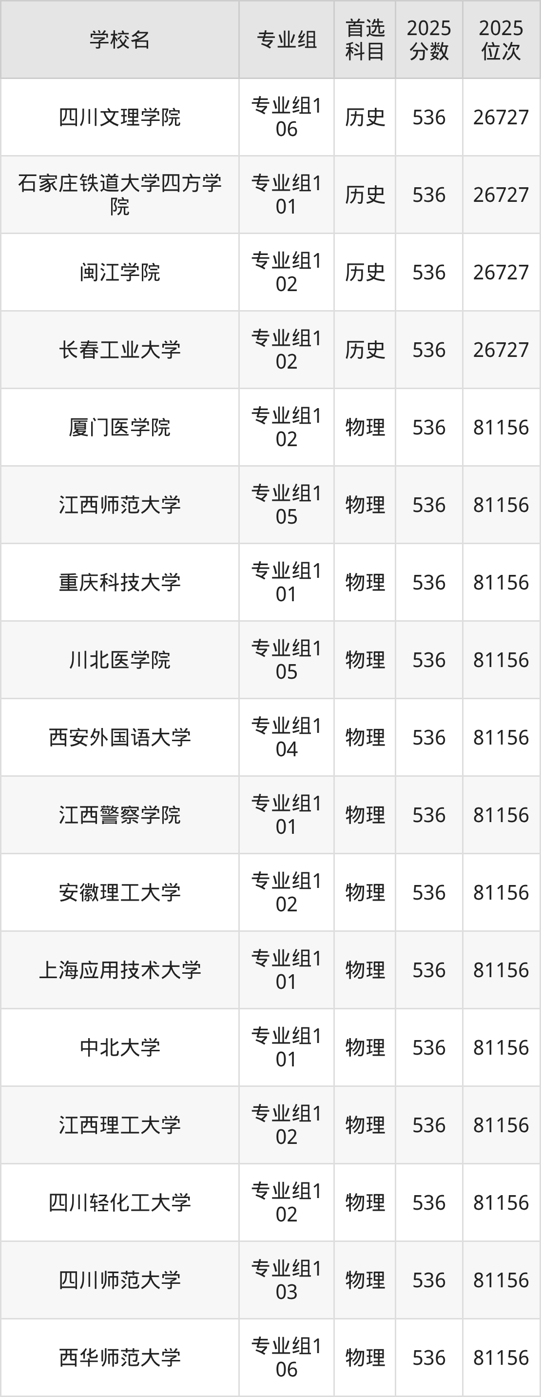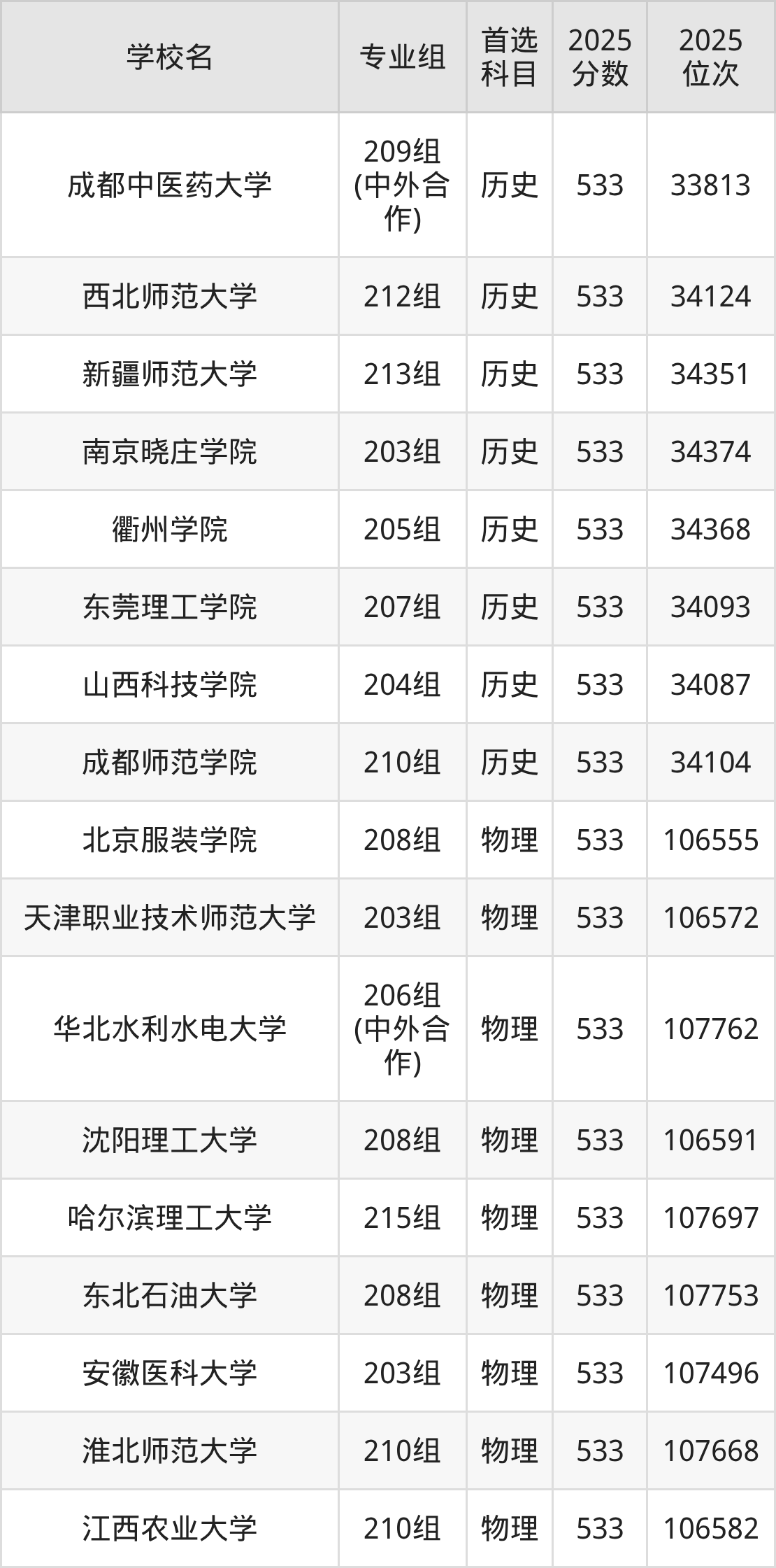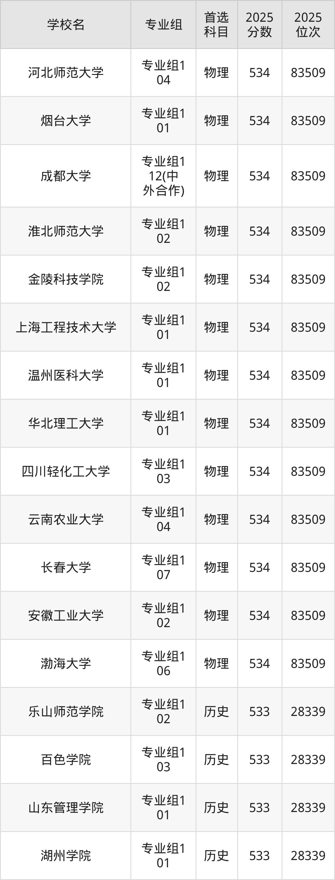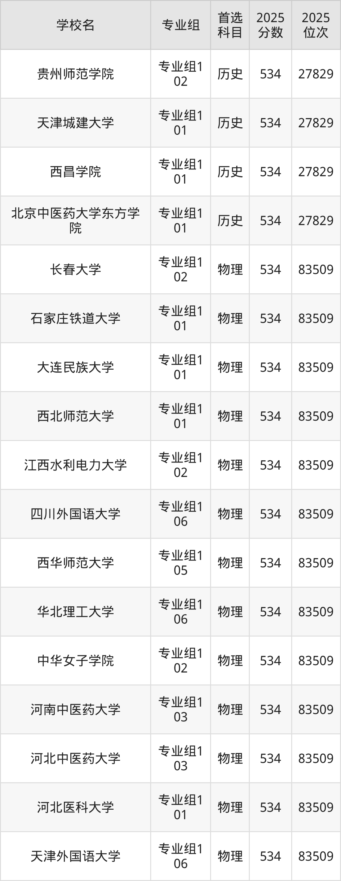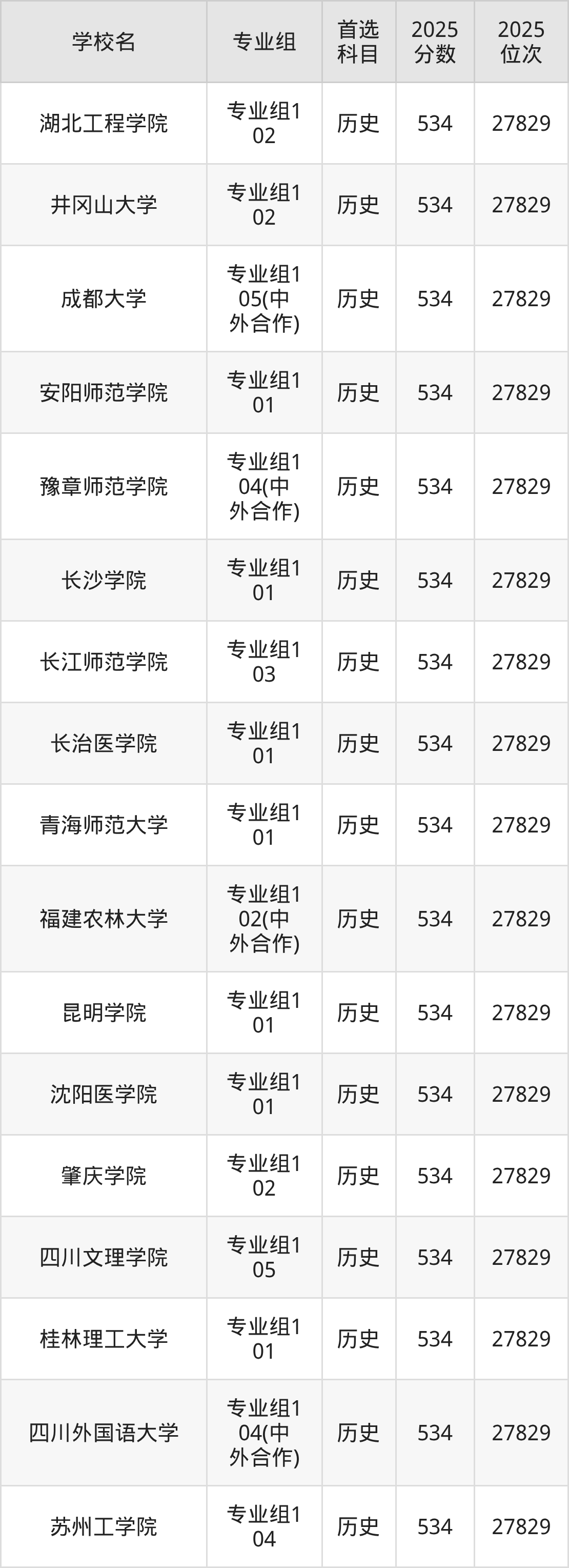 四川高考历史类534分对应的位次排名是27829名,物理类534分对应的位次排名是83509名,因此建议2026年位次排在这附近的同学考虑这些大学。
