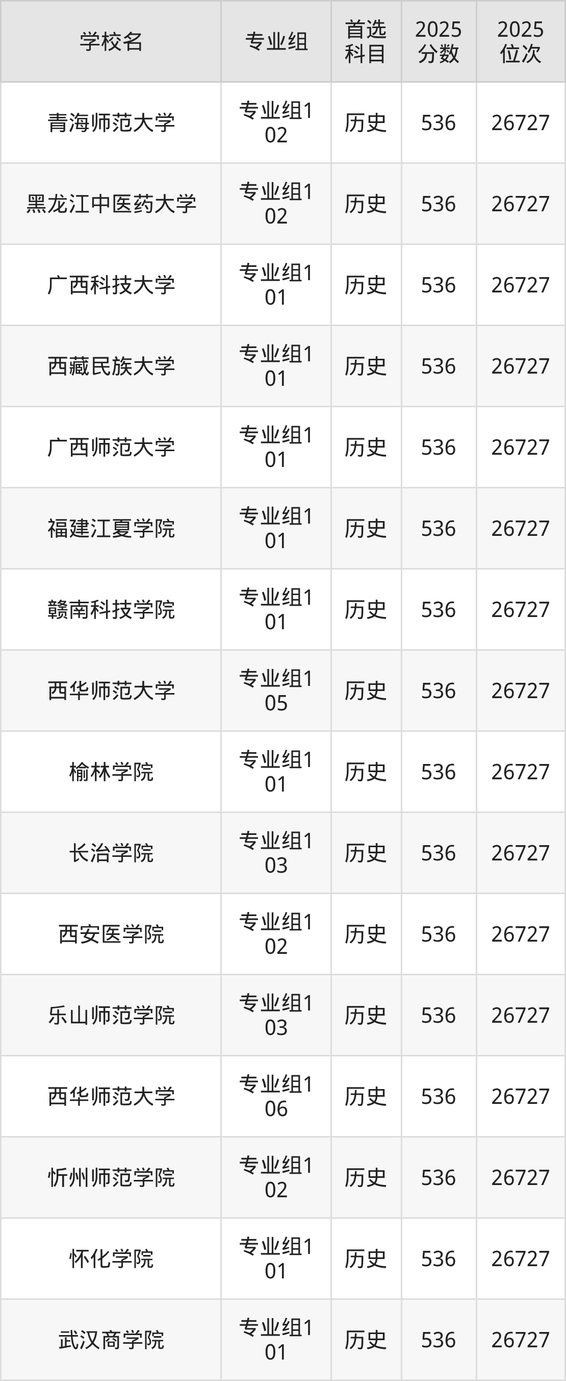 历史类534分可以冲的大学:青海师范大学536分、黑龙江中医药大学536分、广西科技大学536分、西藏民族大学536分等;较稳妥的大学:乐山师范学院533分、百色学院533分、山东管理学院533分、湖州学院533分等。