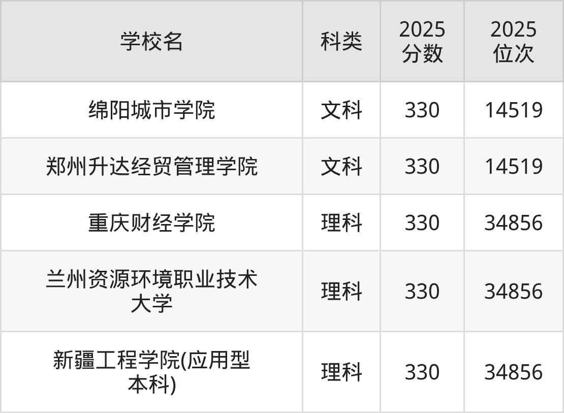 下面老师将以上文的新疆为例,为大家具体展示332分左右能上的本科大学名单。