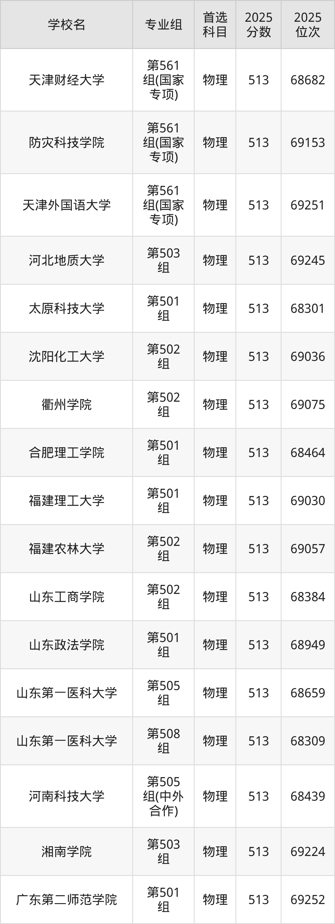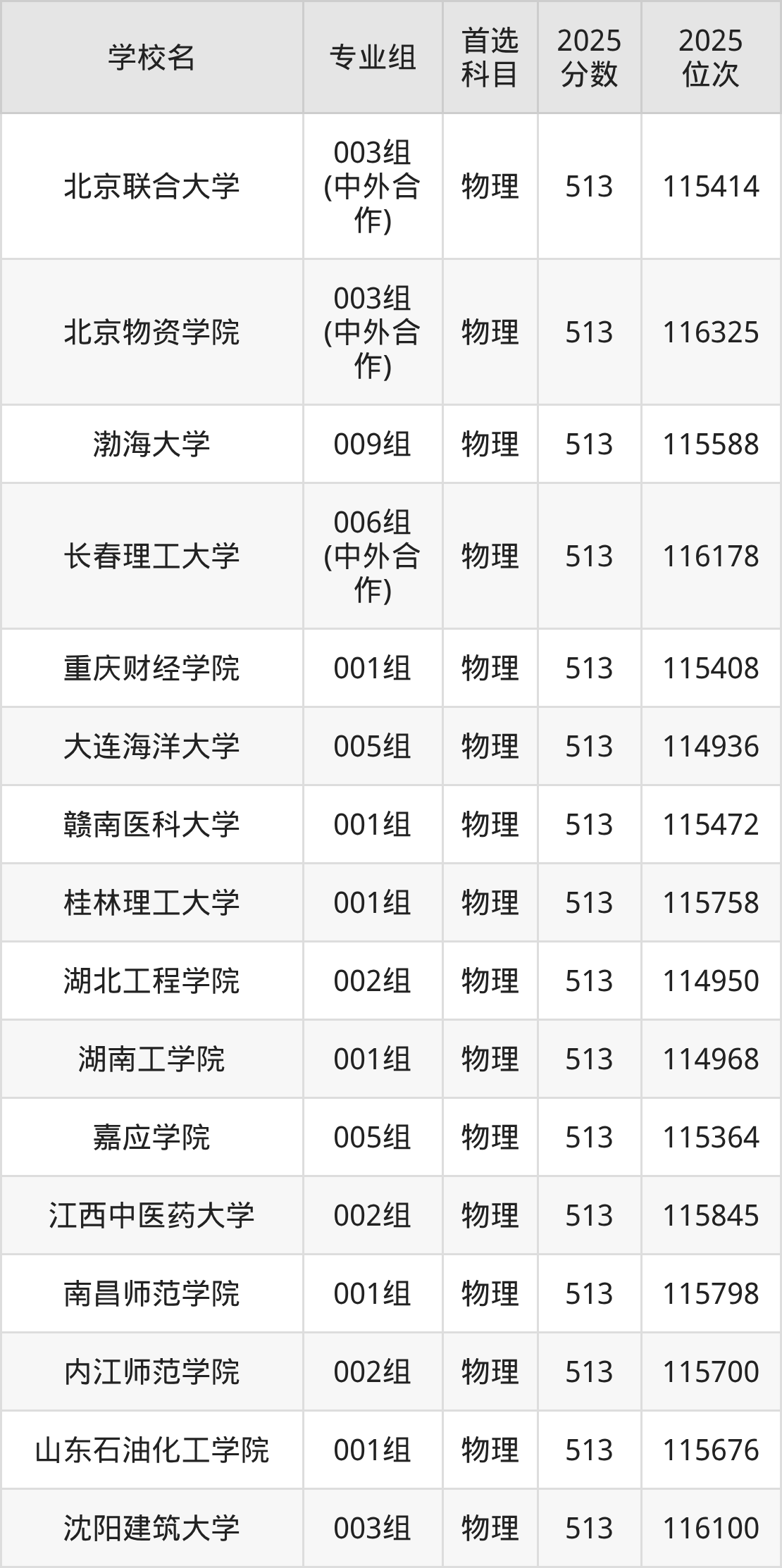 物理类511分可以冲的大学:北京联合大学513分、北京物资学院513分、渤海大学513分、长春理工大学513分等;较稳妥的大学:北部湾大学510分、成都体育学院510分、东华理工大学510分、赣南科技学院510分等。