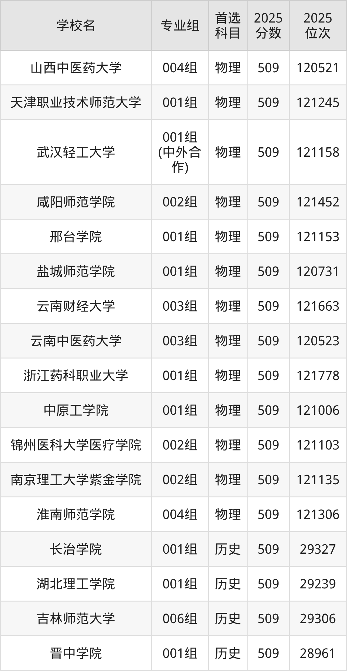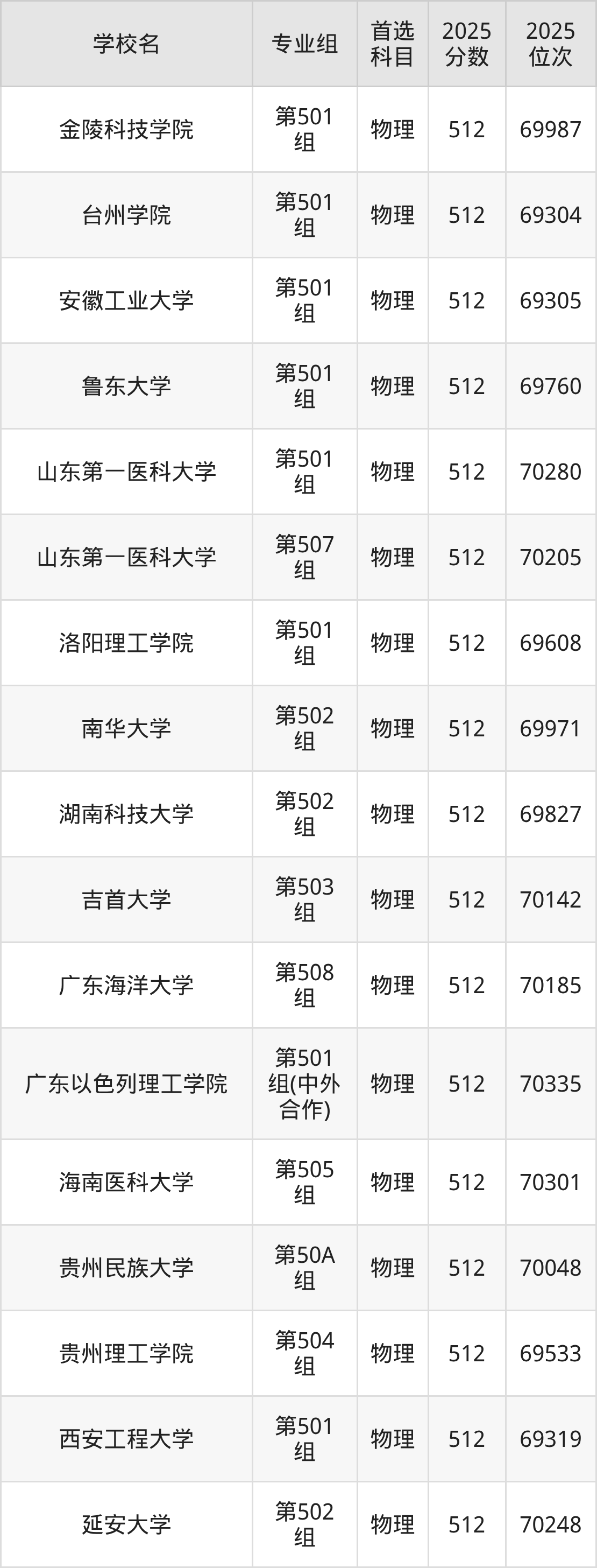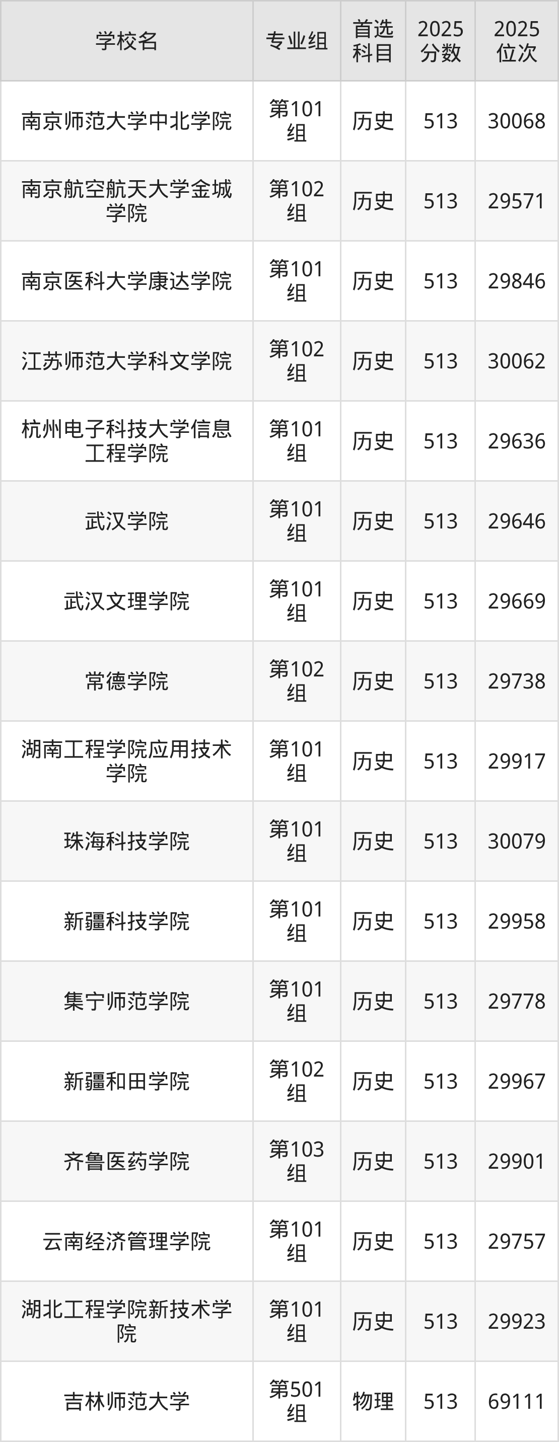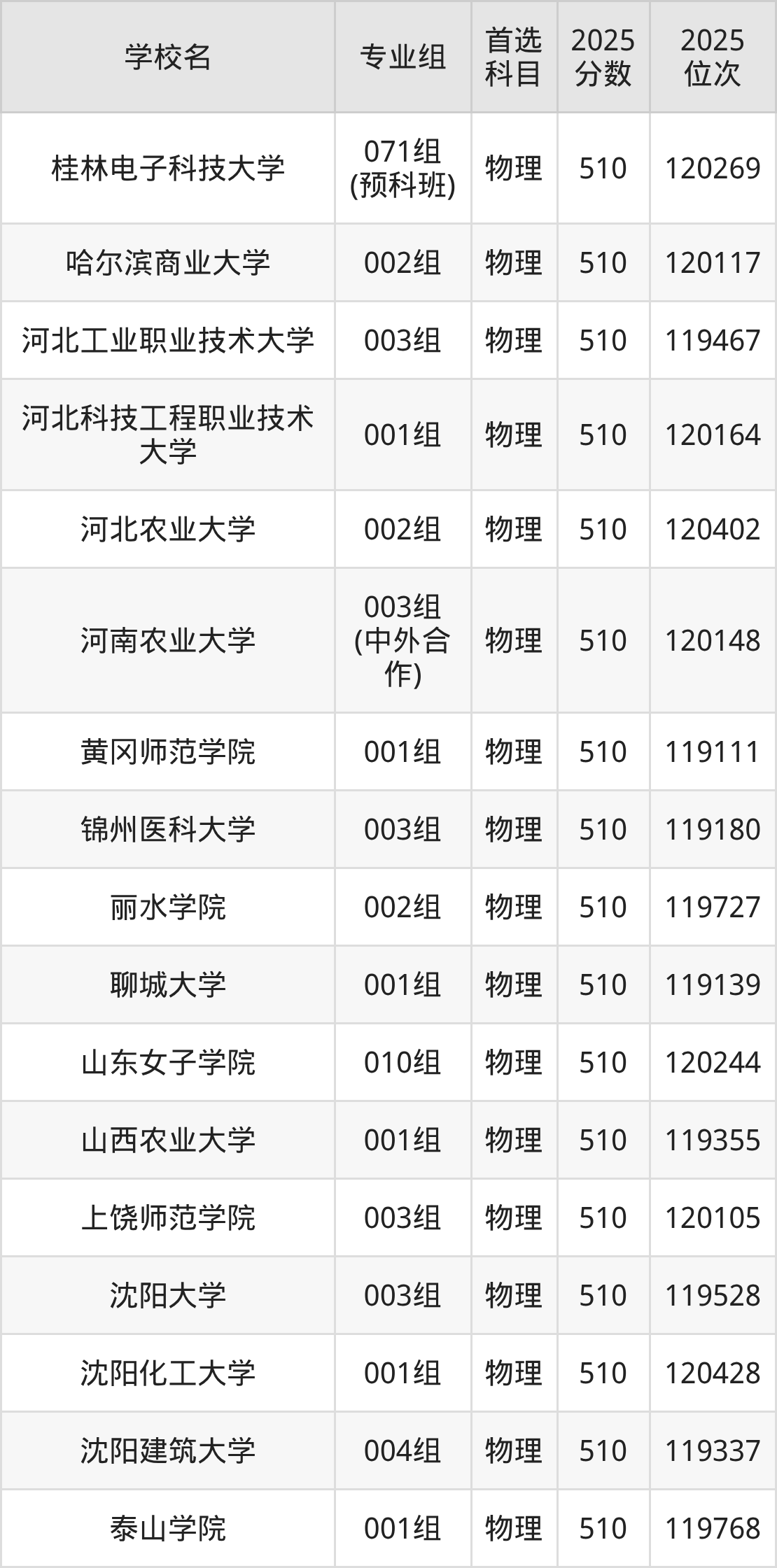 安徽高考物理类511分对应的位次排名是117764名-119090名,历史类511分对应的位次排名是28039名-28407名,因此建议2026年位次排在这附近的同学考虑这些大学。
