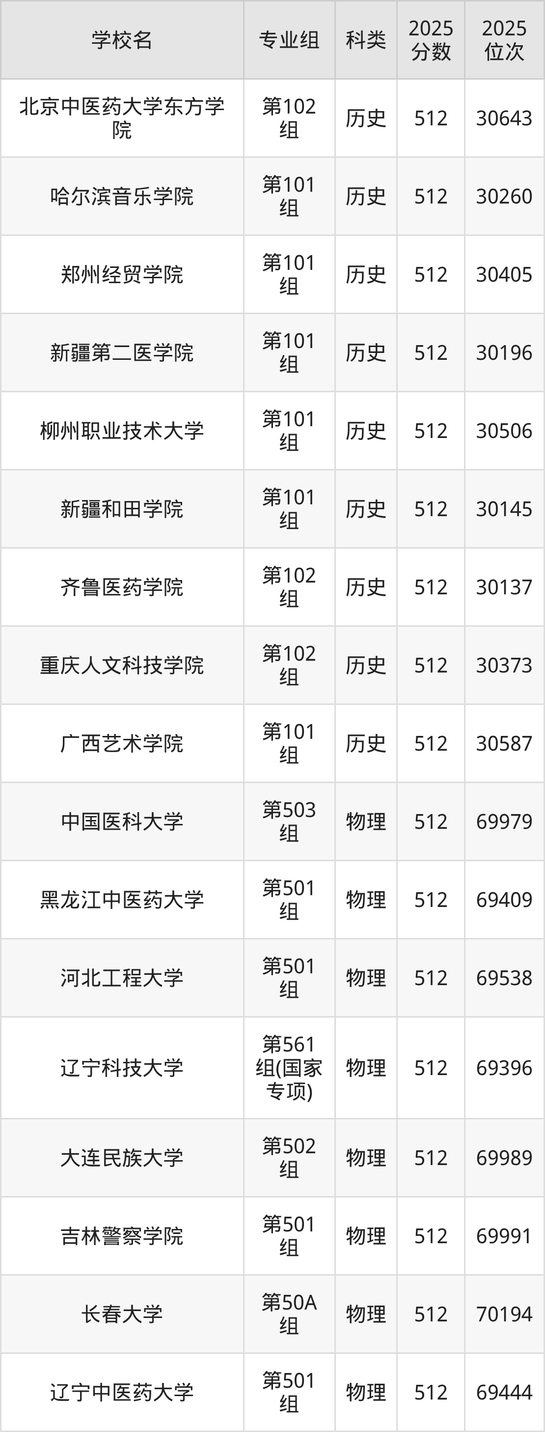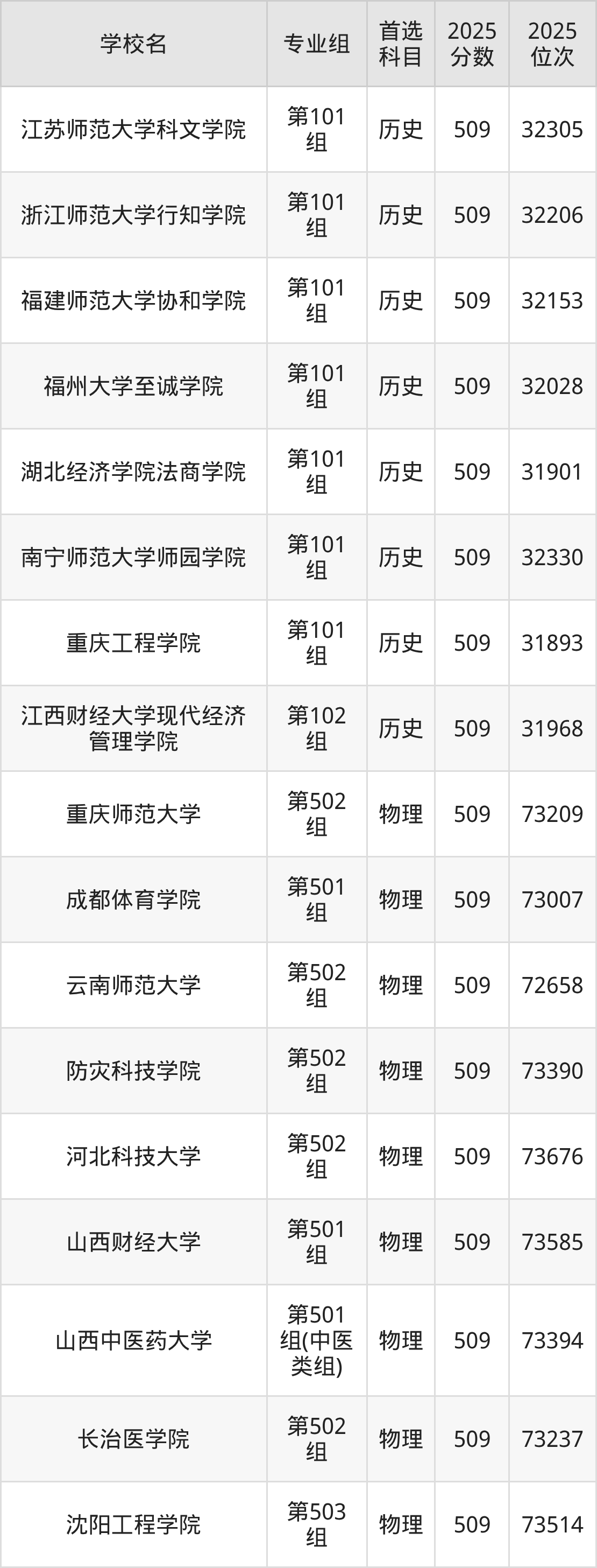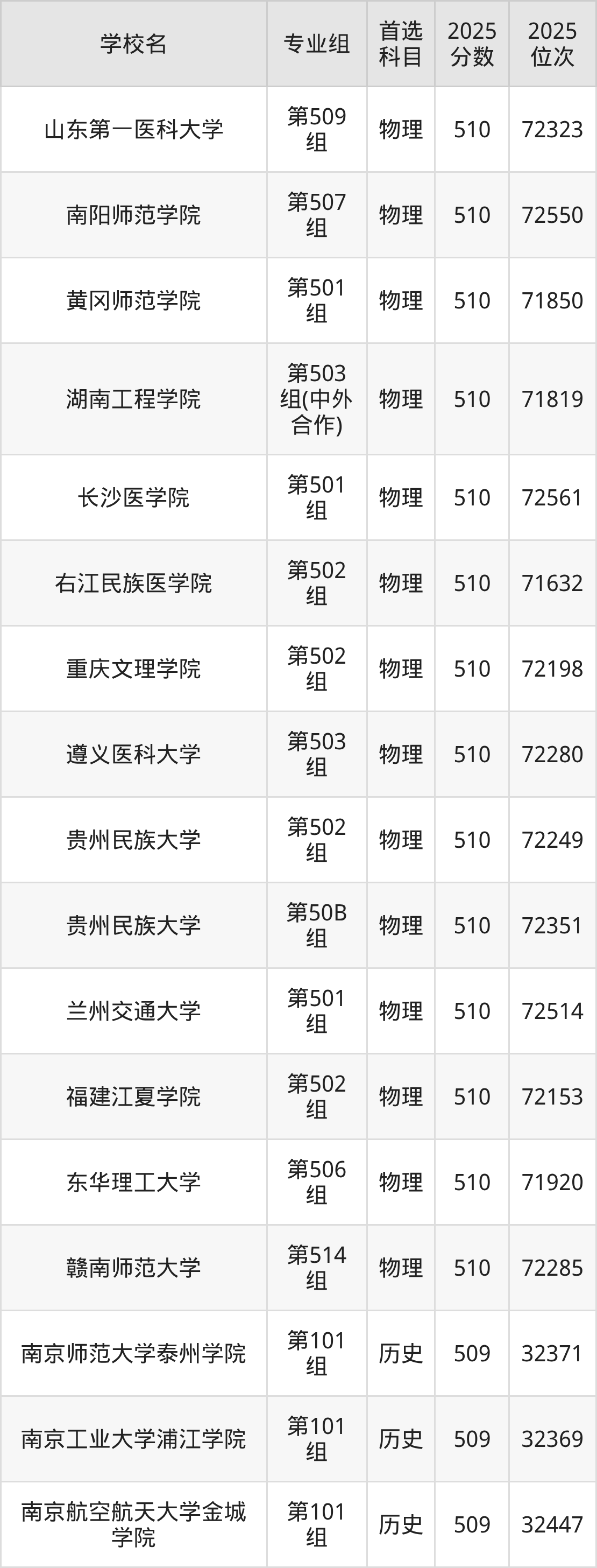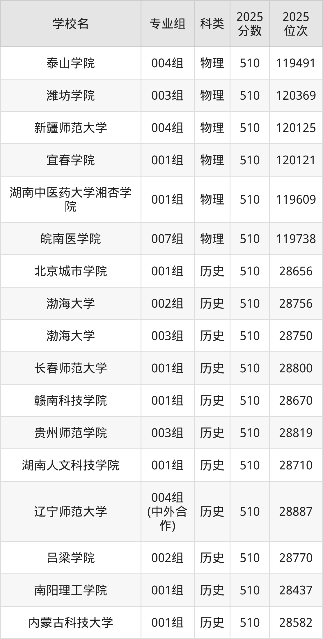 下面老师将以上文整理的其中两个省份为例,为大家具体展示511分左右能上的本科大学名单。