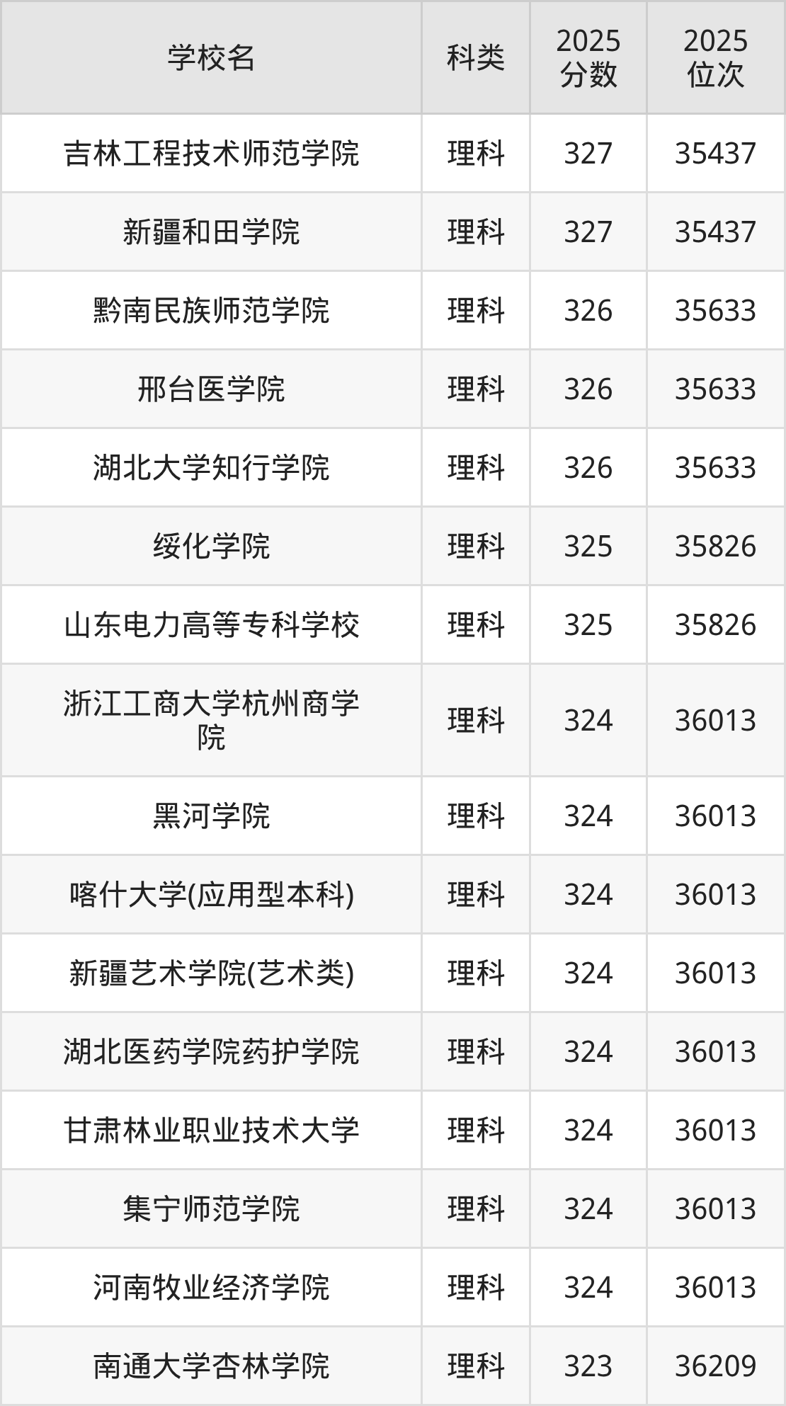 325分可以冲一冲的大学:吉林工程技术师范学院327分、新疆和田学院327分、黔南民族师范学院326分、邢台医学院326分等;